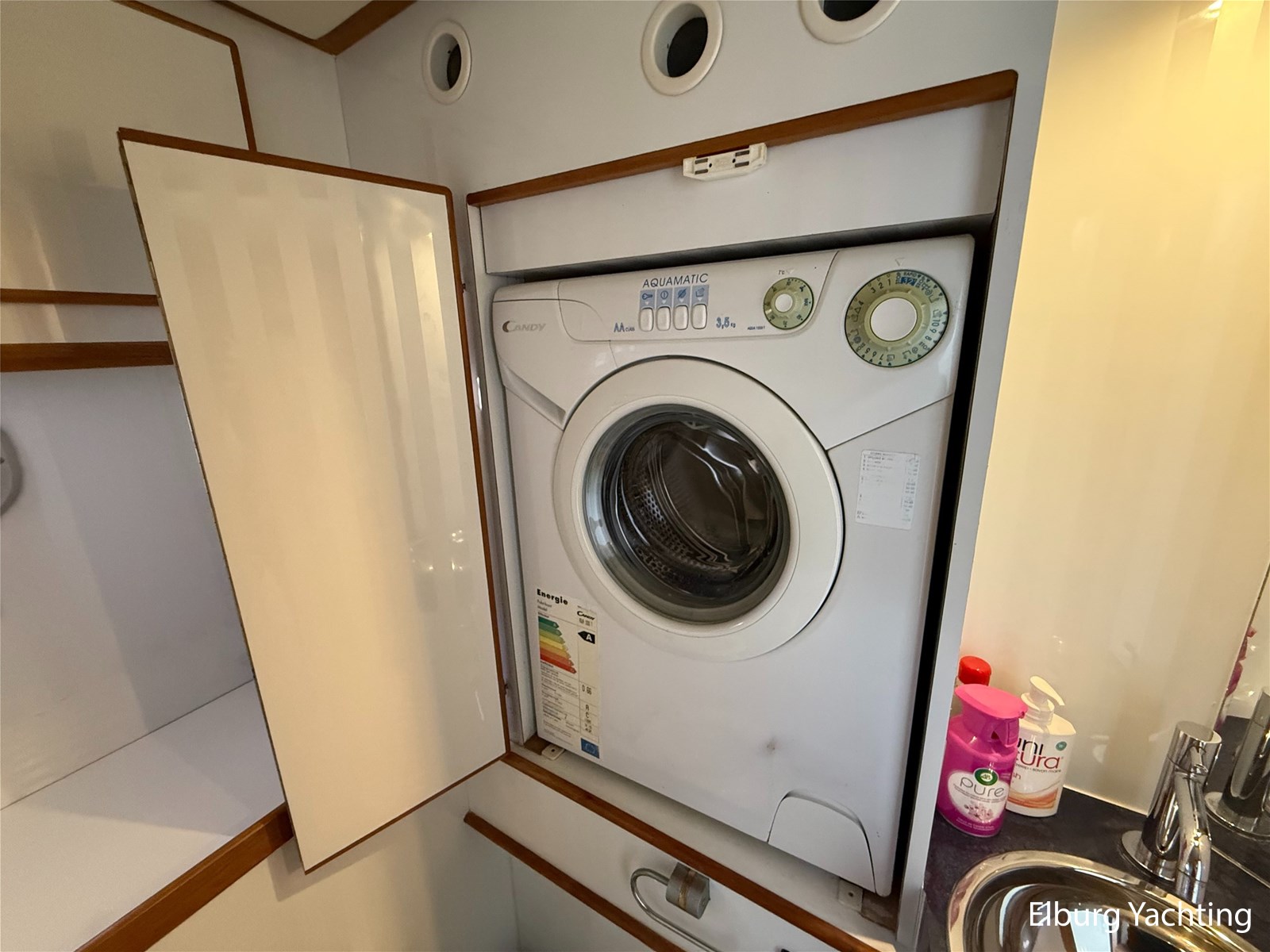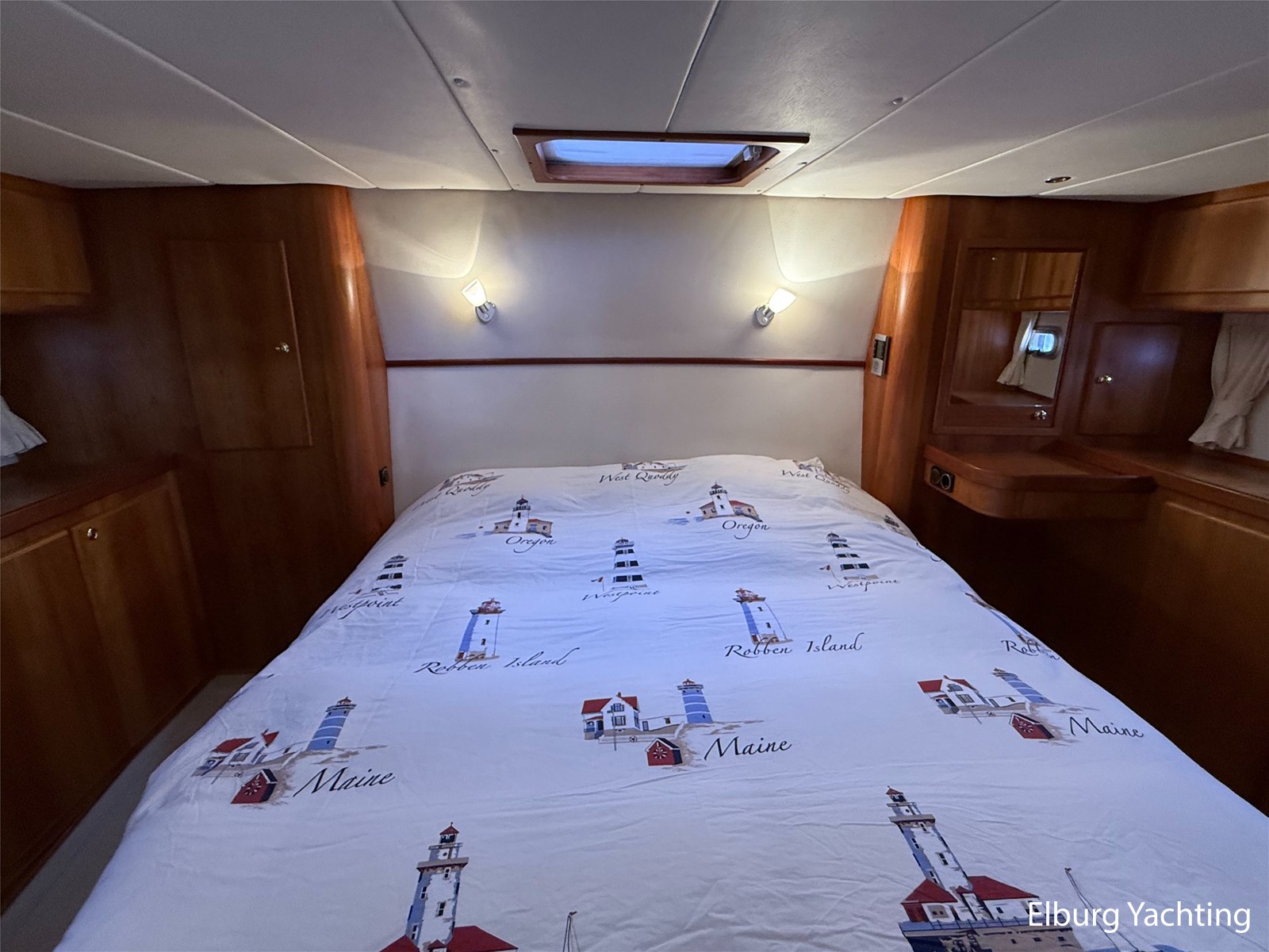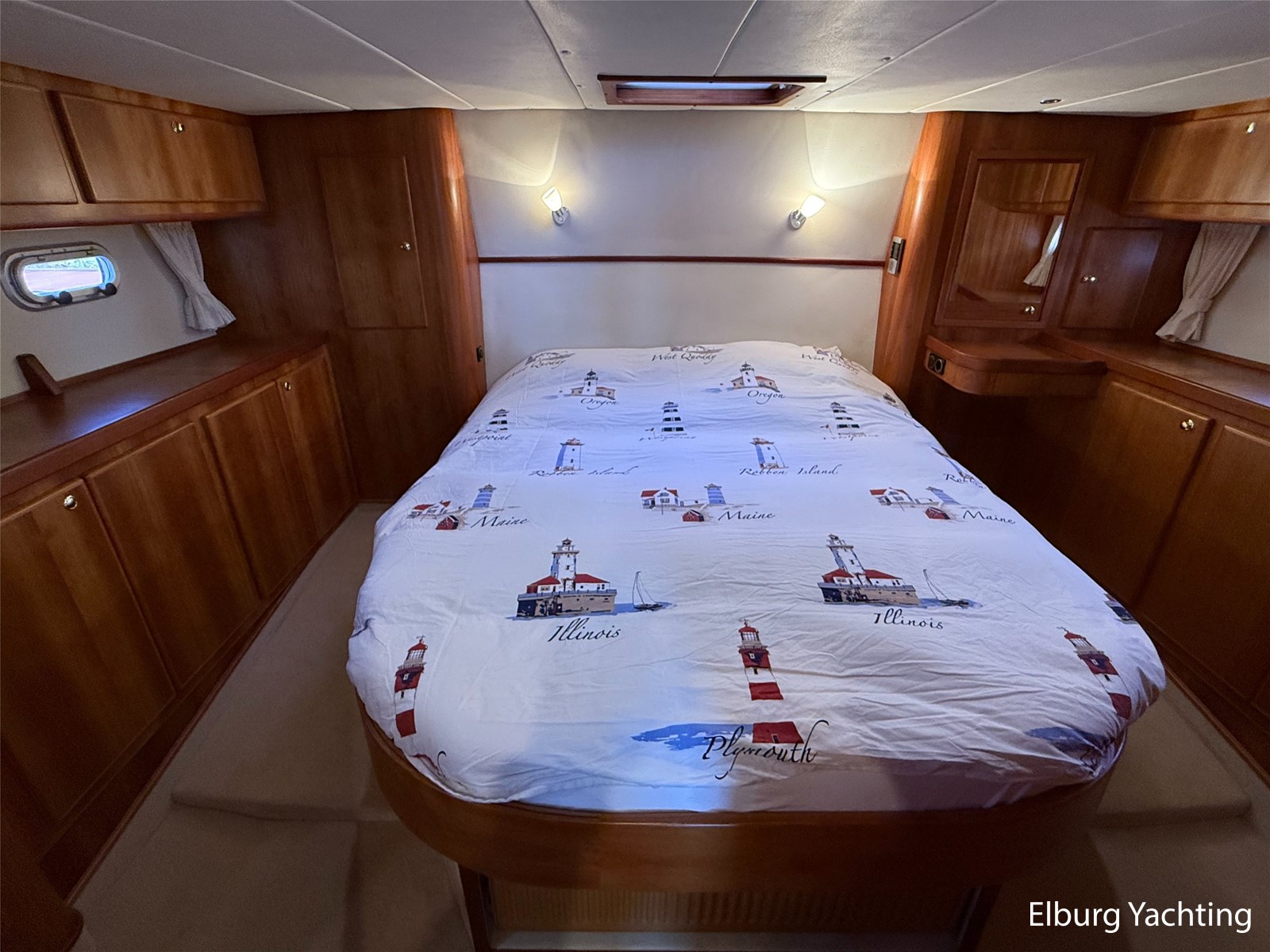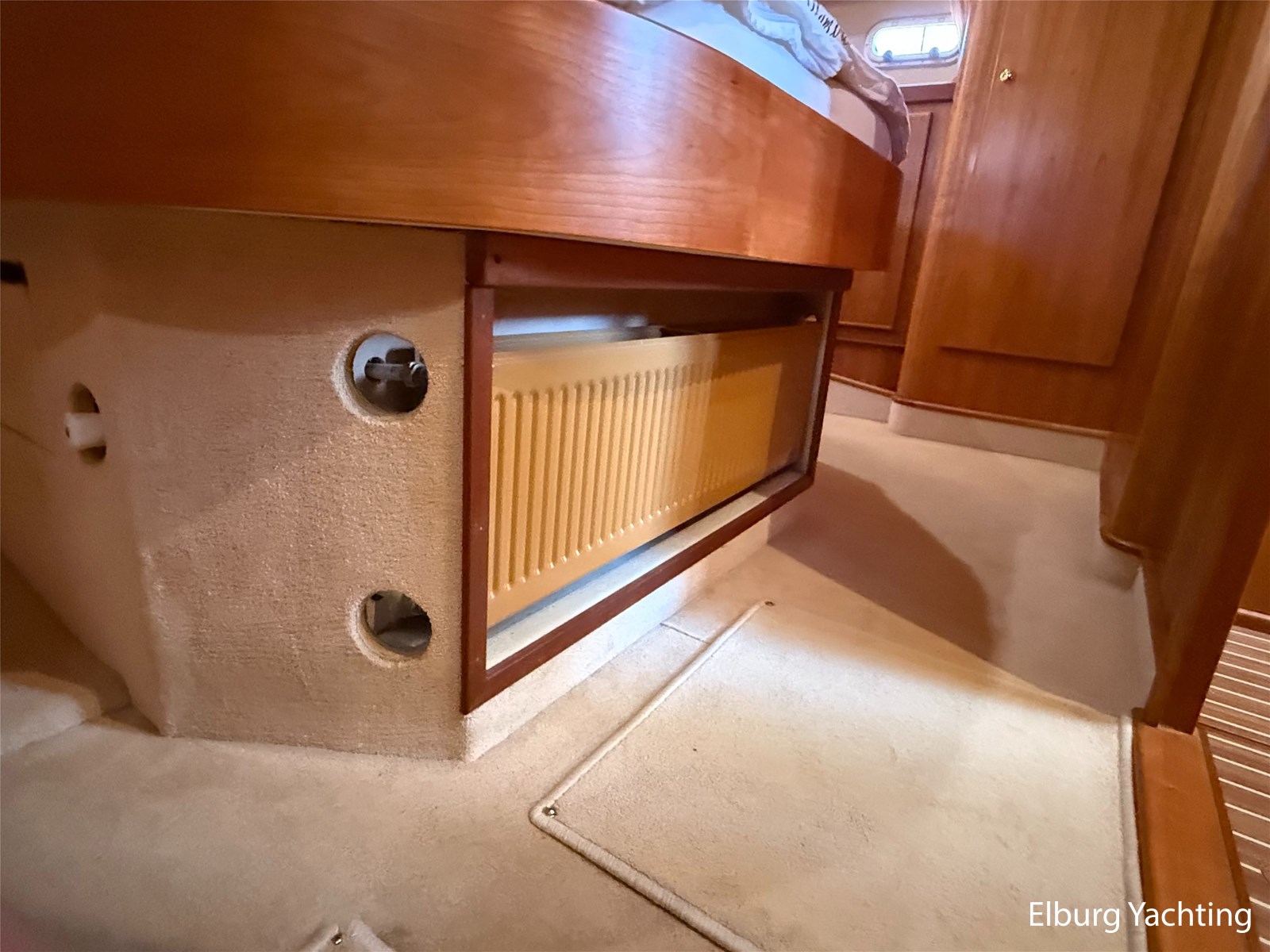 - Goed geïsoleerd met scheeps kersenhoutenbetimmering in combinatie met Teakhouten holly vloer en blauwe bekleding