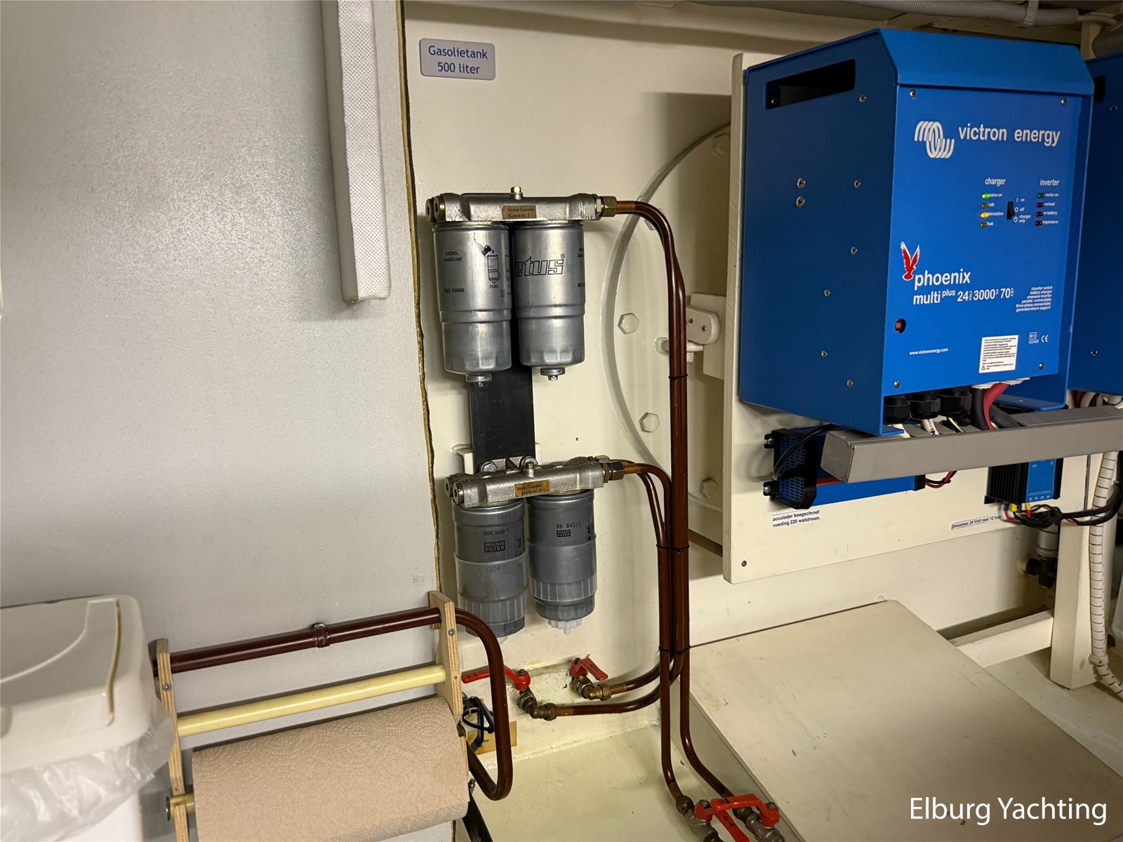 - Aanwezig met walstroomkabel + Victron Isolation Transformer