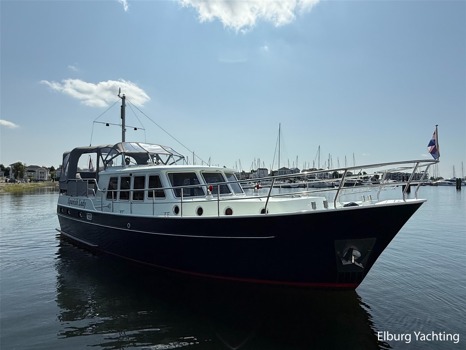 Prachtige Vripack Kotter 1300 AK aangeboden voor de verkoop. De 'Spanish Lady' is een ruim opgezet jacht gebouwd conform de Nederlands vakmanschap. Het jacht is rondom geïsoleerd, voorzien van dubbel glas en uitgerust met een fijne Kabola centrale verwarming waardoor het jacht perfect geschikt is om langere tijd op te verblijven of om er zelfs op te gaan wonen. Recentelijk is het jacht grondig onderhouden, zo is het onderwaterschip in 2023 gestraald en volledig nieuw opgebouwd, er is in 2021 een kwaliteits achtertent geplaatst, er is in 2022 een nieuwe Raymarine Plotter geinstalleerd en de stoffering is gedeeltelijk vervangen. De layout van het jacht geeft karakter, buitenom is het jacht voorzien van een onderhoudsarm stalen dek met Antislip, dubbele r.v.s. zeerailing, ruimtelijk achterdek met houten klapbare kuiptafel stuurstoel + meevaarstoel en twee comfortabele banken met bergruimte. Aan boord heeft het jacht een prettige sfeer, de fraaie salon met royale bank en voorin de kombuis met naastgelegen gezellige dinette. De voorhut is voorzien van een tweepersoons V bed en de achterhut is voorzien van een tweepersoons vrijstaand bed. Het elektrisch toilet is achterin gesitueerd tezamen met wastafel en een ingebouwde wasmachine. De douche is toegankelijk vanuit de achterhut. Het jacht is uitgerust met een overzichtelijke machinekamer, de motor is aan beide zijden te benaderen en de techniek is goed te bereiken. De machinekamer is geluidsdicht geïsoleerd waardoor het jacht opmerkelijk stil vaart. Voor vragen en/of het maken van een afspraak bent u 7 dagen per week van harte welkom bij Elburg Yachting.