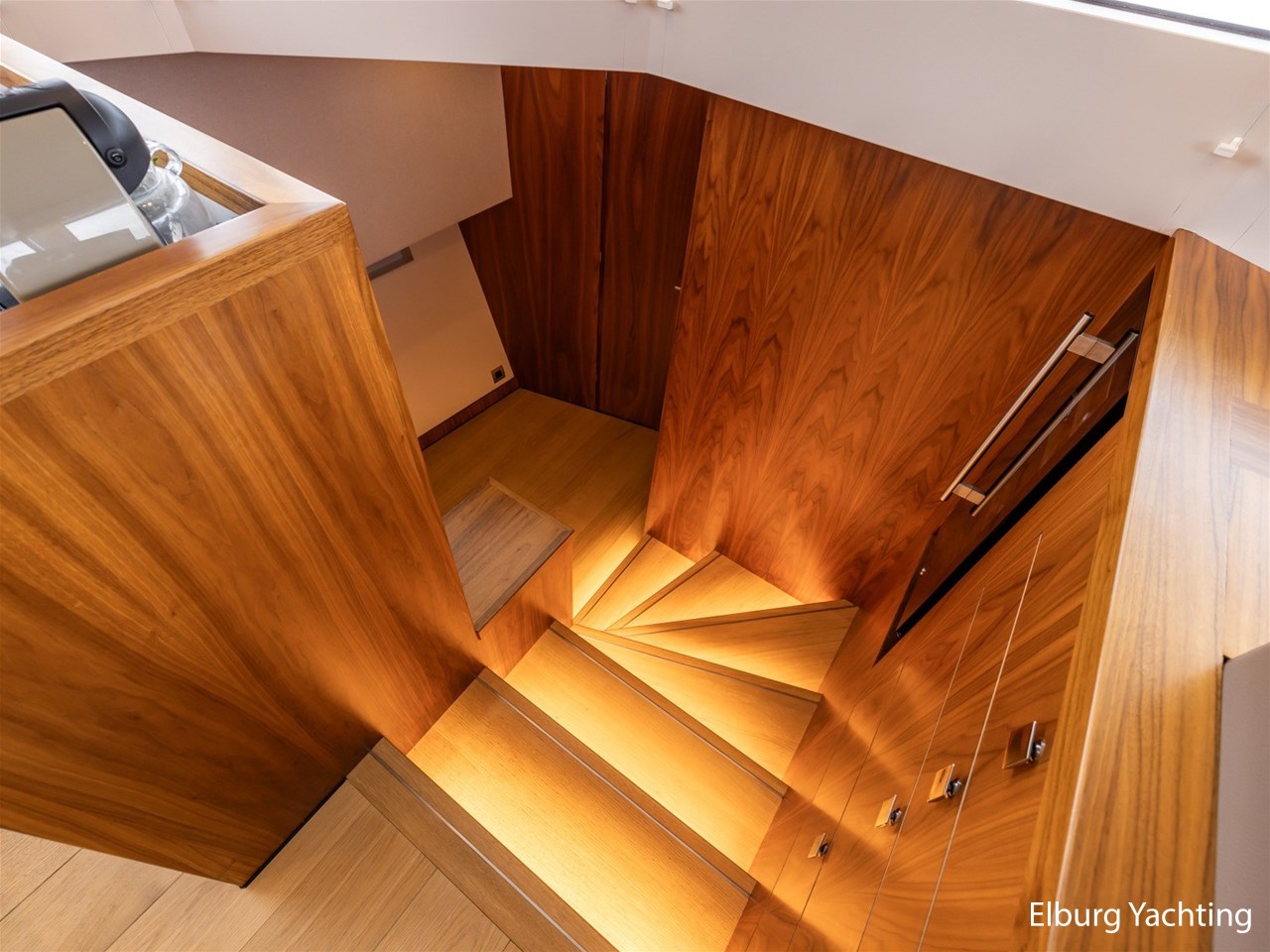 De Van den Hoven Executive is voorzien van o.a.: Vetus hydraulische stabilisatoren, Yachtcontrol software, Hull Vane , hydraulisch bedienbare aluminium mast, r.v.s. reling met een bovenbuis van 42mm, 10 bolders 90 mm op bolderplaten met omgezette randen, 4 ovale kikkers, 2 x r.v.s. vlaggenstok, ronde stootlijsten, instrumentenbeugel op mast, r.v.s. ankerkluis zijboeg, losse r.v.s trap voor afstap roef-/salondek, losse r.v.s. trap voor afstap gangboord/zwemtrap, 3 thermostaten, radiator in salon, gehele schip onder de waterlijn geïsoleerd met 4 cm purschuimisolatie, 12 patrijspoorten (175 x 375 mm) (Gebo) voorzien van los vliegenhor, 6 patrijspoorten romp (310 x 690 mm) volledig r.v.s. opendraaiend met vliegenhor, buiten en binnenverlichting waarvan 55 led plafondspots , 4 wandspots, 2 x dimmer in salon en eigenaarshut, 3 x ruitenwisser Exalto 240BS met wisserarmen, 2 x luxe badkamer met meubel, spoelbak en 2 x vrij hangend toilet, toegang tot flybridge d.m.v. geïntegreerde trap + afsluitbaar luik Gebo, bar/grill, zitgedeelte met tafel, mast op flybridge, airco in mastercabin, salon en omschakelbaar naar VIP en Guest cabin, alarminstallatie incl. rookmelders met melding naar gsm, wateronthardingssysteem, 1 x schuifraam salon verwerkt in plakbeglazing, verwarming achterdek d.m.v. warmtelucht unit met capaciteit van 10 KW gekoppeld aan Kabola KB40 kachel.
