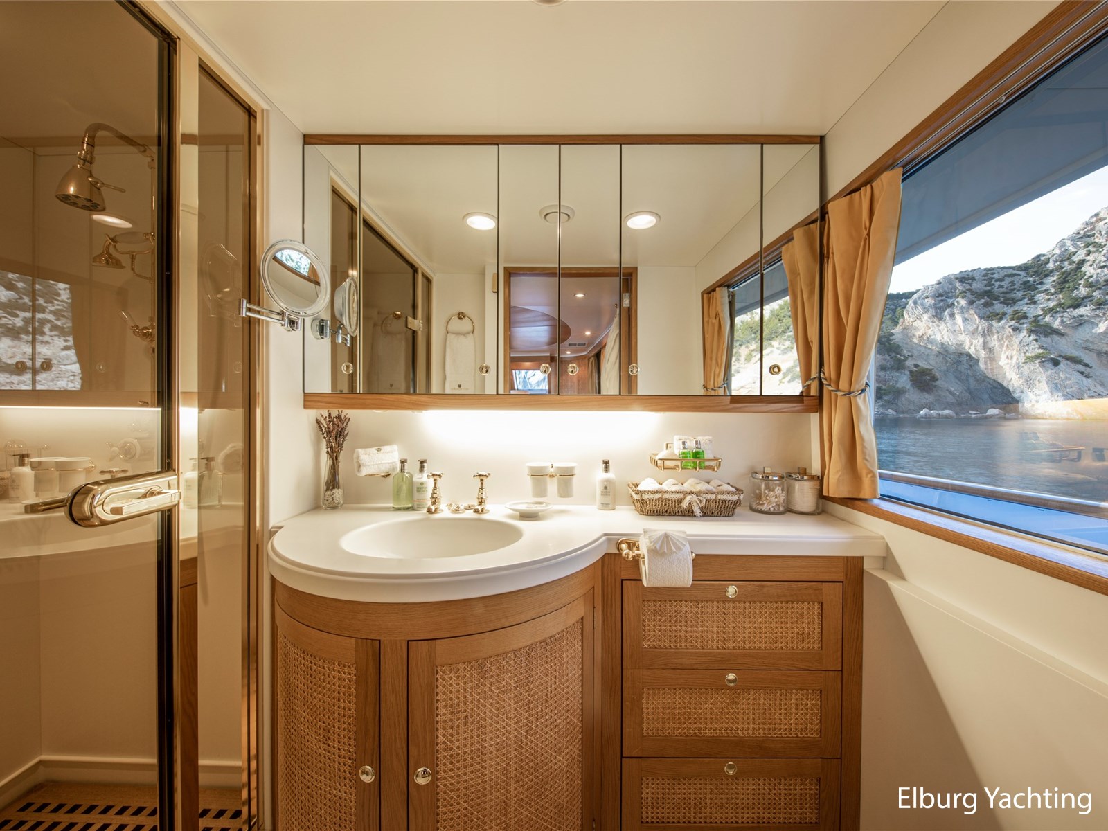 Een ondeck master cabin plus een full-beam VIP cabin en 2 gastenhutten beneden, allen met ensuite badkamers. Het verlengde achterschip biedt een mooi zwemplatform voor allerlei watersportactiviteiten. De ingebouwde trap leidt naar het hoofddek, dat beschikt over een ingebouwde bank en een mooie teakhouten eettafel. Schuiframen geven de keuze om al dan niet van de wind te genieten.