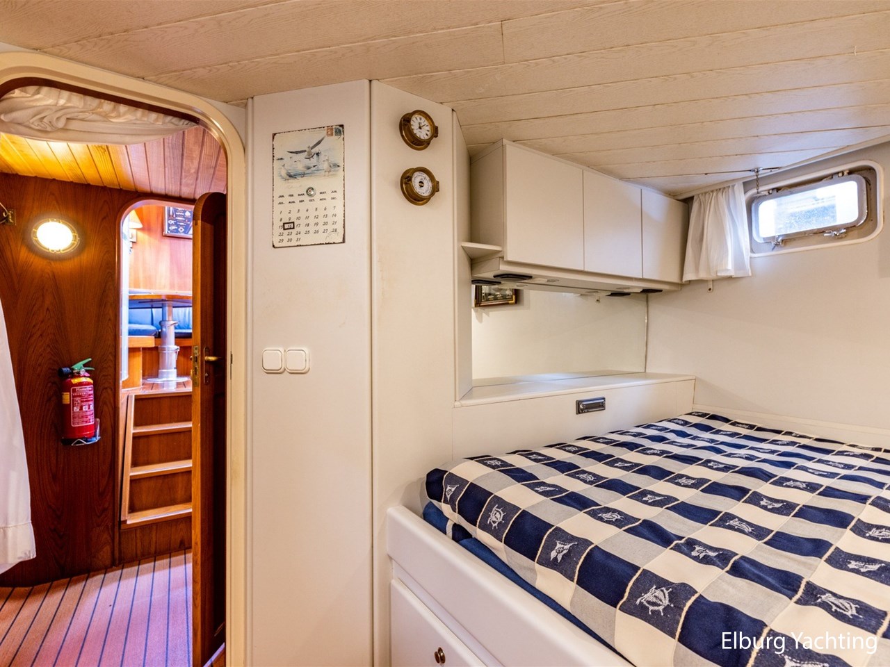 Authentiek en zwaar gebouwde Gillissen Rondspant Trawler met een klassieke uitstraling. Deze unieke Gillissen laat zich kenmerken door een professionele machinekamer, grote open kuip en een eigenaarshut midscheeps over de volledige breedte van het schip. Verder wordt dit schip geleverd met o.a: ruime salon met rondom zicht naar buiten, slingerruit, Miele novotronic WT 946was-/droogcombinatie, r.v.s. davits, mogelijkheid tot droogvallen, dubbele spoelbak in keuken, veel bergruimte door het gehele schip, traanplaat in machinekamer, automatische brandblusinstallatie in machinekamer (2019), gelakte houten railing, zwarte kunststof stootrand in r.v.s. eindhouders, 4 x openslaande deuren voor een open gevoel tussen salon en kuip, uitritsbare tent over de gehele kuip en achterhut (2019), camera aan achter zijde en aan stuurboord zijde, LED verlichting, teak banken met bergruimte in kuip, separate ingang naar machinekamer vanaf kuip of achterhut, dekwasinstallatie met separate hydrofoor, beunkoeling, hydraulisch strijkbare mast, romp in 2018 geschilderd, opbouw in 2017 geschilderd. Het schip heeft in 2002 een refit ondergaan bij Balk in Elburg en is daarna goed gedocumenteerd gebleven qua onderhoud.