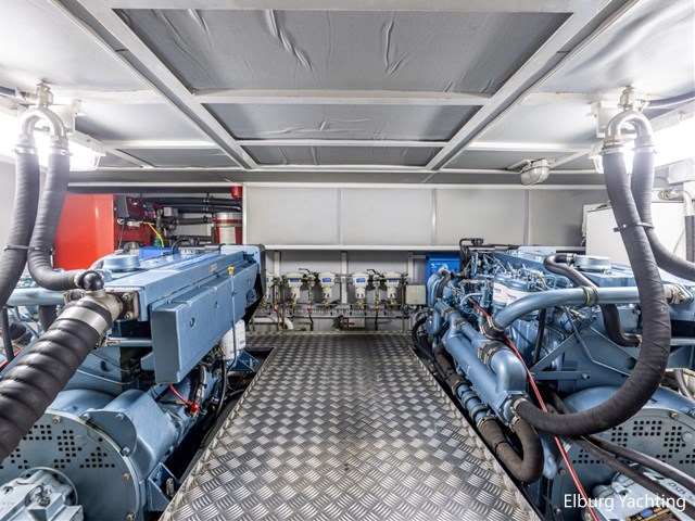 Zeer hoogwaardig gebouwd rondspant stalen motorjacht van jachtwerf De Gier en Bezaan, ontworpen door René van der Velden. Het houtwerk in het interieur is zeer rijk aan details en laat echt vakwerk zien. De machinekamer is professioneel geïsoleerd waardoor het geluid van de aandrijving tijdens het varen naar de achtergrond verdwijnt. Het jacht is compleet uitgerust om zowel op zee als binnenwateren goed en comfortabel te kunnen varen. Deze Admiral Class 1500 is voorzien van: AEG vaatwasser, Corian topbladen, 2 x diepe opbergluik op achterdek, luxe Recaro maritieme vaarstoelen in stuurhuis, in 4 delen klapbare deuren naar het stuurhuis, dek loopt gelijkvloers rondom met dubbele r.v.s. reling, 2 x doorgang in reling aan SB & BB + opstap via inklapbare r.v.s. boegladder, dakluik in stuurhuis en salon tevens voorzien van muggenhor, 1 x voorraam in stuurhuis te openen voor ventilatie, Bosch was/droog combinatie, dubbele Separ brandstoffilters per motor, inklapbare vaarbank in stuurhuis, beide badkamers voorzien van wandradiator, overzichtelijk en toegankelijk elektrisch paneel, doorvaarthoogte met mast op ca. 5,40m en met geklapte mast ca. 4,05m. Laatste onderhoud aan de hoofdmotoren en generator uitgevoerd in 2023. 9 x redtop accu's vernieuw in 2022.