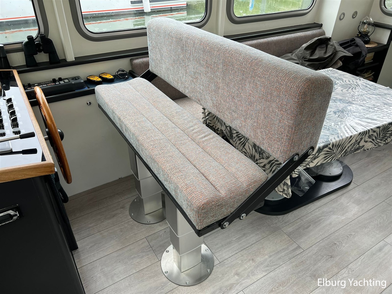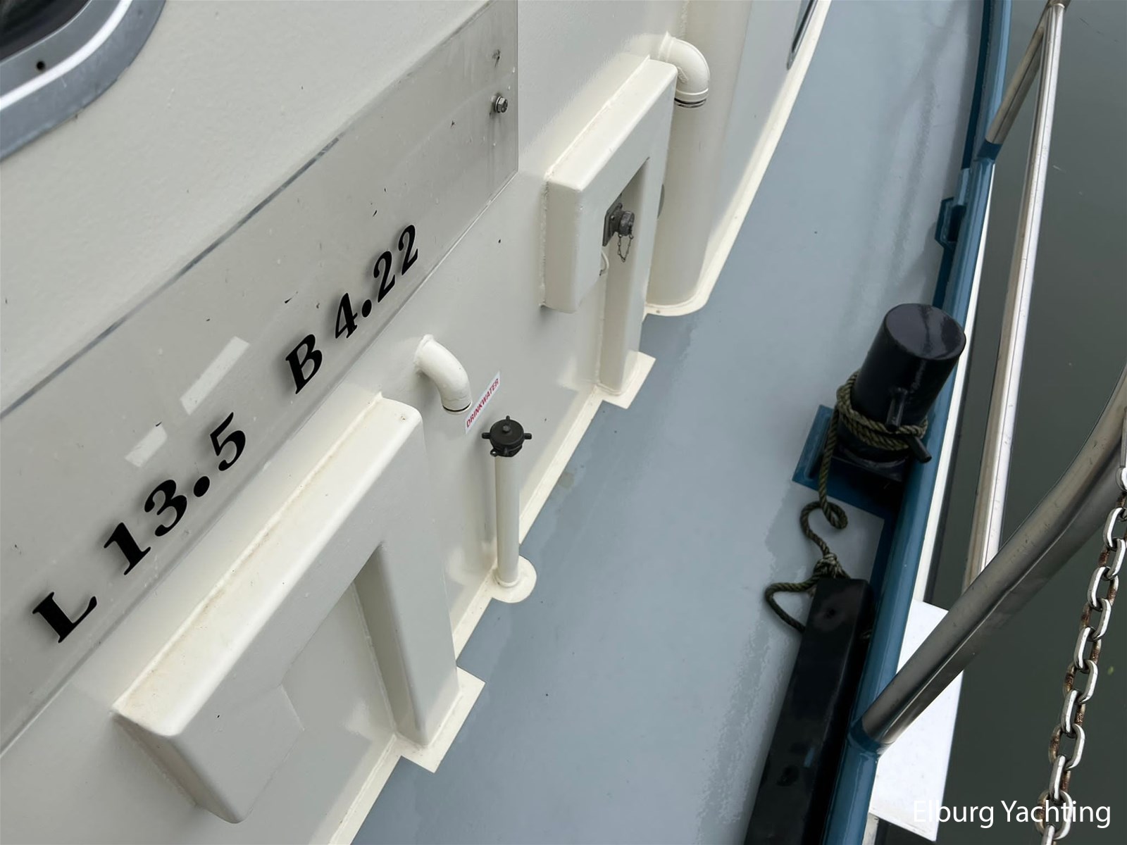 Professionele duw/sleep boot met de afwerking/intimmering van een jacht. Het schip is CVO gekeurd en is voorzien van een Europanummer. De centrale salon/stuurhuis is via een SB-zijdeur toegankelijk, de dinette biedt plaats voor 6 personen, de stuurbank is in hoogte elektrisch verstelbaar en de rugleuning is om te klappen zodat deze bij de dinette tafel betrokken kan worden, professioneel ingerichte stuurstand, follow-up besturing, tanks met mangaten, diverse ramen en patrijspoorten te openen voor extra ventilatie, dubbele r.v.s. reling rondom, afgesloten motorkamer, dekwaspomp, rubberen stootlijst rondom. Bij particuliere verkoop wordt het schip inclusief BTW verkocht.