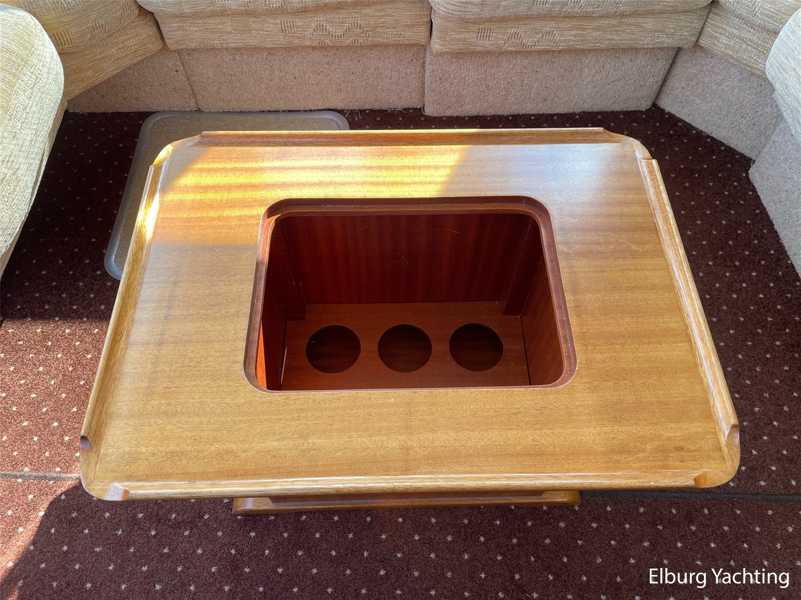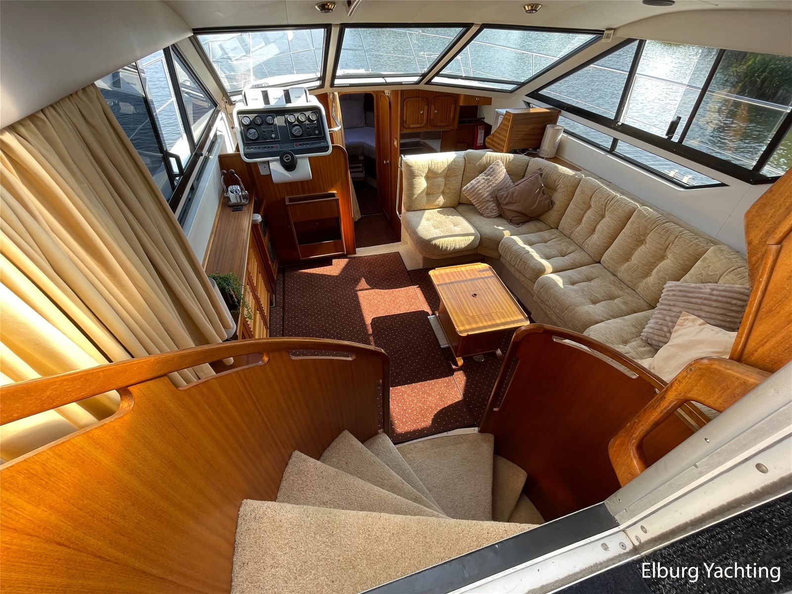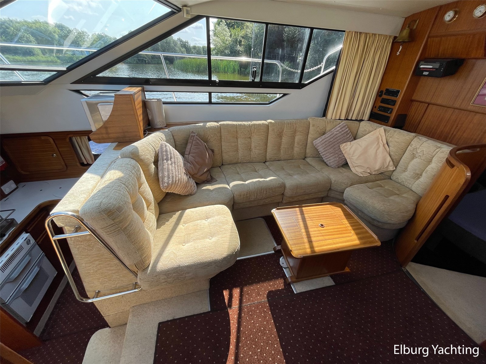 - Klassiek scheeps mahonie in combinatie met beige comfortabele bekleding