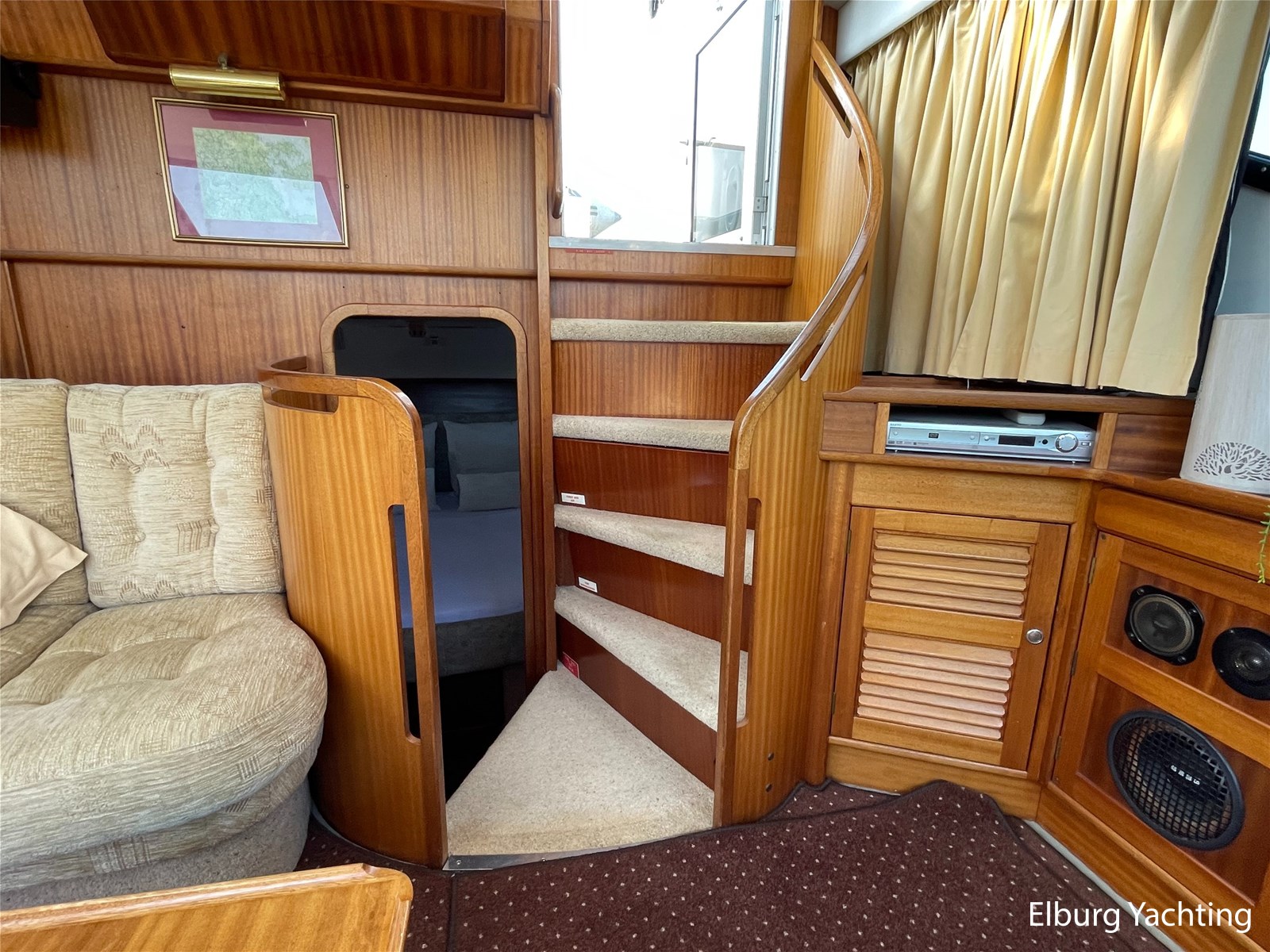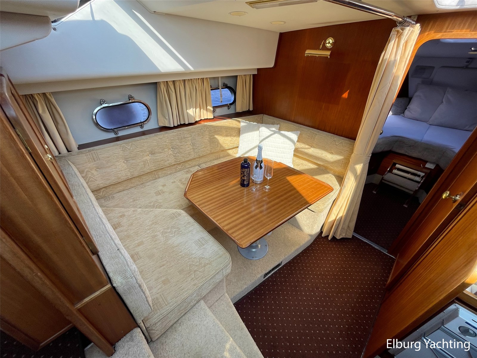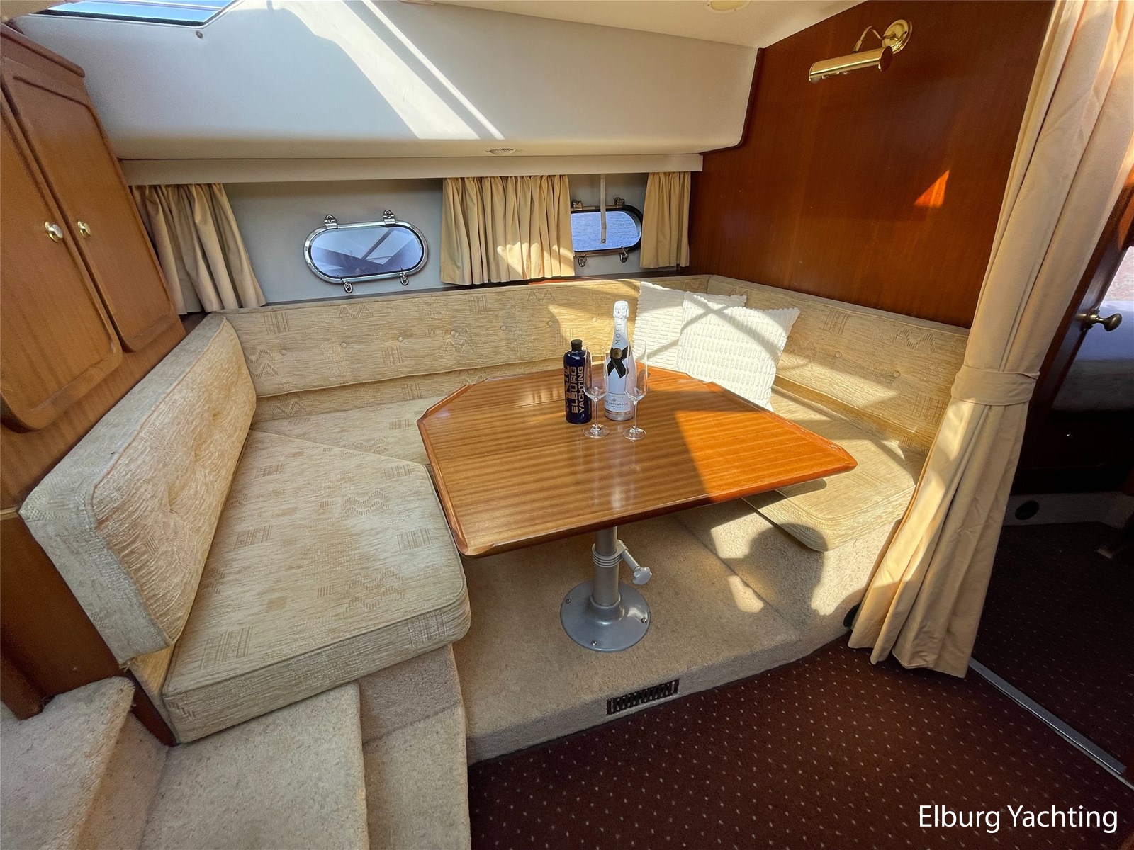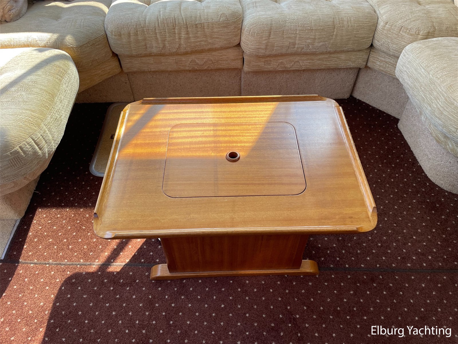 - Klassiek scheeps mahonie in combinatie met beige comfortabele bekleding