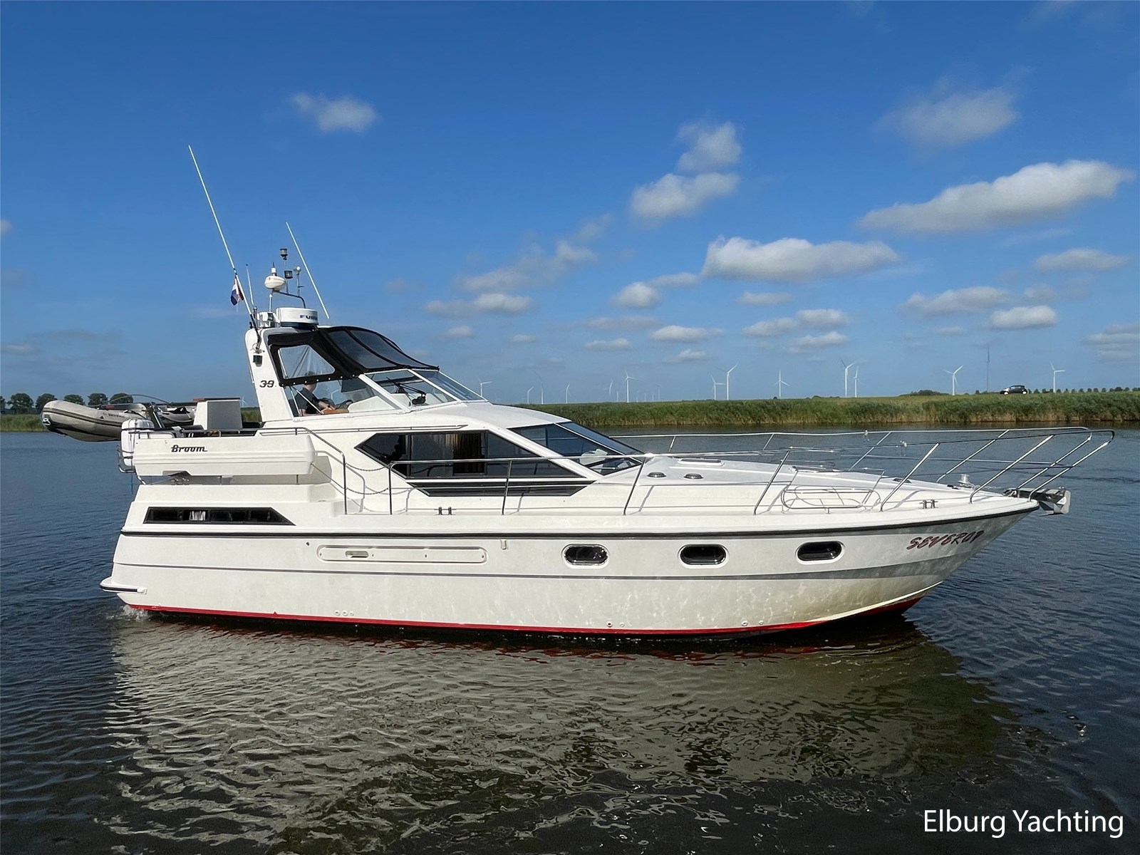 Deze Broom 39 is een echte comfortabele allrounder, geschikt voor zowel zee- als binnenwateren, het jacht is door de huidige eigenaar aankocht in 2004 en heeft reizen gemaakt van Groot-Brittannië naar Parijs en heeft gevaren in Nederland, Duitsland, Scandinavië en heeft tevens diverse Baltische havens bezocht. Zij is verder voorzien van o.a.: hoezen voor voorruiten en achterbank, bimini, muggenhorren, quadrofonisch geluidssysteem, meerdere drankkabinetten, kluis, reserve schroef, een selectie van Volvo motoronderdelen, volledige servicebeurt waarbij alle motorfillers en impellers zijn vervangen in 2024 (jaarlijks onderhouden) , transmissie olie vervangen (2023), stuurboord motor gereviseerd 2019, bakboordmotor nieuwe warmtewisselaar, 100 uur sindsdien, 2024 nieuwe elektrische macerator pomp voor toilet achter, Pomp toilet achter service 2024, vloerbedekking (2019), dynamo stuurboord vernieuwd (2023), V-snaren motor vervangen (2023) , nieuwe verf romp en antifouling (2019), nieuwe douche achter (2021), nieuwe anodes op romp en motor-assen (2024), nieuwe motor- en service accu`s (2024).