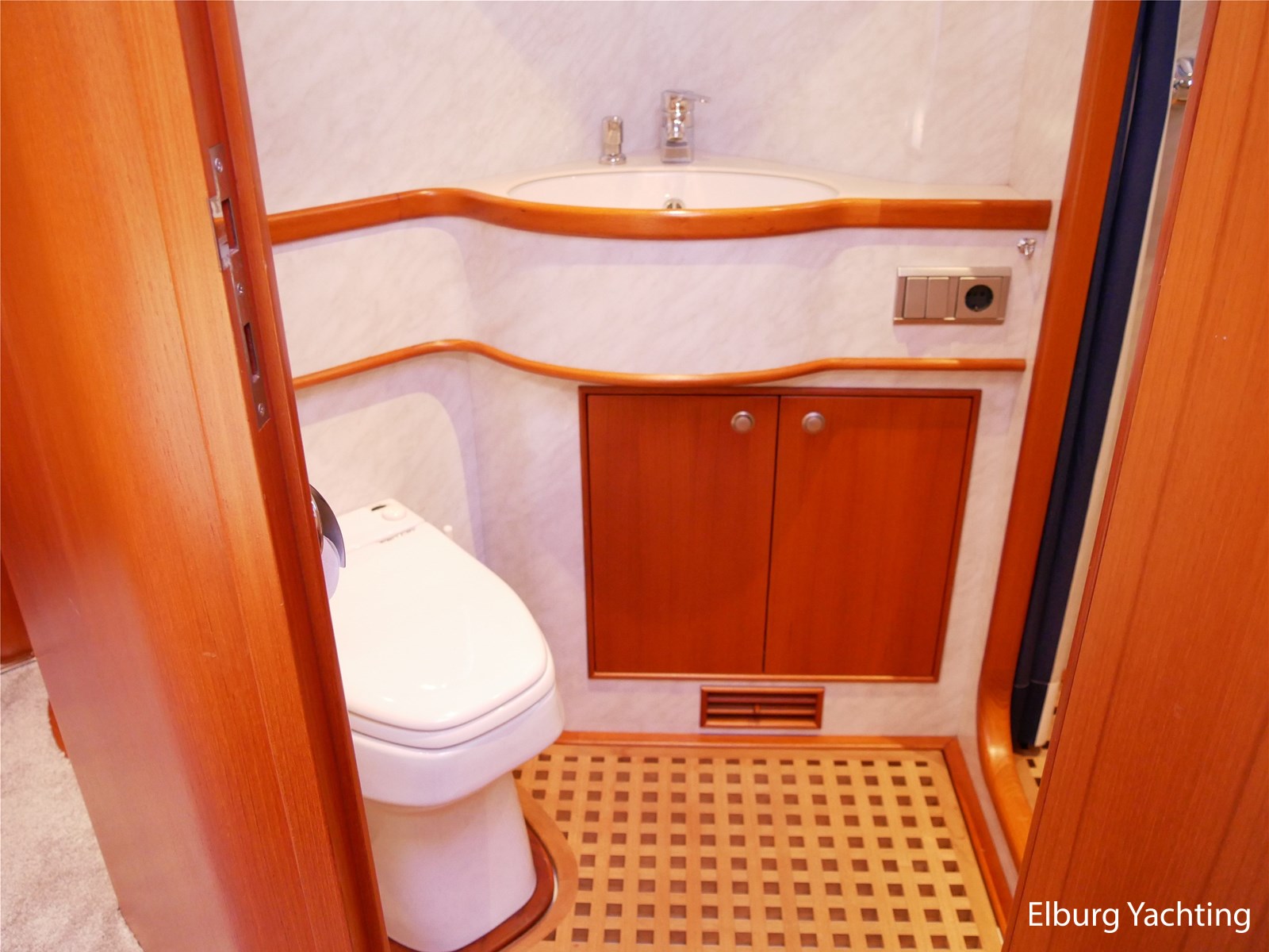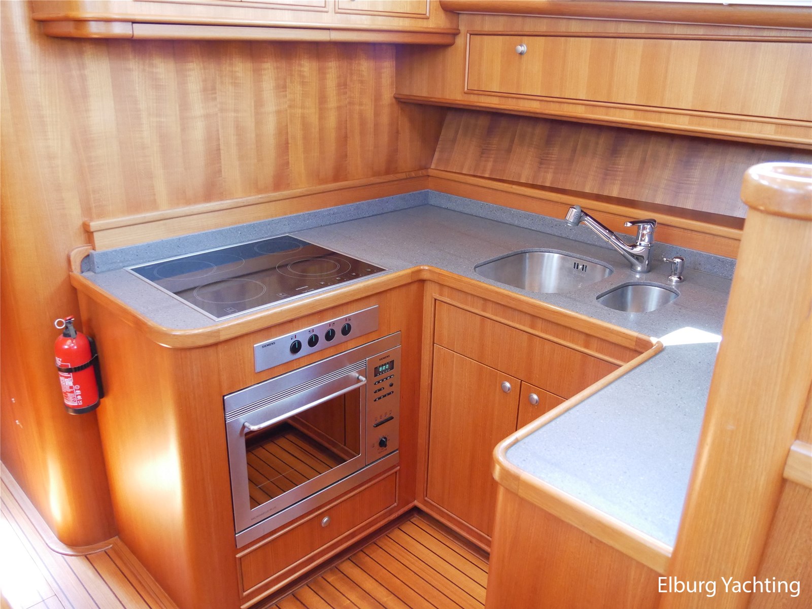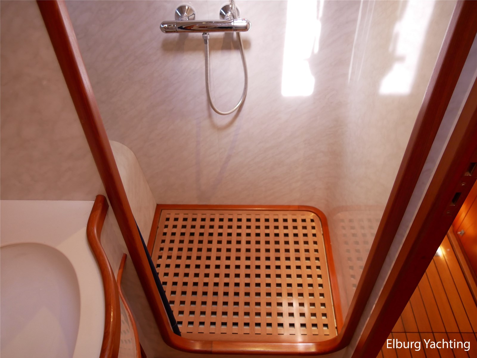 - Geintegreerd met teak dek + r.v.s. zwemtrap