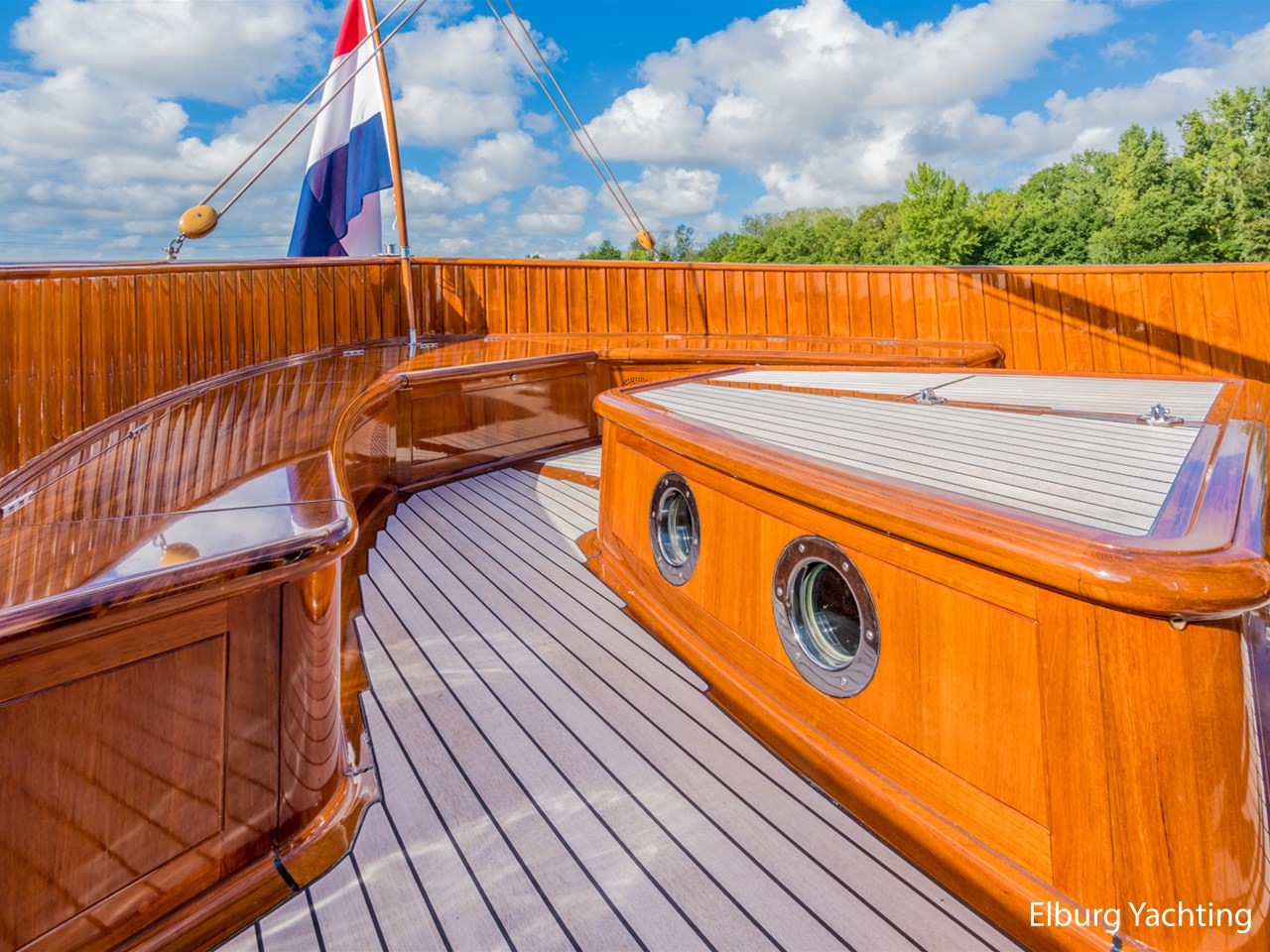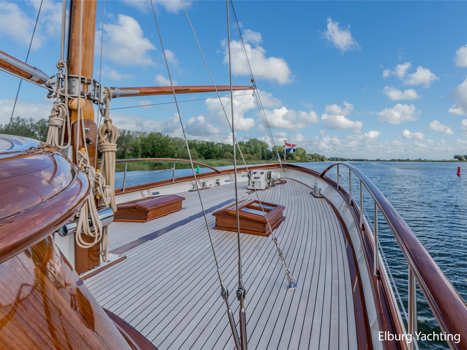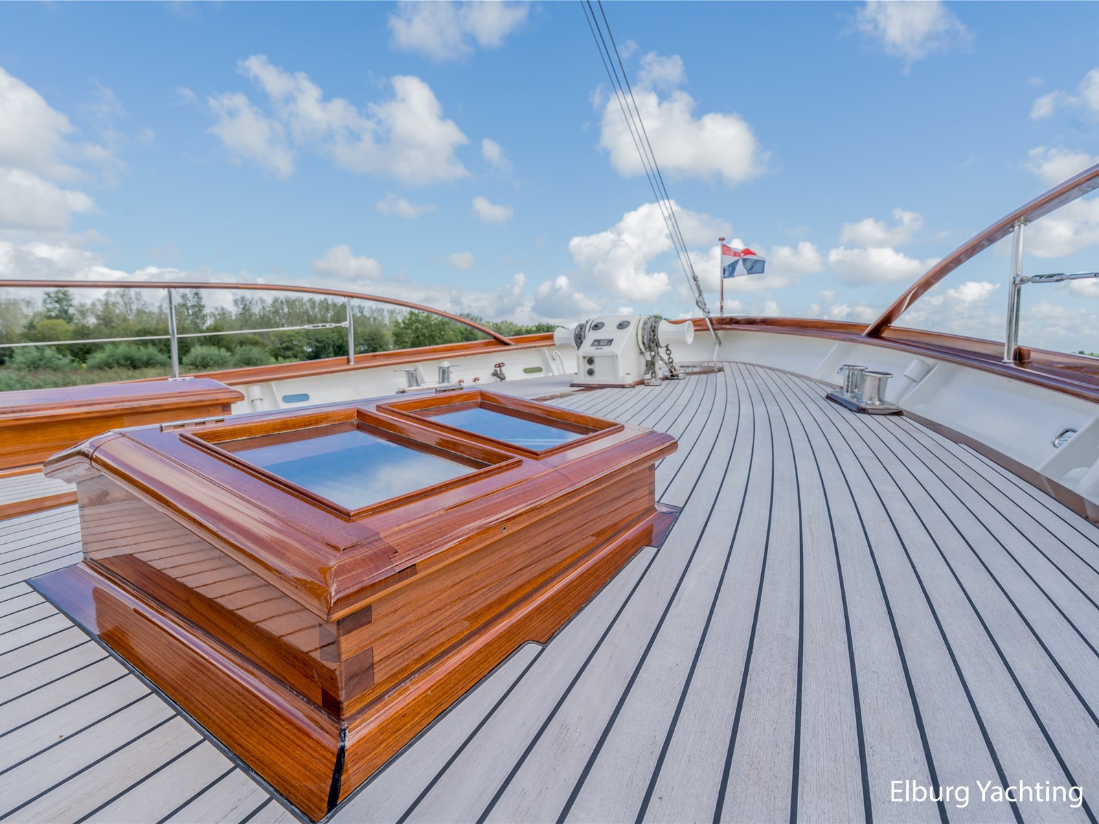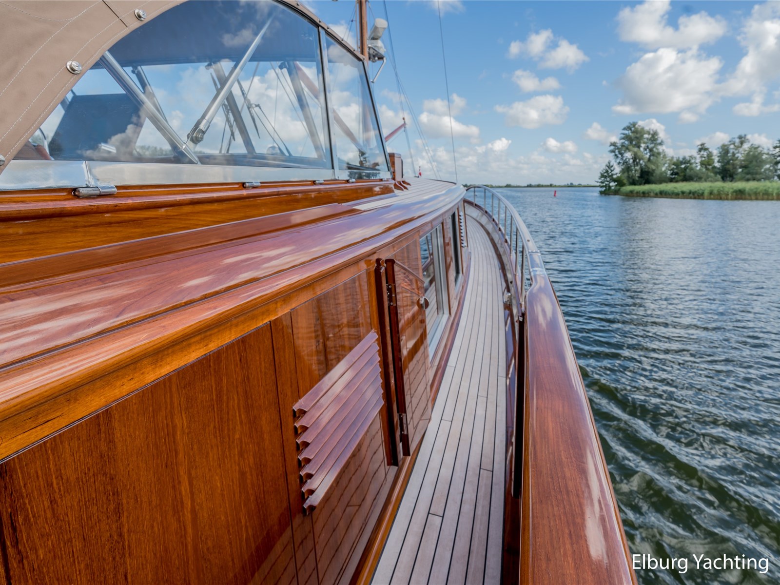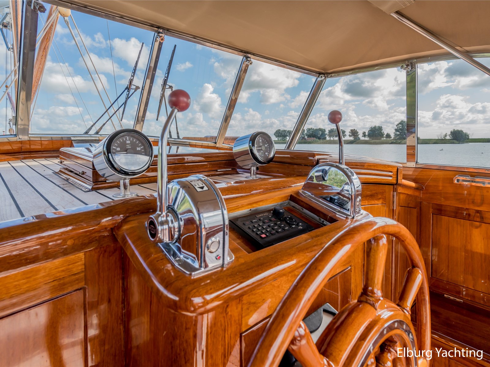 De Lunstroo 56 - (Total Refit 2015) is een stuk maritieme geschiedenis en zonder twijfel een van de meest in het oog springende kotterjachten die rondvaart. Het schip is gelanceerd in 1974, maar heeft in 2015 een volledige refit ondergaan op bij Nicolaas Witsen, waar kosten nog moeite zijn gespaard. Het schip heeft 2 nieuwe Perkins motoren gekregen, welke bekend staan om het lage toerental en laag geluidsniveau. Tijdens de refit is o.a. het volgende uitgevoerd : Nieuw massief teakdek (22 mm), nieuw teak kajuitdak (15 mm), Alle gelakte teakhout elementen van de kajuitopbouw zijn nieuw vervaardigd, verchroomde patrijspoorten, nieuw verpakte raamframes, de gehele elektrische installatie is vernieuwd incl. pompen en andere apparaten, nieuwe navigatieapparatuur, nieuw schroefassen, schroefaslagers, stuwdruklagers en schroeven. Alle tanks zijn open geweest, schoongemaakt en geïnspecteerd. (Zowel diesel, water en vuilwatertanks.), Leidingwerk is gemeten op wanddikte. Romp geschilderd in Awl Grip. Al het blanke lakwerk met impregneerhars en Dubbel UV Coating van Dubbelcoat Van de IJssel. (met uitzondering van de rondhouten), Motorbediening Morse omgebouwd tot elektronische bediening, Kabola CV met warmwatervoorziening gemonteerd, nieuwe stoffering, nieuw matrassen. De Lunstroo 56 beschikt over veel leefruimte in de salon en op het achterdek. Het is een uniek motorjacht met hoogwaardige afwerking met modern comfort en nieuwe techniek, geschikt om voor langere tijd op te verblijven. R.v.s. reling, r.v.s stootlijst, ruime zitgelegenheid in de salon, 7 slaapplaatsen, chroom omrand windscherm, achteringang, 2 x vluchtluik voorin, Miele wasmachine, stahoogte ca. 2 meter, achterhut geschikt voor crewcabine (incl. entree machinekamer), goed geïsoleerde machinekamer. Stereoset BOSE Binnen en Buiten (2015), Lowe TV + Lift (2015), CVO certificaat aanwezig, bilge alarm aanwezig in 3 zone’s . De huidige eigenaar heeft om makkelijker lage bruggen te passeren de voormast gedemonteerd en droog opgeslagen en de achtermast klapbaar gemaakt d.m.v. een lier. Ook is in de stuurboord hut één van de stabelbedden weggenomen om meer ruimte te creëren. De doorvaarthoogte met mast op is ca. 8,40m en met geklapte mast en kuipramen geklapt ca. 2,90m.