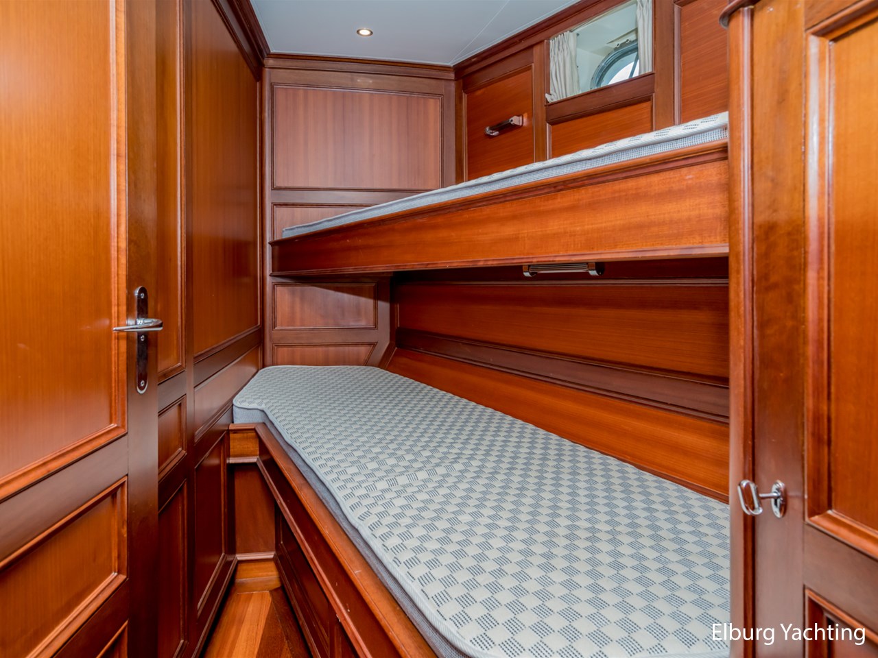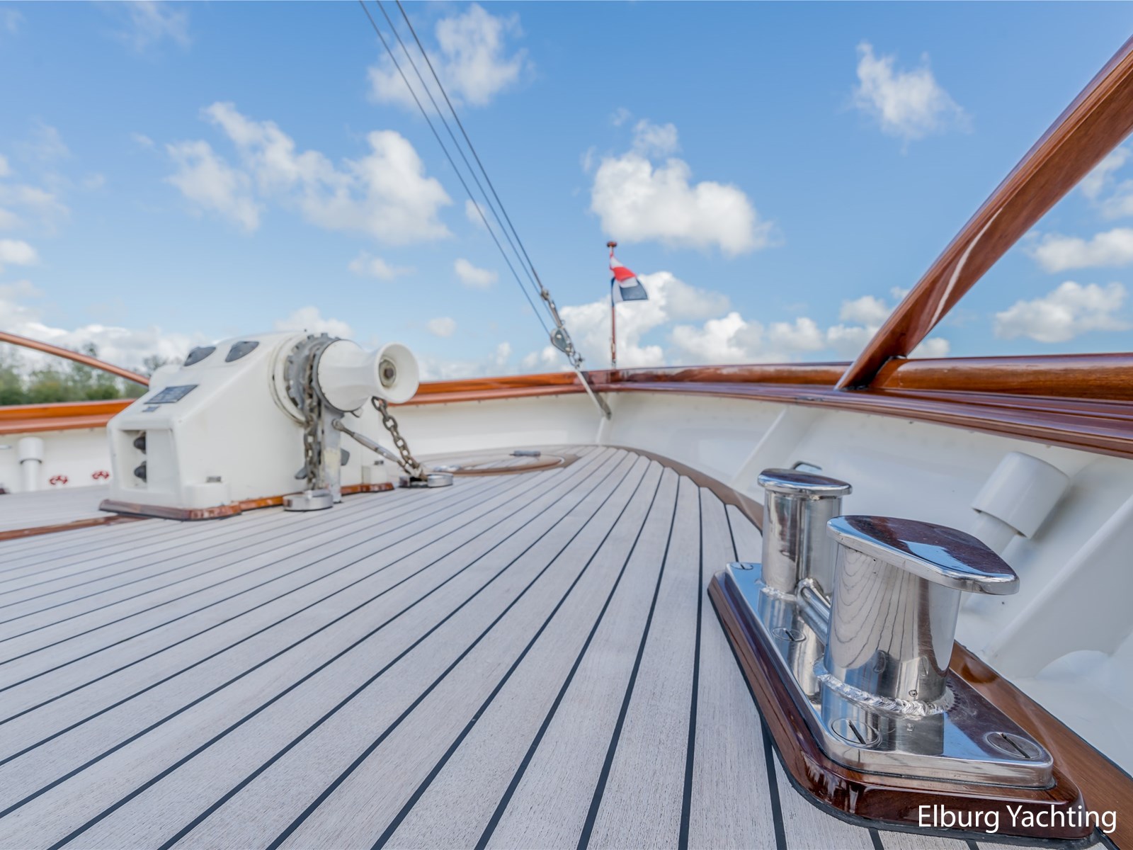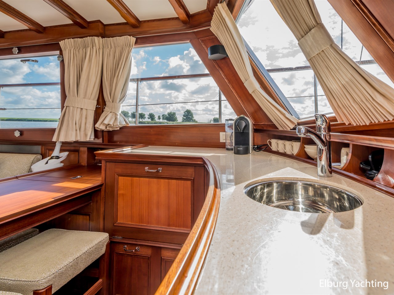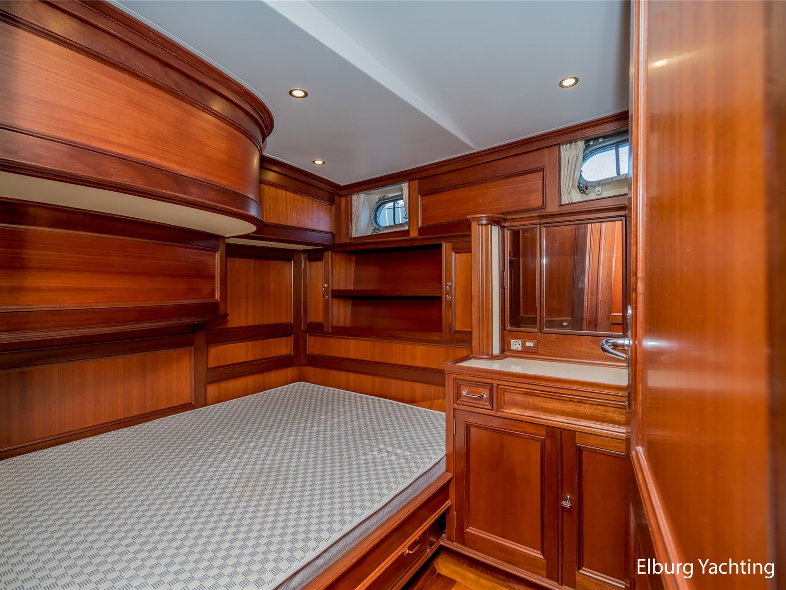 De Lunstroo 56 - (Total Refit 2015) is een stuk maritieme geschiedenis en zonder twijfel een van de meest in het oog springende kotterjachten die rondvaart. Het schip is gelanceerd in 1974, maar heeft in 2015 een volledige refit ondergaan op bij Nicolaas Witsen, waar kosten nog moeite zijn gespaard. Het schip heeft 2 nieuwe Perkins motoren gekregen, welke bekend staan om het lage toerental en laag geluidsniveau. Tijdens de refit is o.a. het volgende uitgevoerd : Nieuw massief teakdek (22 mm), nieuw teak kajuitdak (15 mm), Alle gelakte teakhout elementen van de kajuitopbouw zijn nieuw vervaardigd, verchroomde patrijspoorten, nieuw verpakte raamframes, de gehele elektrische installatie is vernieuwd incl. pompen en andere apparaten, nieuwe navigatieapparatuur, nieuw schroefassen, schroefaslagers, stuwdruklagers en schroeven. Alle tanks zijn open geweest, schoongemaakt en geïnspecteerd. (Zowel diesel, water en vuilwatertanks.), Leidingwerk is gemeten op wanddikte. Romp geschilderd in Awl Grip. Al het blanke lakwerk met impregneerhars en Dubbel UV Coating van Dubbelcoat Van de IJssel. (met uitzondering van de rondhouten), Motorbediening Morse omgebouwd tot elektronische bediening, Kabola CV met warmwatervoorziening gemonteerd, nieuwe stoffering, nieuw matrassen. De Lunstroo 56 beschikt over veel leefruimte in de salon en op het achterdek. Het is een uniek motorjacht met hoogwaardige afwerking met modern comfort en nieuwe techniek, geschikt om voor langere tijd op te verblijven. R.v.s. reling, r.v.s stootlijst, ruime zitgelegenheid in de salon, 7 slaapplaatsen, chroom omrand windscherm, achteringang, 2 x vluchtluik voorin, Miele wasmachine, stahoogte ca. 2 meter, achterhut geschikt voor crewcabine (incl. entree machinekamer), goed geïsoleerde machinekamer. Stereoset BOSE Binnen en Buiten (2015), Lowe TV + Lift (2015), CVO certificaat aanwezig, bilge alarm aanwezig in 3 zone’s . De huidige eigenaar heeft om makkelijker lage bruggen te passeren de voormast gedemonteerd en droog opgeslagen en de achtermast klapbaar gemaakt d.m.v. een lier. Ook is in de stuurboord hut één van de stabelbedden weggenomen om meer ruimte te creëren. De doorvaarthoogte met mast op is ca. 8,40m en met geklapte mast en kuipramen geklapt ca. 2,90m.
