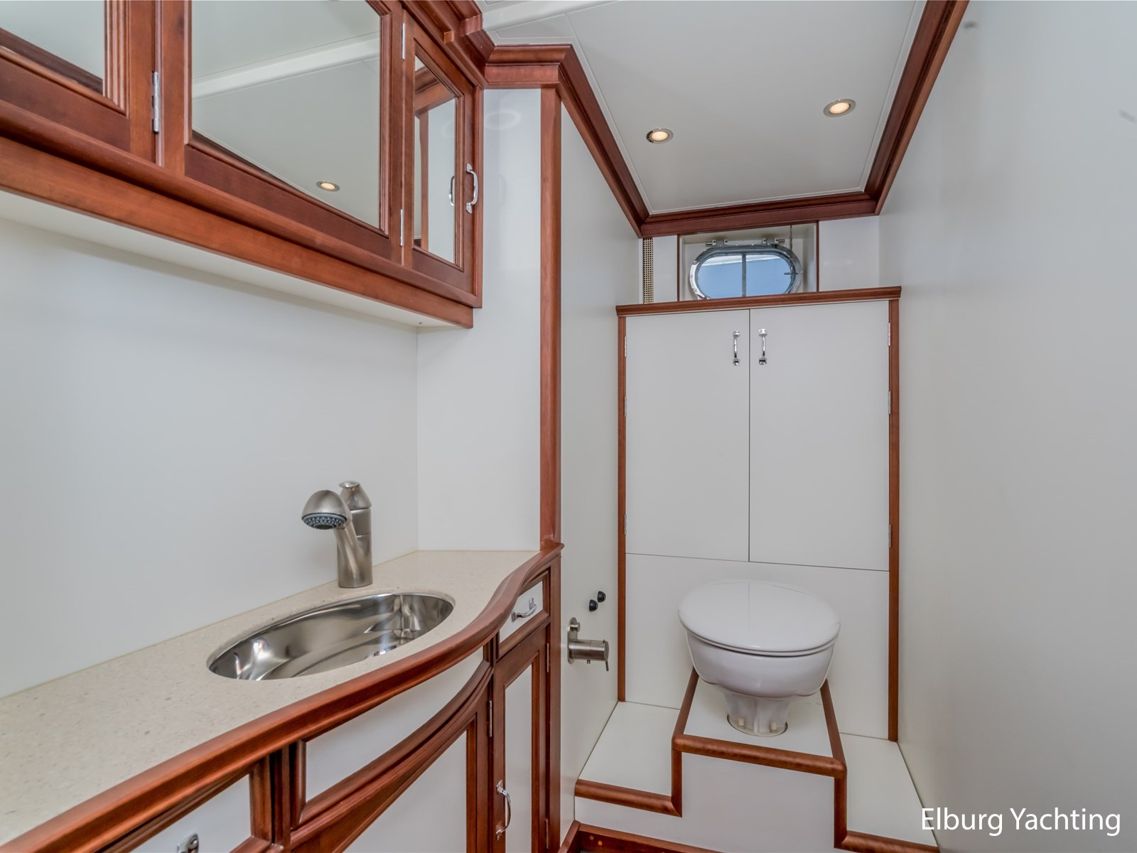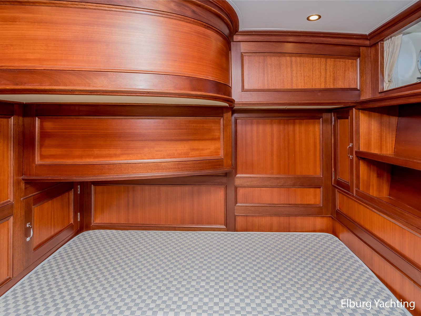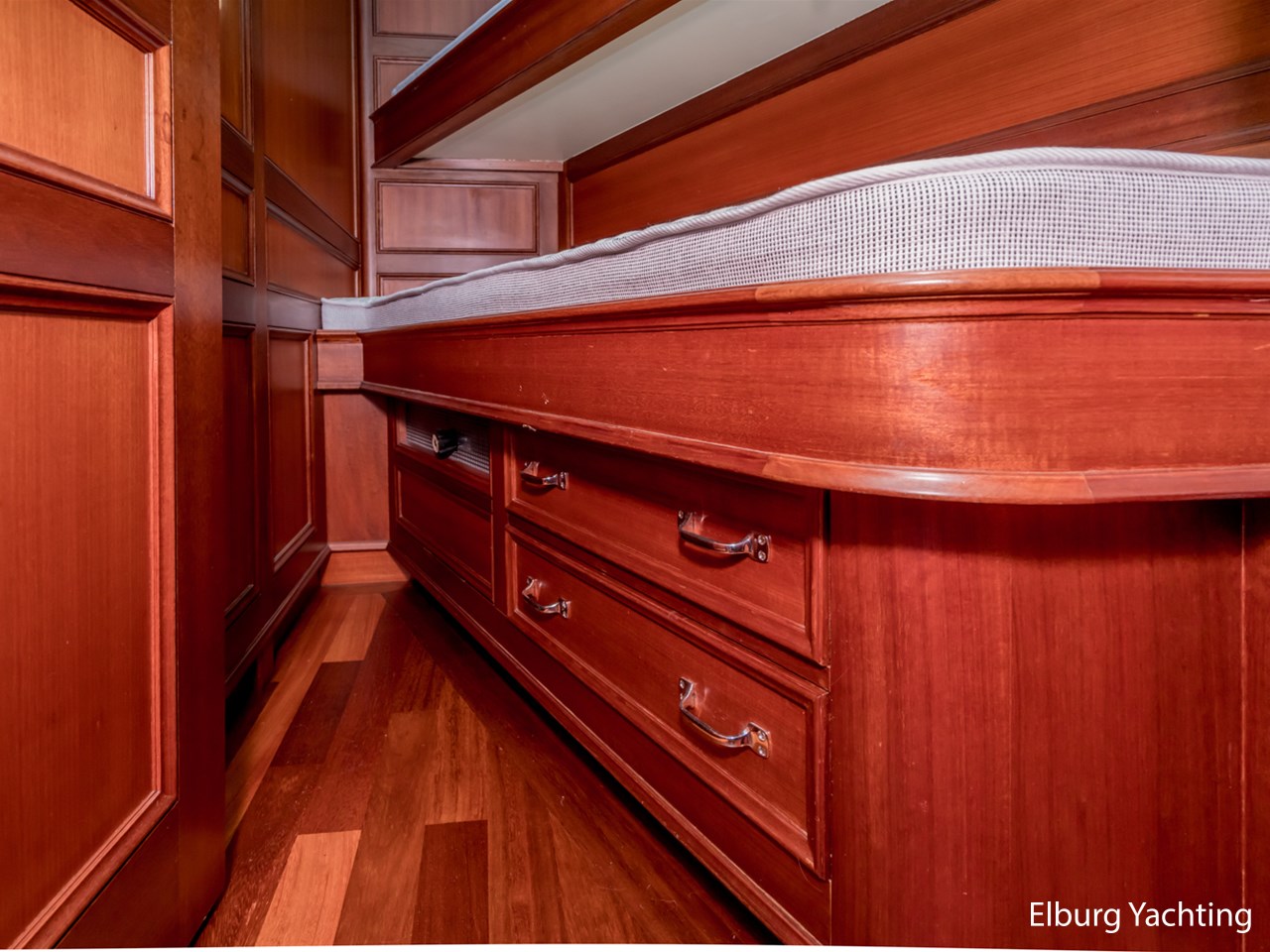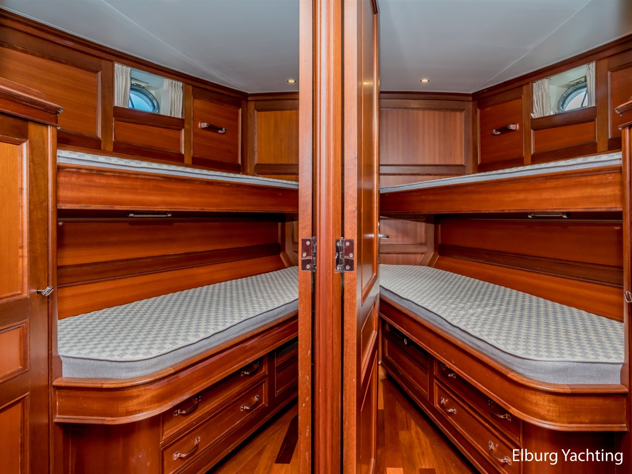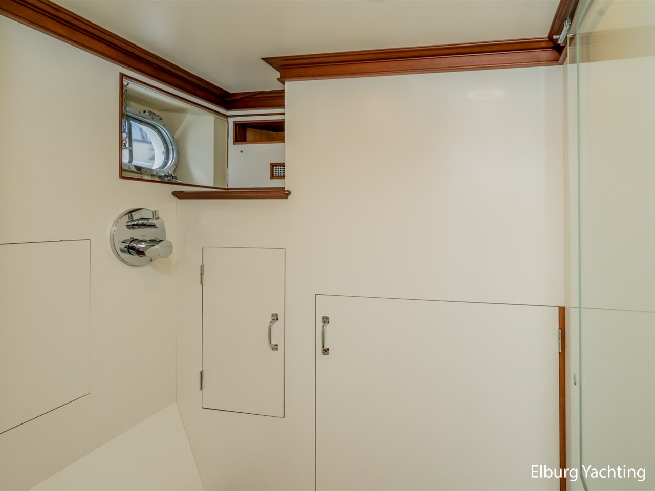 De Lunstroo 56 - (Total Refit 2015) is een stuk maritieme geschiedenis en zonder twijfel een van de meest in het oog springende kotterjachten die rondvaart. Het schip is gelanceerd in 1974, maar heeft in 2015 een volledige refit ondergaan op bij Nicolaas Witsen, waar kosten nog moeite zijn gespaard. Het schip heeft 2 nieuwe Perkins motoren gekregen, welke bekend staan om het lage toerental en laag geluidsniveau. Tijdens de refit is o.a. het volgende uitgevoerd : Nieuw massief teakdek (22 mm), nieuw teak kajuitdak (15 mm), Alle gelakte teakhout elementen van de kajuitopbouw zijn nieuw vervaardigd, verchroomde patrijspoorten, nieuw verpakte raamframes, de gehele elektrische installatie is vernieuwd incl. pompen en andere apparaten, nieuwe navigatieapparatuur, nieuw schroefassen, schroefaslagers, stuwdruklagers en schroeven. Alle tanks zijn open geweest, schoongemaakt en geïnspecteerd. (Zowel diesel, water en vuilwatertanks.), Leidingwerk is gemeten op wanddikte. Romp geschilderd in Awl Grip. Al het blanke lakwerk met impregneerhars en Dubbel UV Coating van Dubbelcoat Van de IJssel. (met uitzondering van de rondhouten), Motorbediening Morse omgebouwd tot elektronische bediening, Kabola CV met warmwatervoorziening gemonteerd, nieuwe stoffering, nieuw matrassen. De Lunstroo 56 beschikt over veel leefruimte in de salon en op het achterdek. Het is een uniek motorjacht met hoogwaardige afwerking met modern comfort en nieuwe techniek, geschikt om voor langere tijd op te verblijven. R.v.s. reling, r.v.s stootlijst, ruime zitgelegenheid in de salon, 7 slaapplaatsen, chroom omrand windscherm, achteringang, 2 x vluchtluik voorin, Miele wasmachine, stahoogte ca. 2 meter, achterhut geschikt voor crewcabine (incl. entree machinekamer), goed geïsoleerde machinekamer. Stereoset BOSE Binnen en Buiten (2015), Lowe TV + Lift (2015), CVO certificaat aanwezig, bilge alarm aanwezig in 3 zone’s . De huidige eigenaar heeft om makkelijker lage bruggen te passeren de voormast gedemonteerd en droog opgeslagen en de achtermast klapbaar gemaakt d.m.v. een lier. Ook is in de stuurboord hut één van de stabelbedden weggenomen om meer ruimte te creëren. De doorvaarthoogte met mast op is ca. 8,40m en met geklapte mast en kuipramen geklapt ca. 2,90m.