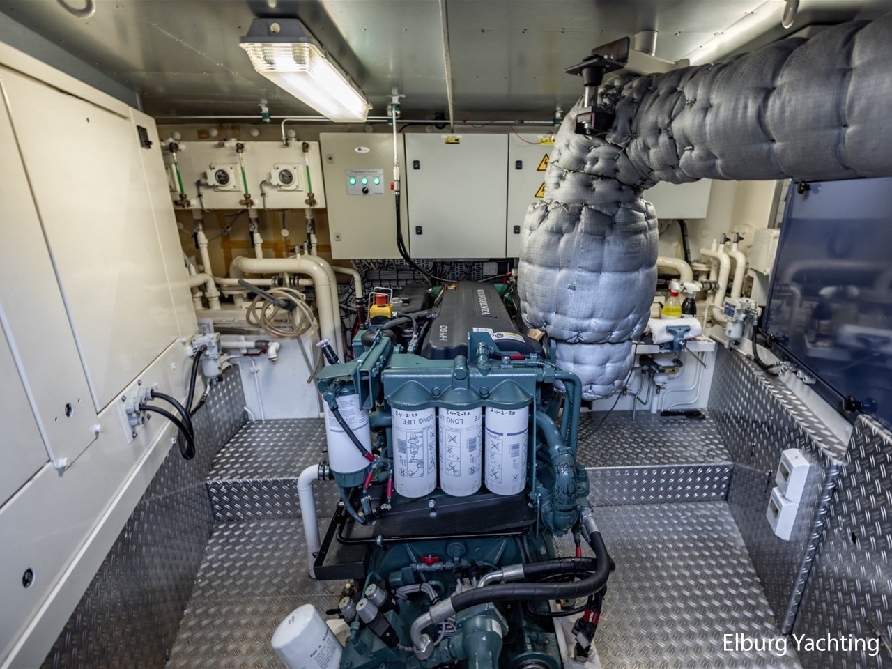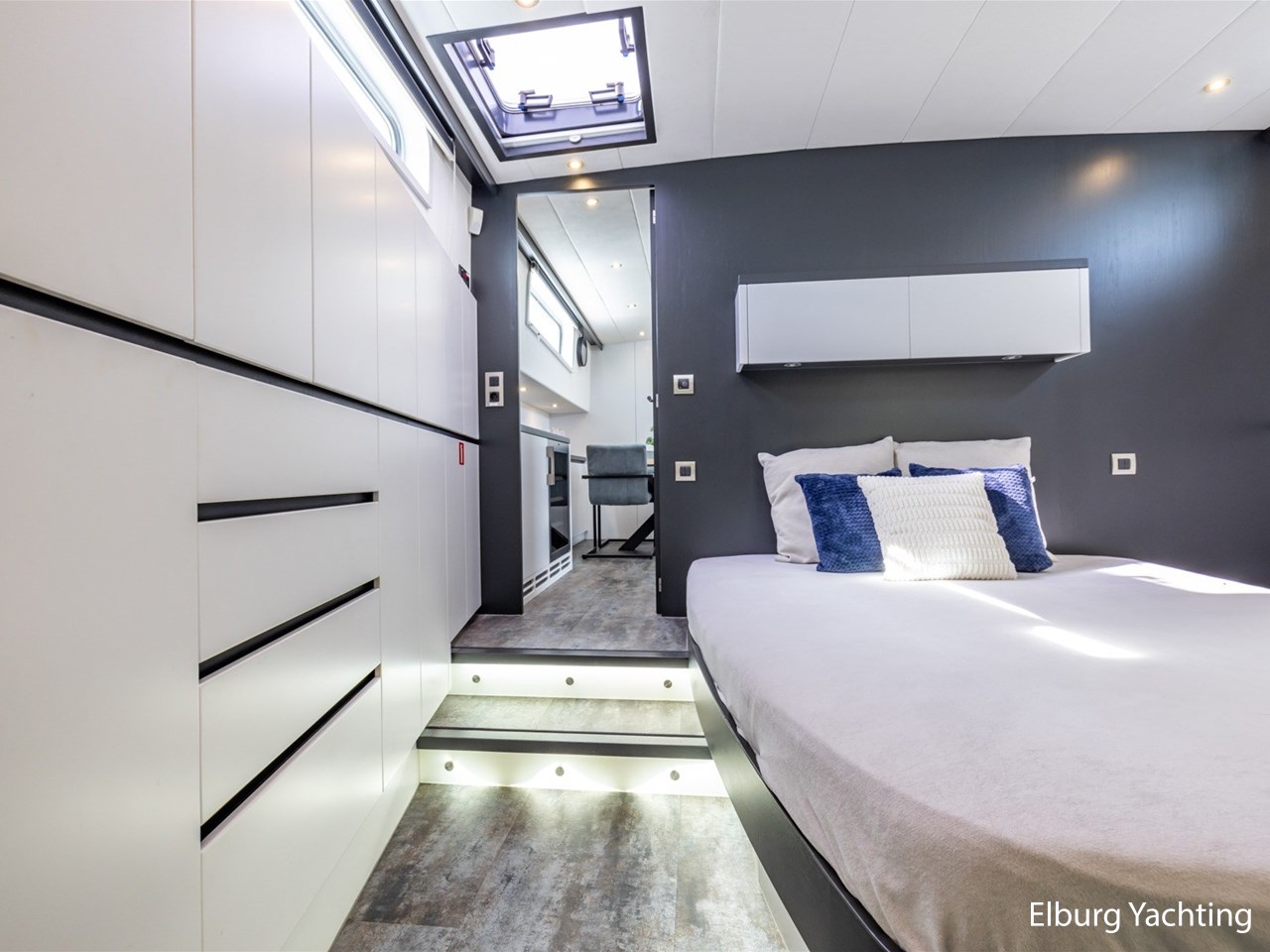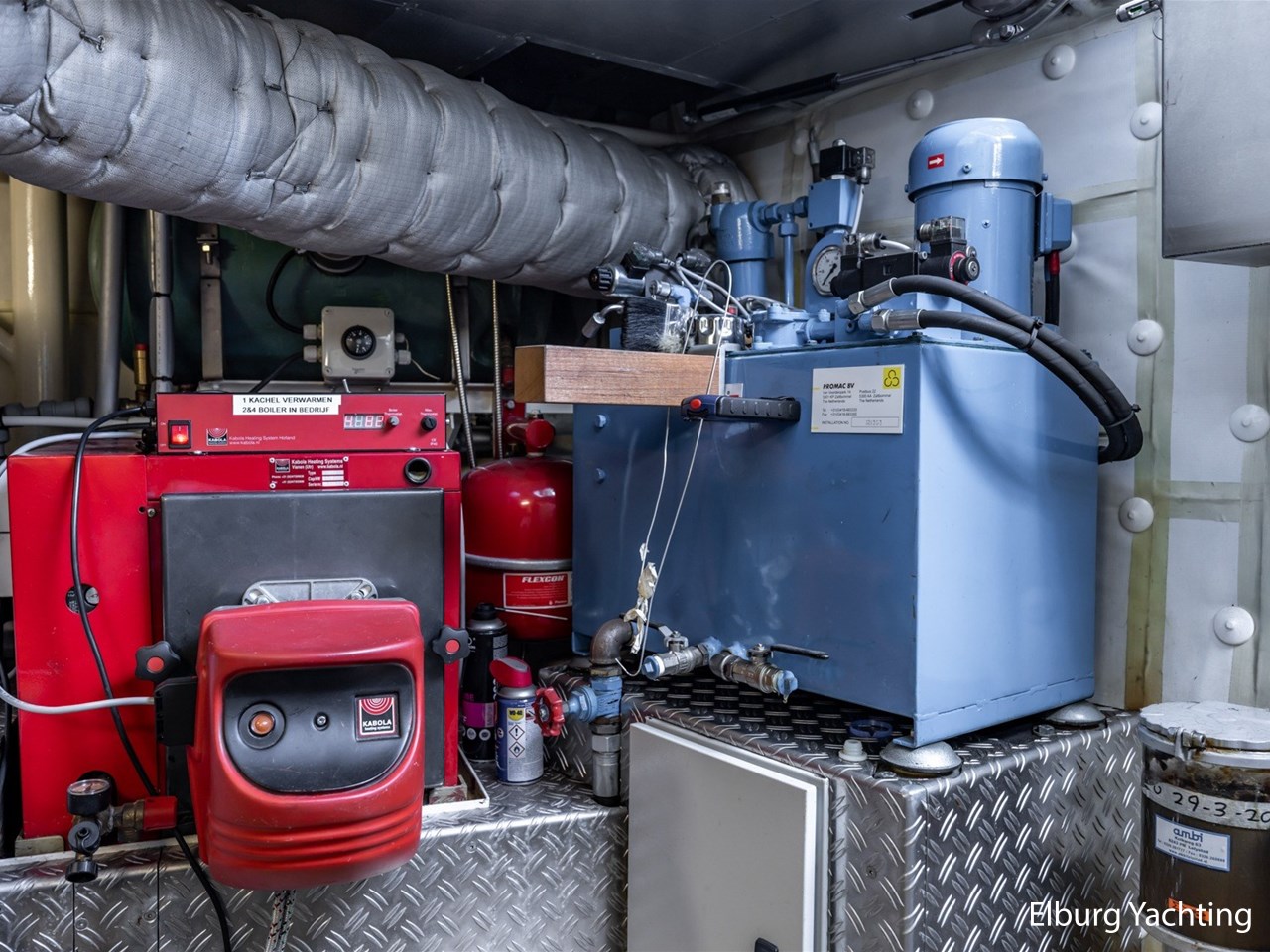 - Kabola HR 500 (19,7 kW) met vloerverwarming door gehele schip + Mar-IX airco in eigenaarshut op 24 Volt