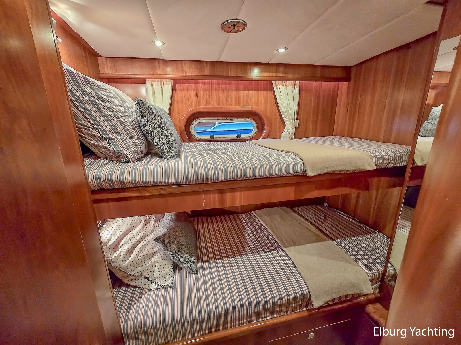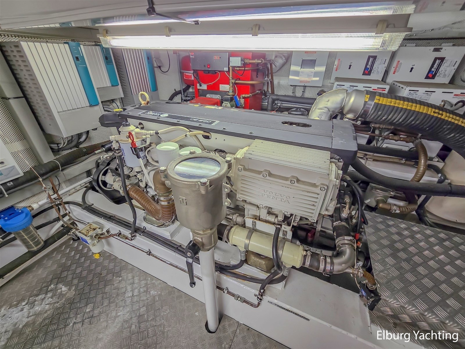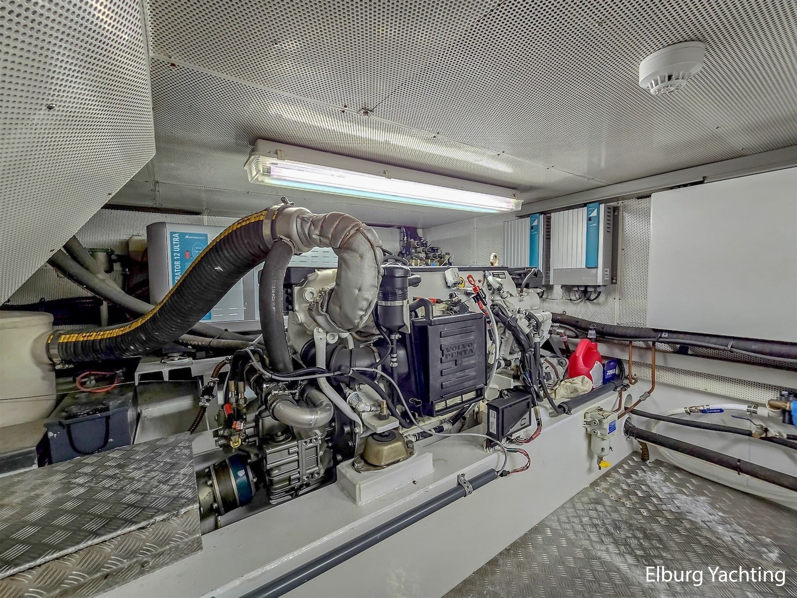 De combinatie van haar stille dubbele Volvo Penta D6-310 pk motoren, boeg-/ hekschroef en haar op afstand bedienbare dockingsysteem maakt manoeuvreren in havens en sluizen eenvoudig. Met haar ROTOSWING stabilisatoren is ze ideaal voor langere afstanden en het bevaren van rivieren. Haar marineblauwe romp en witte bovenzijde zijn in 2023 professioneel overgeschilderd in Alexseal. De teakhouten dekken zijn opnieuw gekit en licht geschuurd in 2023.