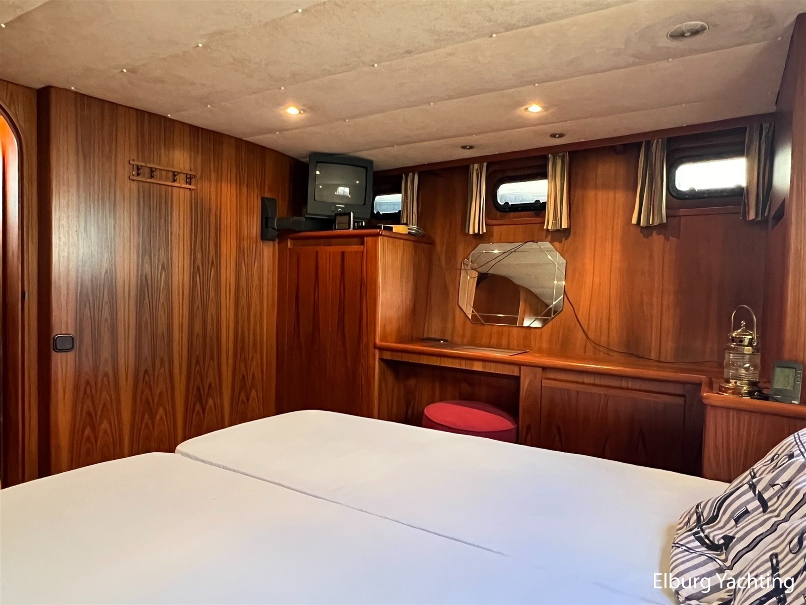 Deze Altena 48 Sedan met achterkajuit wordt verkocht door de eerste eigenaar! Het schip is van alle gemakken voorzien om ook permanente bewoning aan boord mogelijk te maken. Door zijn praktische indeling en uitgebreide techniek aan boord is dit een heerlijk vaar- en leefschip. In het oogspringende eigenschappen van dit schip zijn de 3 hutten indeling met dubbele badkamer, ruime salon, dubbel glas, centrale verwarming, hydraulische boegschroef en KOOP-Nautic vin stabilisatoren. Deze Altena 48 Sedan is o.a. voorzien van: Volledig afsluitbare tent over het achterdek, ruime buiten zit met geïntegreerde bank inclusief bijbehorende kussens, in vier delen te openen deuren naar het stuurhuis om binnen en buiten met elkaar te verbinden, vast stuurstoel met meevaarzit, Afneembare zonneschermen rondom ramen stuurhuis, hydraulisch klapbare mast, r.v.s. fenderhouders op voordek, horren voor patrijspoorten, half ronde trap naar het zwemplateau, TV in salon, veel kast ruimte met hang en leg mogelijkheid, buitenverlichting, Eumenia wasmachine, Megasat ontvanger.