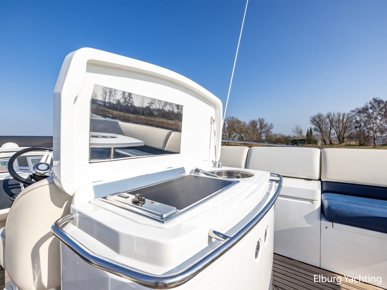 Het jacht is voorzien van: complete kuiptent + bimini (2024), screens voor de ramen (2024), hoogglans kersenhouten interieur met beige lederen bekleding, wit suède plafonds, Bose audiosysteem, koelkast in salon, nieuwe combi magnetron (2024), dinette op meevaarhoogte, 2 lederen vaarstoelen, achteruitkijkcamera, CruisAir airconditioning te bedienen in elke ruimte, Zanussi vaatwasser, Bosch was-droogcombinatie, veel lichtinval door grote ramen in eigenaarshut, een van de ramen te openen voor ventilatie, 2 douces in afsluitbare cabine, ruime kuip met luie trap naar flybridge, wetbar met spoelbak en grill op flybridge, koelruimte tussen de banken, ligruimte op flybridge, bekleding compleet af de dekken met hoezen. Voor vragen en/of het maken van een afspraak bent u 7 dagen per week van harte welkom bij Elburg Yachting.