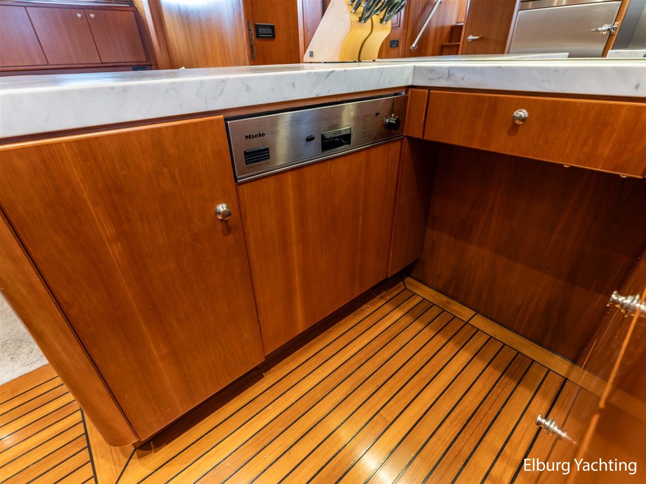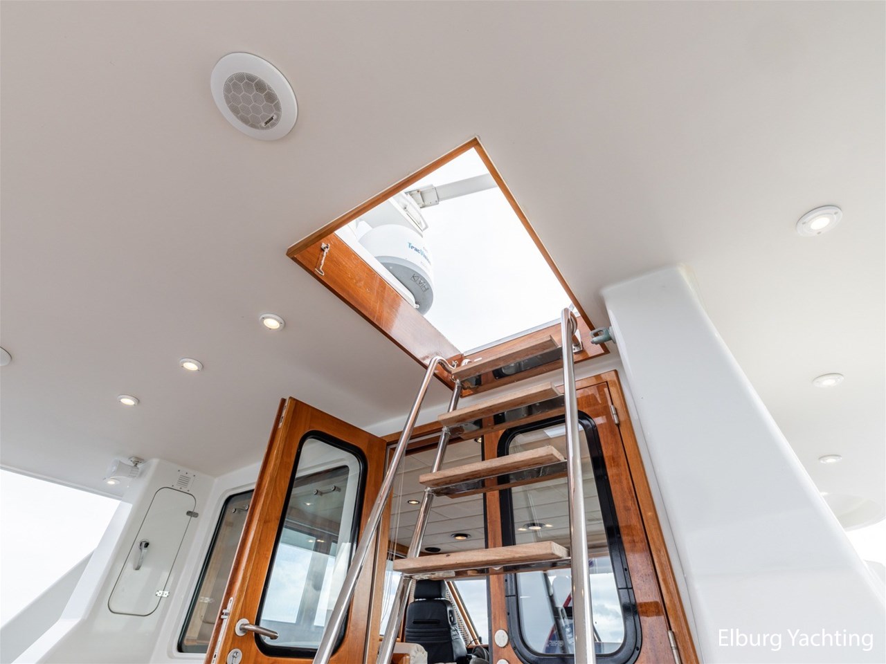 - Kersen scheepsinterieur + alcantara plafonddelen + teak vloer in de keuken