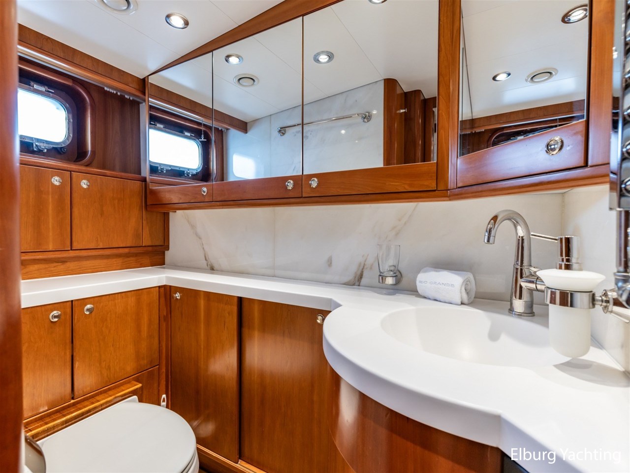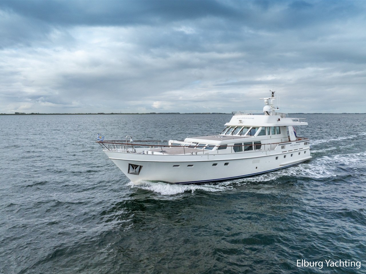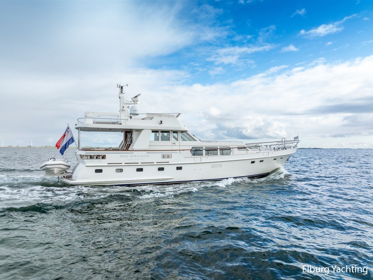 Deze Moonen 68 'Rio Grande' is gebouwd voor een zeer ervaren eigenaar uit de beroepsvaart. Tijdens de bouw is op verzoek van de eigenaar het schip geluidsarm gemaakt na een akoestisch onderzoek door Van Cappellen, hierdoor is het schip extra goed geïsoleerd en geluidsarm. De huidige en 3e eigenaar van de Rio Grande heeft in 2021 een flybridge laten vervaardigen waarmee er een prachtige extra zitgelegenheid is gecreëerd en een extra stuurstand met alle basis functies. De flybridge is ontworpen en gebouwd door Nederlandse gerenommeerde partijen in de scheepsbouw. Aan boord staan naast de 20 mappen van Moonen van de bouw en ook 2 nieuwe mappen waarin de refit en opbouw Flybridge goed is gedocumenteerd. Alle tekeningen en berekeningen zijn daarin opgenomen. Met de refit in 2021 zijn de o.a. de volgende werkzaamheden uitgevoerd: Gehele schip opnieuw gestoffeerd, matrassen vernieuwd, extra kinderbed aangebracht in SB voorhut, verlichting geheel vervangen voor LED verlichting, zonwering binnenzijde / jaloezieën aangebracht, AIS Class A & Navigatieapparatuur vervangen met PC Navigo, motorbediening en actuatoren vervangen (Aventics / Bosch / Rexroth), volledig nieuwe flybridge geplaatst met banken en windscherm, tweede stuurstand op flybridge geplaatst, extra tendersteunen aan achterzijde geplaatst voor Williams Sport 395 (niet inbegrepen), nieuwe keuken geplaatst in stuurhuis met koelkast/kookplaat/wasbak/kastruimte, keuken / dinette benedendeks gerefit, nieuwe tent rondom kuip, nieuwe zeilen en buitenzonwering, teakdekken waar nodig hersteld / gereinigd / geschuurd, potdeksels en houtwerk buitenzijde opnieuw gelakt, stabilisatoren gereviseerd, schroefassen en schroeven gebalanceerd, alle pompen voorzien van nieuwe rubbers, hydrofoor en pomp vernieuwd, watertank gereinigd.