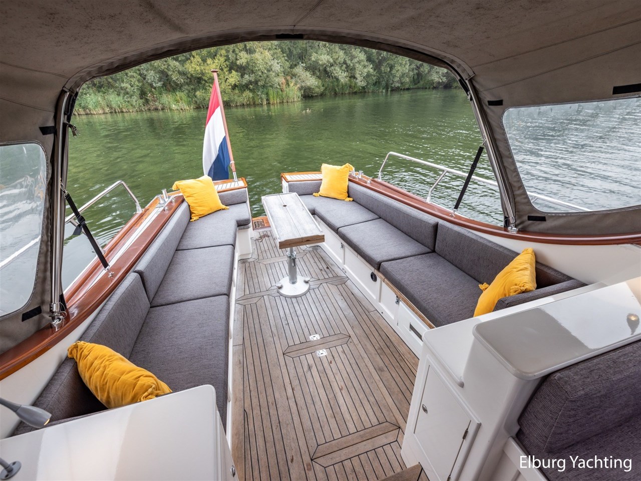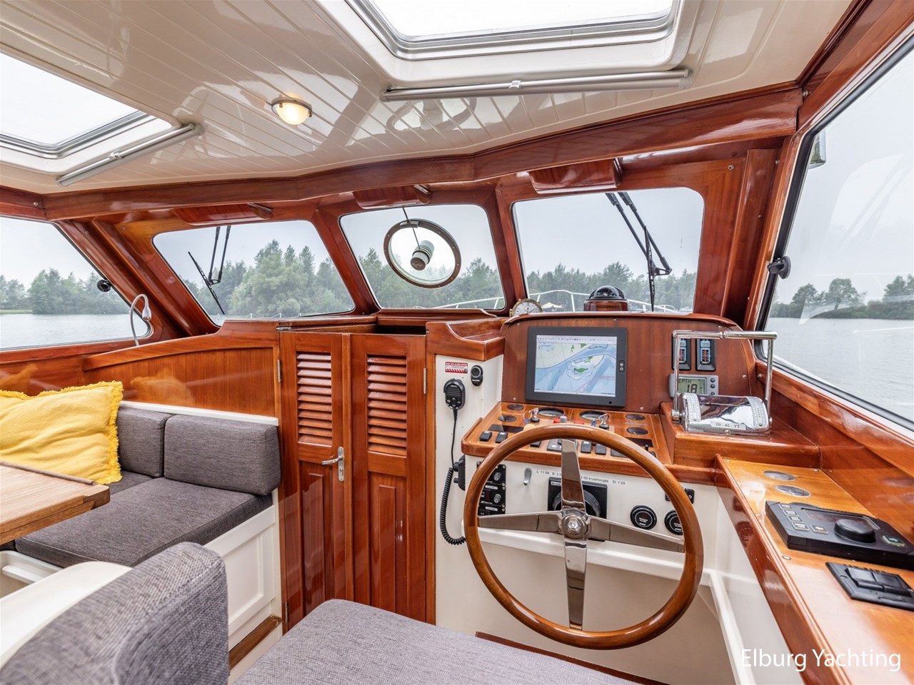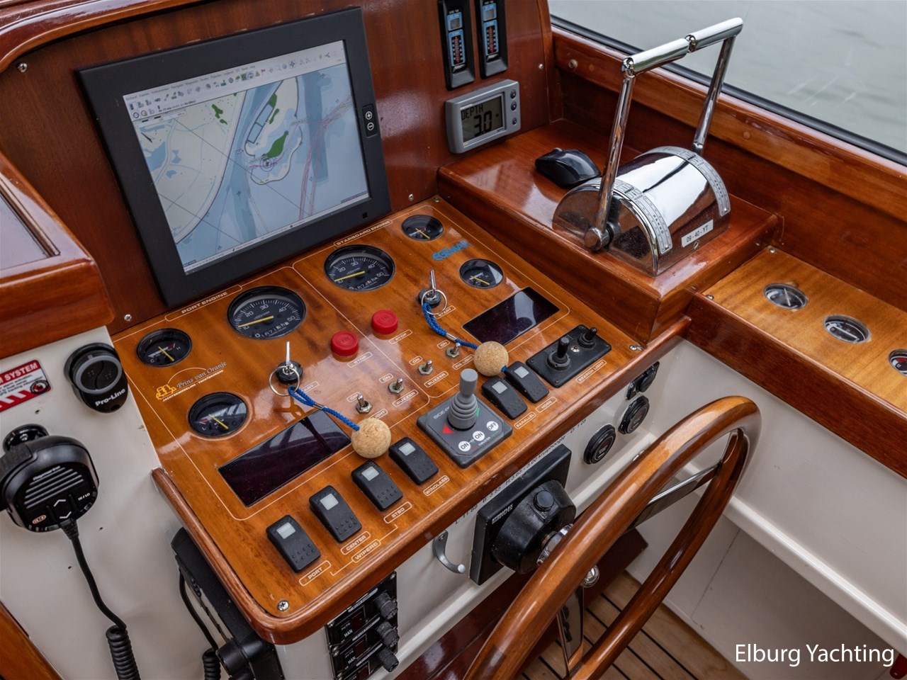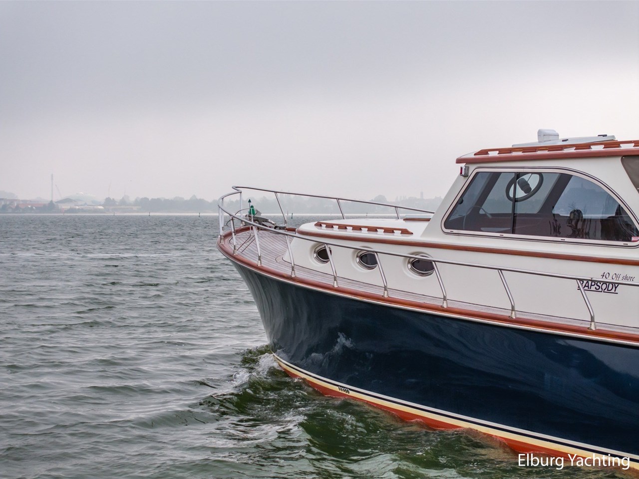 Uiterst fraaie Rapsody 40 Offshore uit bouwjaar 2002 - voorzien van een prachtig Teakdek met gelakte omlijsting en r.v.s. zeerailing. Het jacht beschikt over een prachtige klassieke lijn met moderne ingrediënten zoals de ruime open kuip en het frisse lichte interieur. Het jacht is rondom voorzien van een Teakdek en is afgewerkt met gelakt Teak (zowel de opbouw, het dek en het zwemplateau). De ruime kuip beschikt over een prettige zitgelegenheid, een ijskast en veel bergruimte onder de banken. De stuurstand met nabijgelegen dinette is gezellig gesitueerd onder het vaste dak. Het vaste dak beschikt over twee dakluiken en twee schuiframen aan de zijden. De stuurstand is overzichtelijk vormgegeven en beschikt over onder andere een functioneel Stentec navigatiesysteem, boegschroef, motorbediening en dieptemeter . Aan boord is de kombuis aan stuurboord gesitueerd met de tweede dinette aan bakboord. De kombuis is ruimtelijk georganiseerd met een Plastimo kooktoestel + oven, koelkast, spoelbak en veel kastruimte. Voorin is de eigenaarshut gesitueerd met nabijgelegen toilet en douche. De doorvaarthoogte is ca. 3.65 meter met een minimale kruiphoogte van ca. 2.70 meter. Voor vragen en/of het maken van een afspraak bent u 7 dagen per week van harte welkom bij Elburg Yachting.