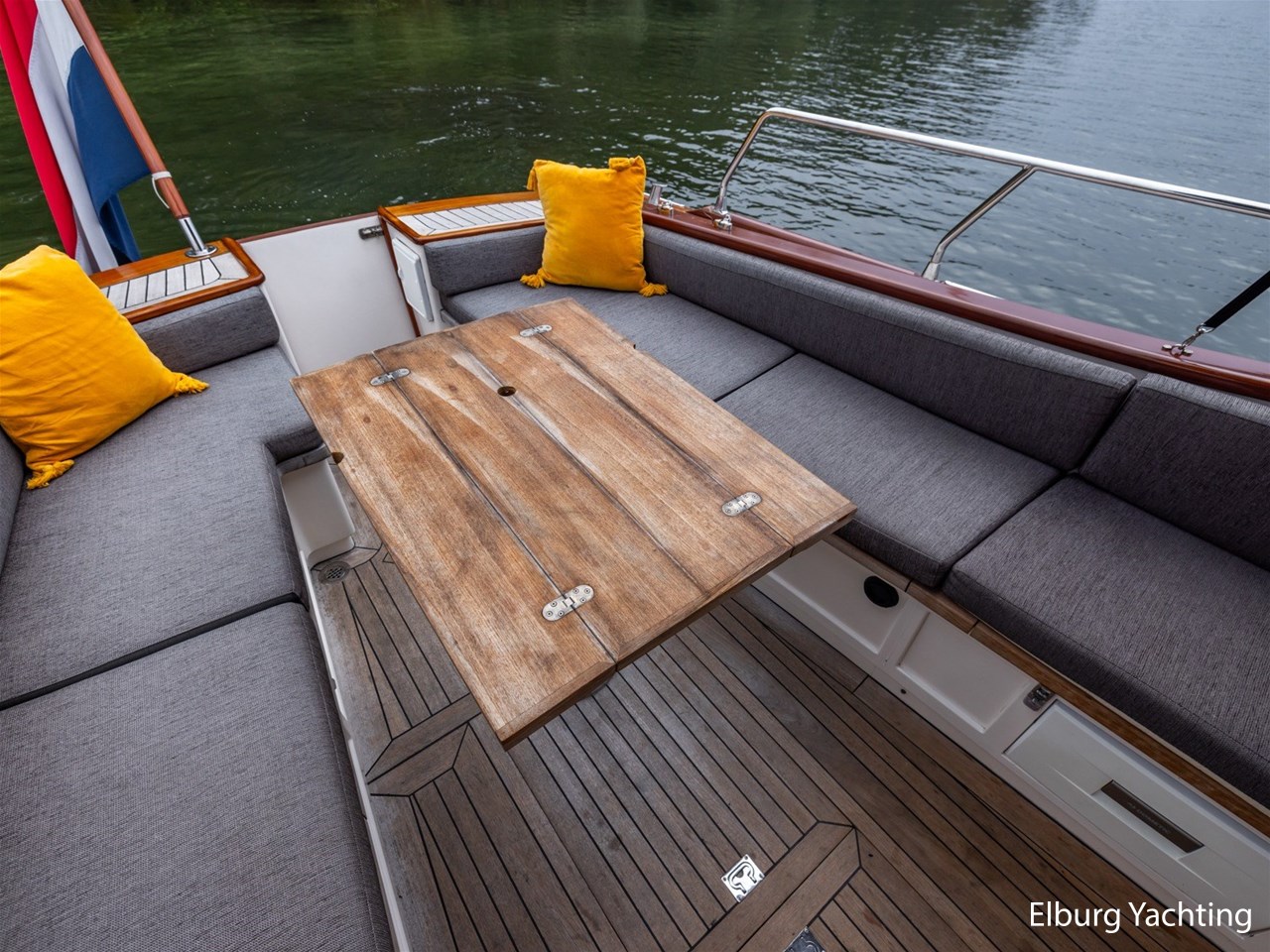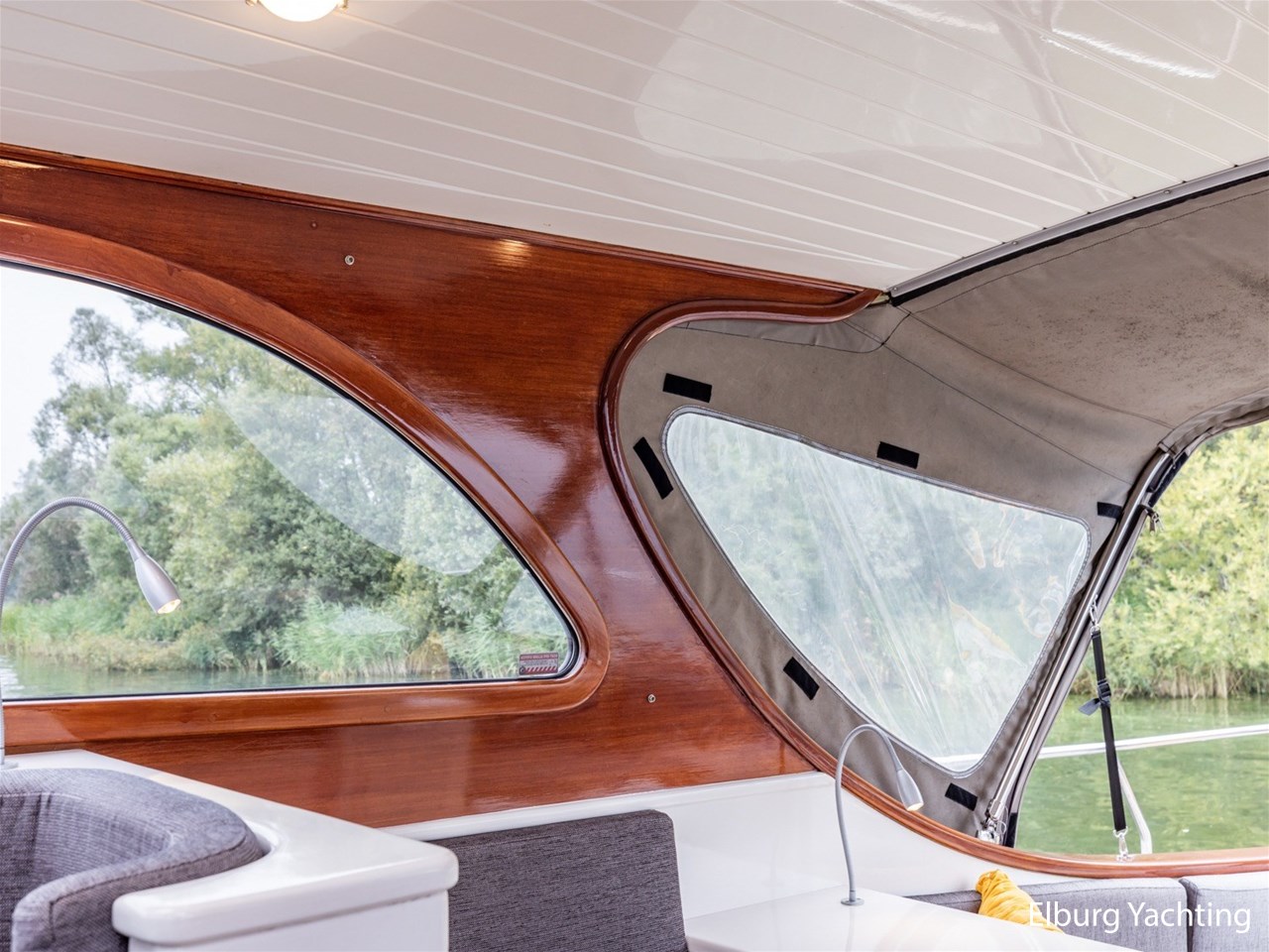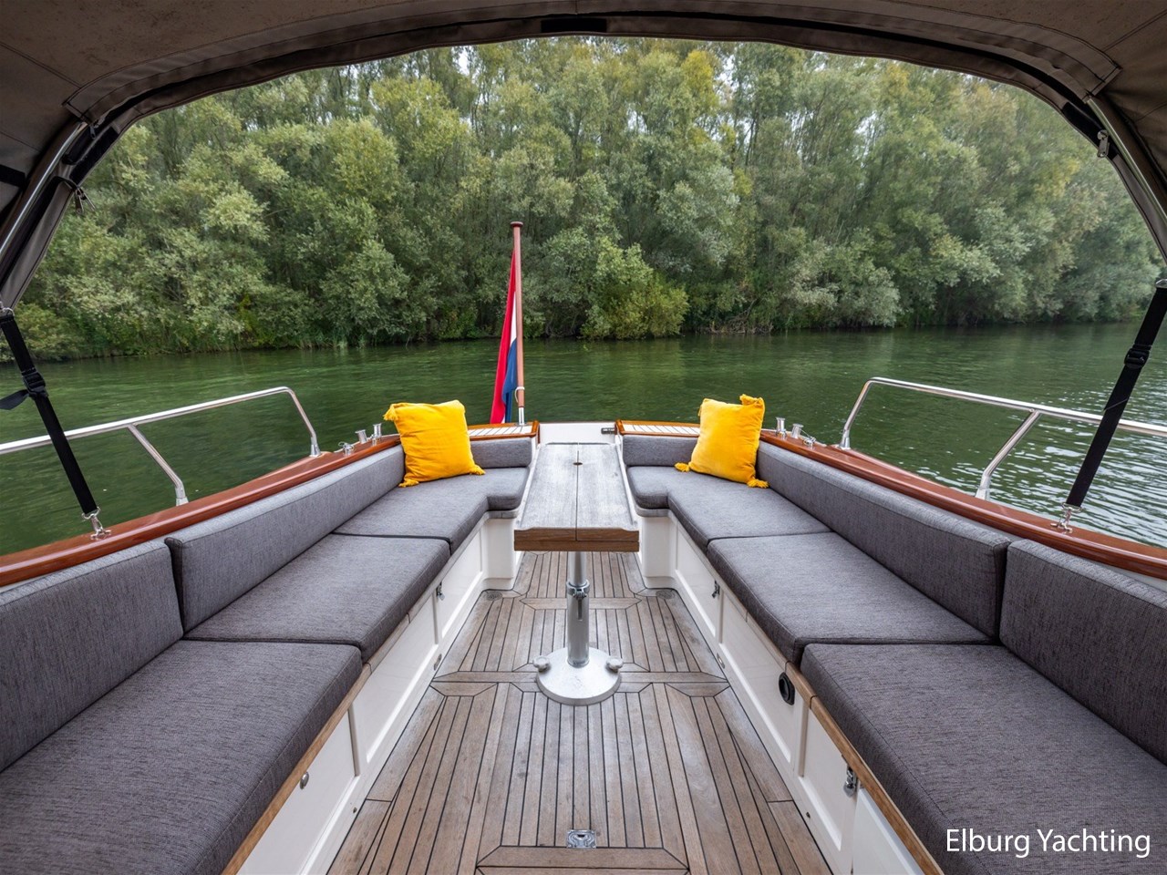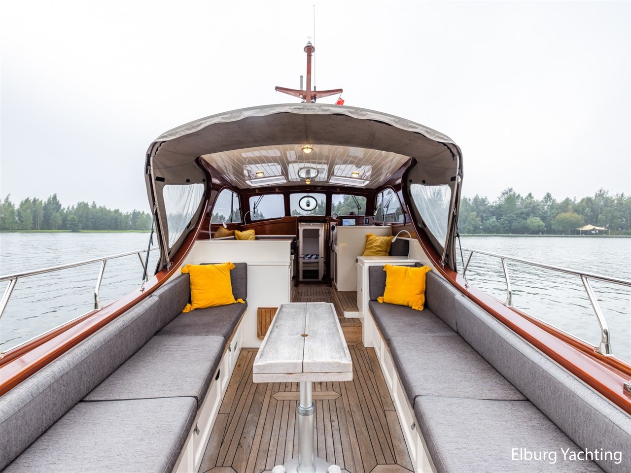 Uiterst fraaie Rapsody 40 Offshore uit bouwjaar 2002 - voorzien van een prachtig Teakdek met gelakte omlijsting en r.v.s. zeerailing. Het jacht beschikt over een prachtige klassieke lijn met moderne ingrediënten zoals de ruime open kuip en het frisse lichte interieur. Het jacht is rondom voorzien van een Teakdek en is afgewerkt met gelakt Teak (zowel de opbouw, het dek en het zwemplateau). De ruime kuip beschikt over een prettige zitgelegenheid, een ijskast en veel bergruimte onder de banken. De stuurstand met nabijgelegen dinette is gezellig gesitueerd onder het vaste dak. Het vaste dak beschikt over twee dakluiken en twee schuiframen aan de zijden. De stuurstand is overzichtelijk vormgegeven en beschikt over onder andere een functioneel Stentec navigatiesysteem, boegschroef, motorbediening en dieptemeter . Aan boord is de kombuis aan stuurboord gesitueerd met de tweede dinette aan bakboord. De kombuis is ruimtelijk georganiseerd met een Plastimo kooktoestel + oven, koelkast, spoelbak en veel kastruimte. Voorin is de eigenaarshut gesitueerd met nabijgelegen toilet en douche. De doorvaarthoogte is ca. 3.65 meter met een minimale kruiphoogte van ca. 2.70 meter. Voor vragen en/of het maken van een afspraak bent u 7 dagen per week van harte welkom bij Elburg Yachting.