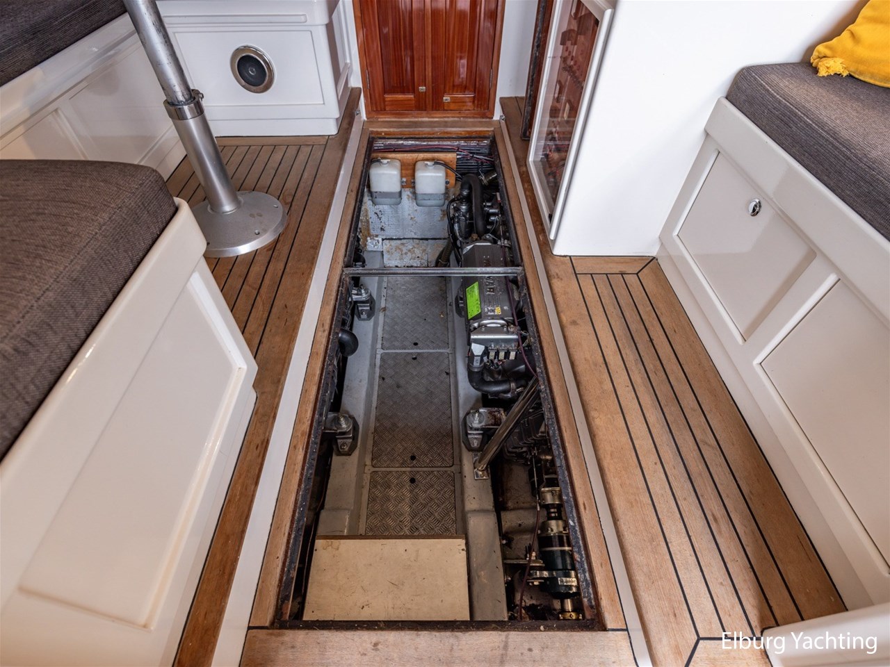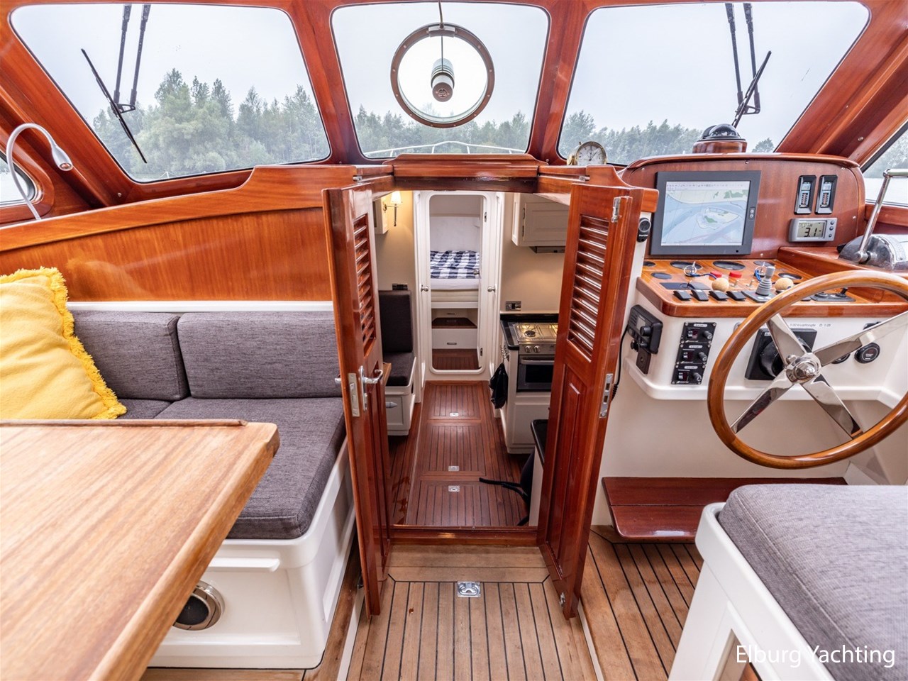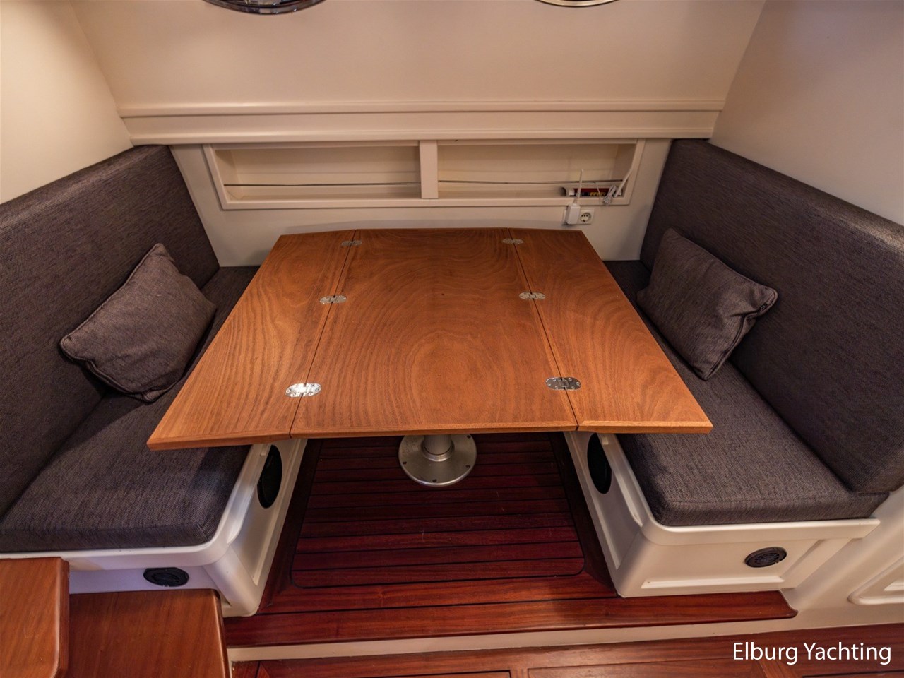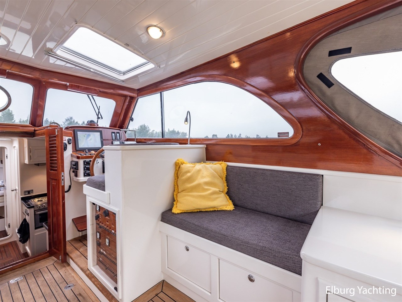 Uiterst fraaie Rapsody 40 Offshore uit bouwjaar 2002 - voorzien van een prachtig Teakdek met gelakte omlijsting en r.v.s. zeerailing. Het jacht beschikt over een prachtige klassieke lijn met moderne ingrediënten zoals de ruime open kuip en het frisse lichte interieur. Het jacht is rondom voorzien van een Teakdek en is afgewerkt met gelakt Teak (zowel de opbouw, het dek en het zwemplateau). De ruime kuip beschikt over een prettige zitgelegenheid, een ijskast en veel bergruimte onder de banken. De stuurstand met nabijgelegen dinette is gezellig gesitueerd onder het vaste dak. Het vaste dak beschikt over twee dakluiken en twee schuiframen aan de zijden. De stuurstand is overzichtelijk vormgegeven en beschikt over onder andere een functioneel Stentec navigatiesysteem, boegschroef, motorbediening en dieptemeter . Aan boord is de kombuis aan stuurboord gesitueerd met de tweede dinette aan bakboord. De kombuis is ruimtelijk georganiseerd met een Plastimo kooktoestel + oven, koelkast, spoelbak en veel kastruimte. Voorin is de eigenaarshut gesitueerd met nabijgelegen toilet en douche. De doorvaarthoogte is ca. 3.65 meter met een minimale kruiphoogte van ca. 2.70 meter. Voor vragen en/of het maken van een afspraak bent u 7 dagen per week van harte welkom bij Elburg Yachting.