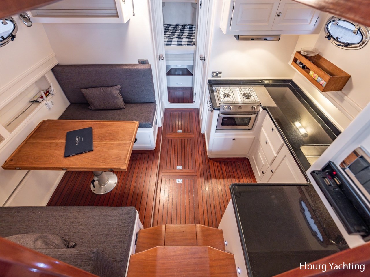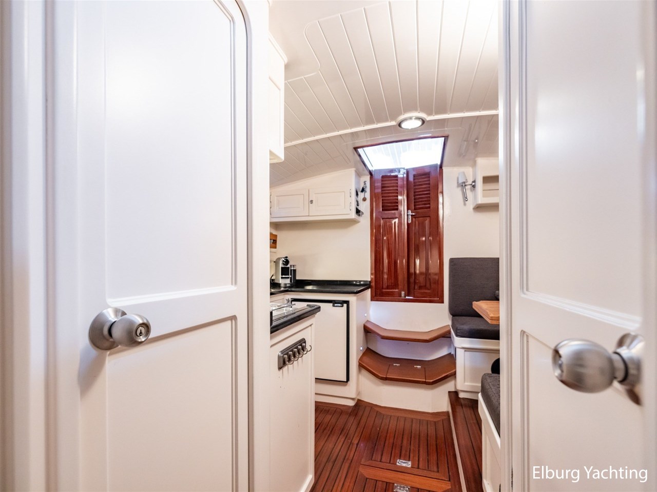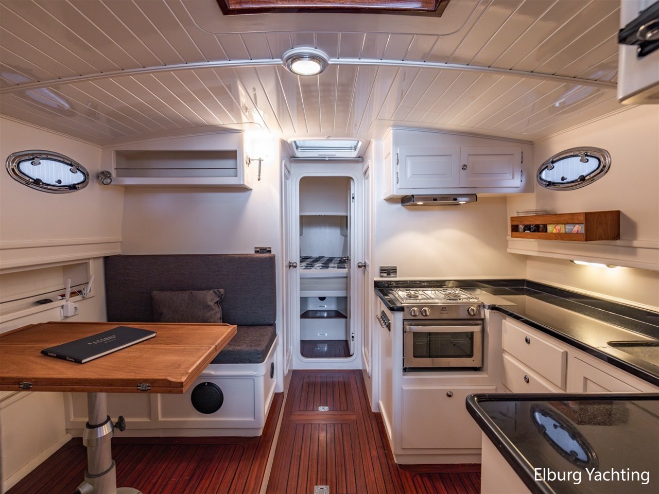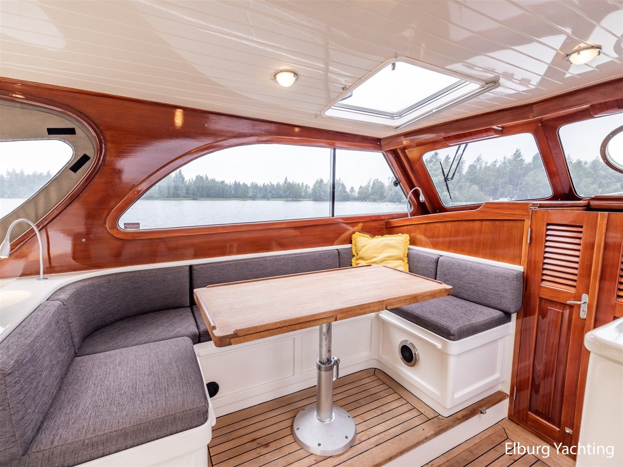 Uiterst fraaie Rapsody 40 Offshore uit bouwjaar 2002 - voorzien van een prachtig Teakdek met gelakte omlijsting en r.v.s. zeerailing. Het jacht beschikt over een prachtige klassieke lijn met moderne ingrediënten zoals de ruime open kuip en het frisse lichte interieur. Het jacht is rondom voorzien van een Teakdek en is afgewerkt met gelakt Teak (zowel de opbouw, het dek en het zwemplateau). De ruime kuip beschikt over een prettige zitgelegenheid, een ijskast en veel bergruimte onder de banken. De stuurstand met nabijgelegen dinette is gezellig gesitueerd onder het vaste dak. Het vaste dak beschikt over twee dakluiken en twee schuiframen aan de zijden. De stuurstand is overzichtelijk vormgegeven en beschikt over onder andere een functioneel Stentec navigatiesysteem, boegschroef, motorbediening en dieptemeter . Aan boord is de kombuis aan stuurboord gesitueerd met de tweede dinette aan bakboord. De kombuis is ruimtelijk georganiseerd met een Plastimo kooktoestel + oven, koelkast, spoelbak en veel kastruimte. Voorin is de eigenaarshut gesitueerd met nabijgelegen toilet en douche. De doorvaarthoogte is ca. 3.65 meter met een minimale kruiphoogte van ca. 2.70 meter. Voor vragen en/of het maken van een afspraak bent u 7 dagen per week van harte welkom bij Elburg Yachting.