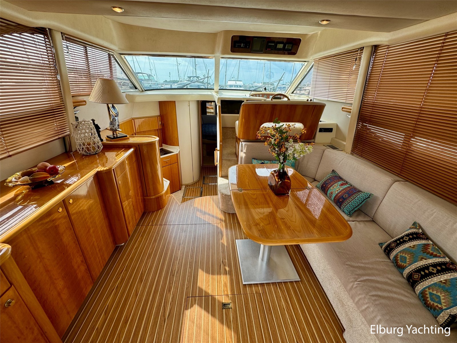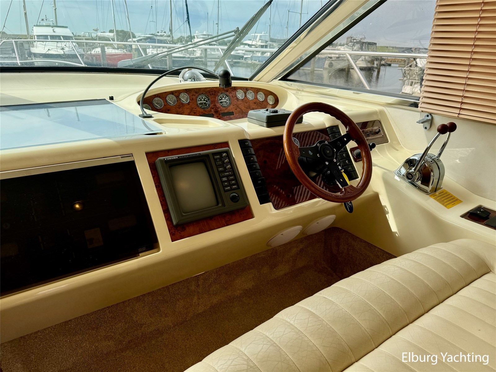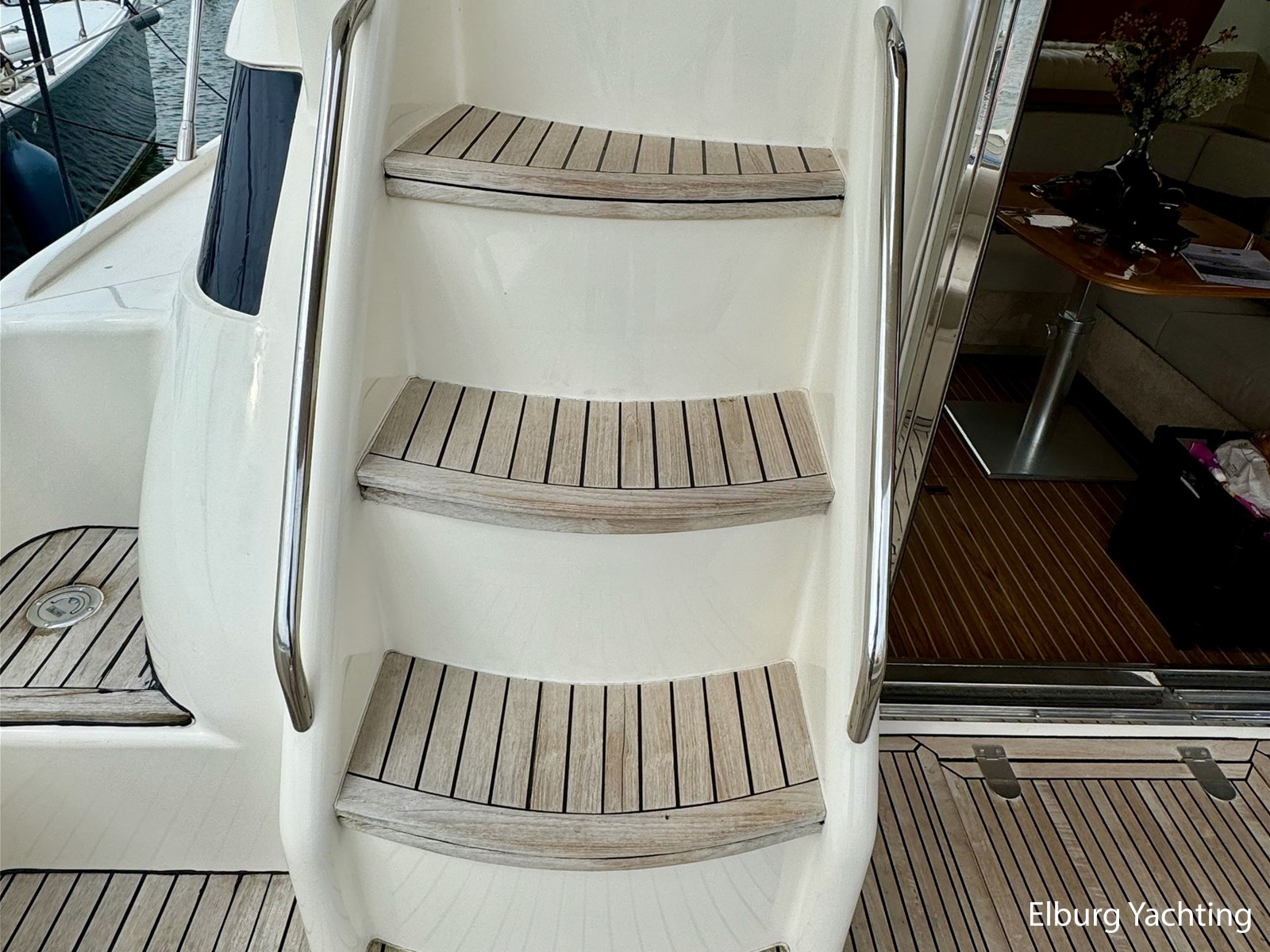 Het jacht heeft een luie trap naar de flybridge, salon, open kuip en zwemplateau gelijkvloers, biminitop op flybridge, nieuwe stoffering in 2024, nieuwe teaklook vloer in de salon, RVS reling rondom, meevaarbank bij stuurstand, RVS stootstrip rondom, de romp is gepolijst in 2024, antifouling 2024, , er is met zorg met het schip omgegaan.