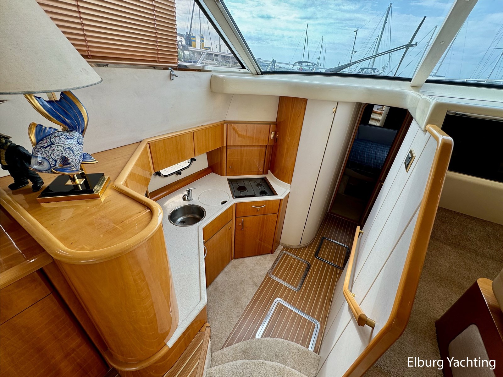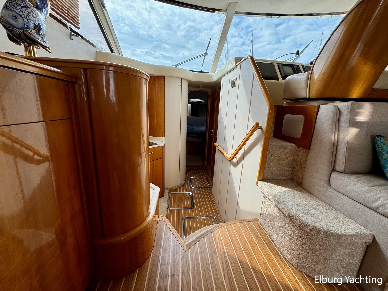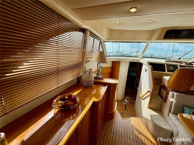 Het jacht heeft een luie trap naar de flybridge, salon, open kuip en zwemplateau gelijkvloers, biminitop op flybridge, nieuwe stoffering in 2024, nieuwe teaklook vloer in de salon, RVS reling rondom, meevaarbank bij stuurstand, RVS stootstrip rondom, de romp is gepolijst in 2024, antifouling 2024, , er is met zorg met het schip omgegaan.