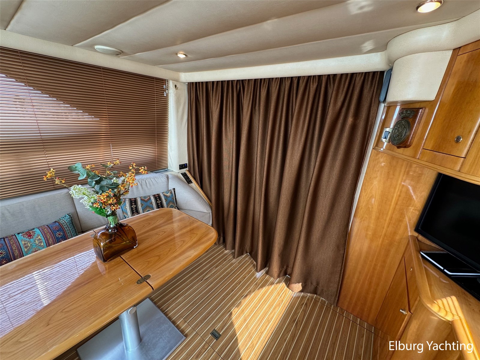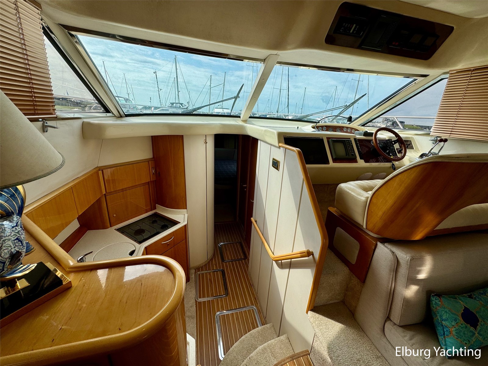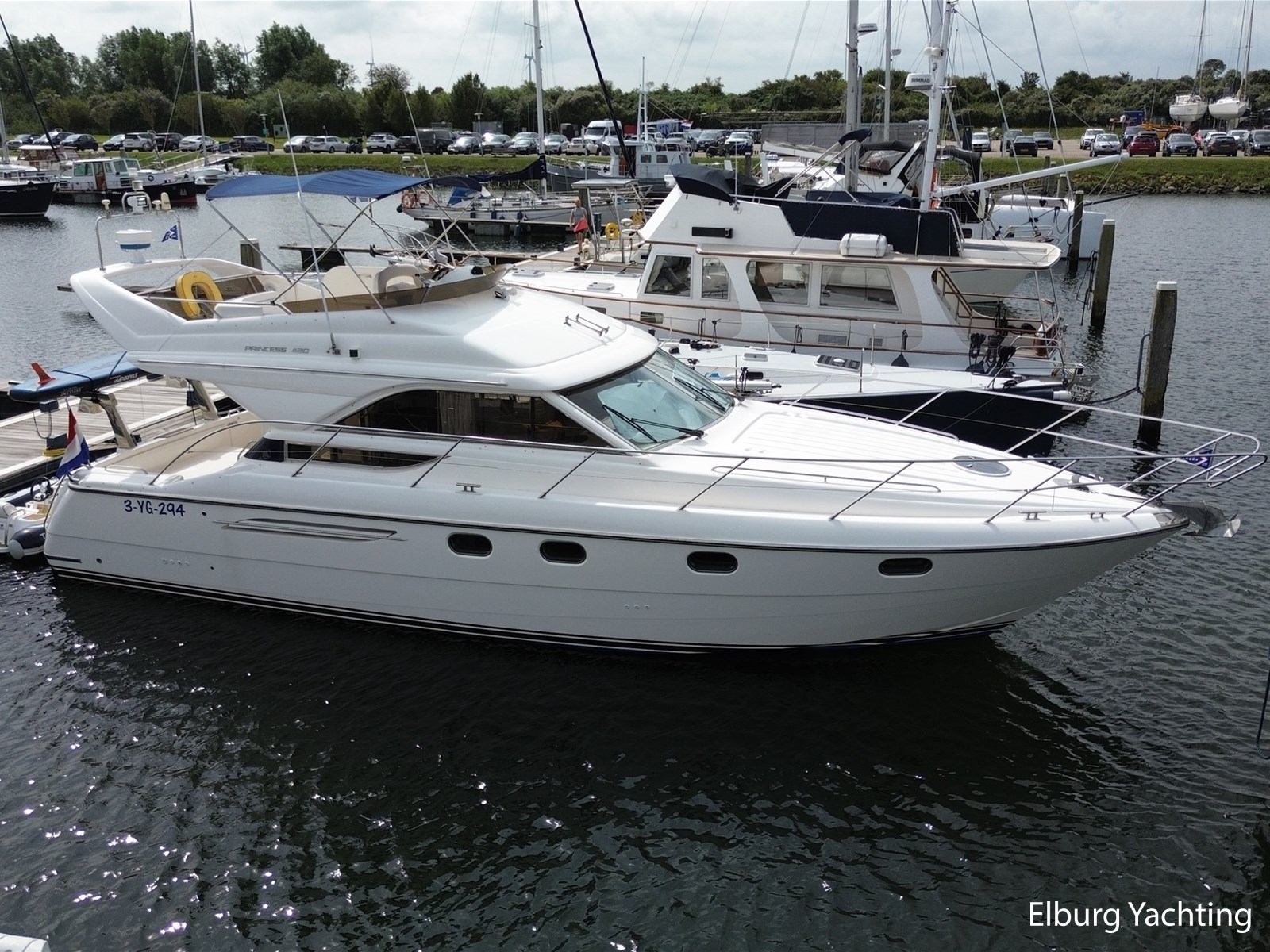 De Princess 420 is een sportief gelijnd, polyester jacht met flybridge. Het jacht beschikt over 2 hutten. Eigenaarshut met een 2 pers. bed, guestcabin heeft 2 x 1 pers. bed. Het jacht heeft een moderne uitstraling met hoogglans kersenhouten interieur.