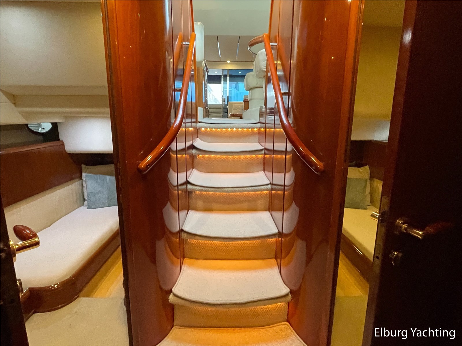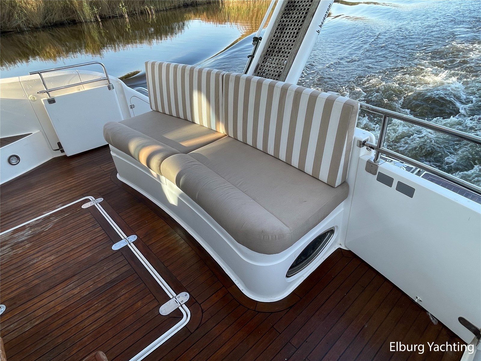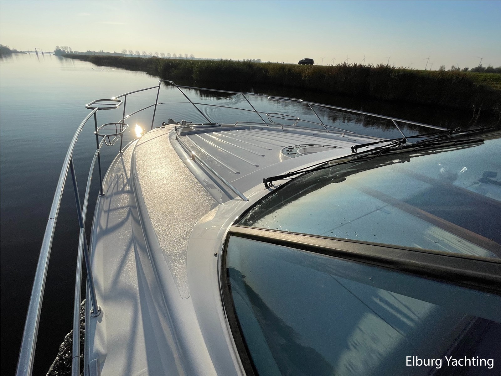 Deze snelvarende Fairline Squadron 55 biedt veel comfort en leefruimte met drie volwaardige 2-persoons vertrekken + 1 x crew. Het jacht beschikt o.a. over: Volledig afsluitbare achtertent, volledige cover over flybridge + losse covers voor bank en tafel, grote r.v.s. schuifdeur met toegang tot de salon, modern hoogglans kersenhouten interieur, 2 ruime zitbanken in de salon, utility room incl. wasmachine en koelkast, zowel binnen- als buitentrap naar flybridge, kussens voor bank op het achterdek, bekleding flybridge (2024), crew cabin met eigen slaapplaats (1 x 2 pers.) en toilet voorziening, groot opbergluik in open kuip, toegang tot machinekamer vanuit utility room en salon, Besenzoni hydraulische gangway tevens als bijboot lift te gebruiken, trim tabs, r.v.s. reling rondom, BB zijdeur in opbouw, 3 x dubbel armige ruitenwisser, volledige biminitop over flybridge, vlucht/ventilatie luiken met muggenhorren, dekwaspomp met aansluiting voor- en achterop,