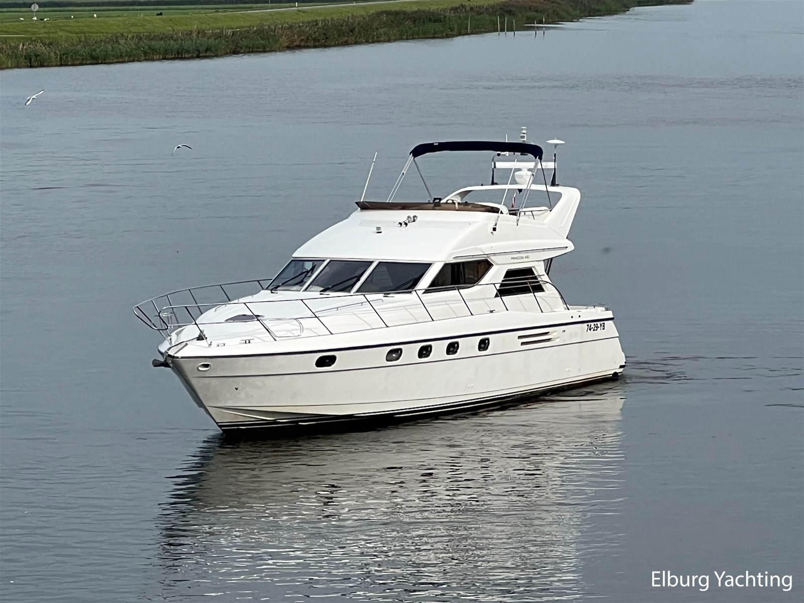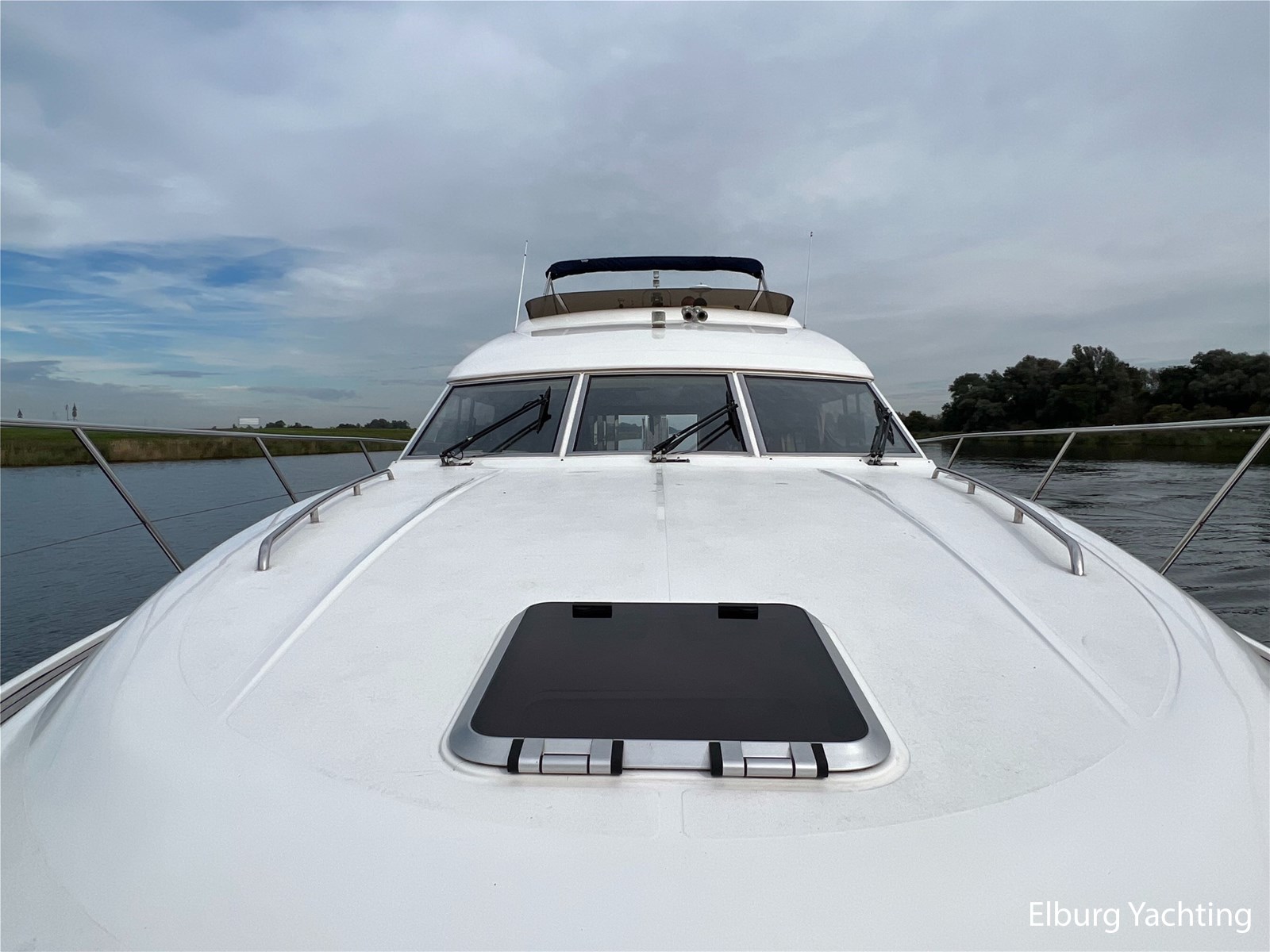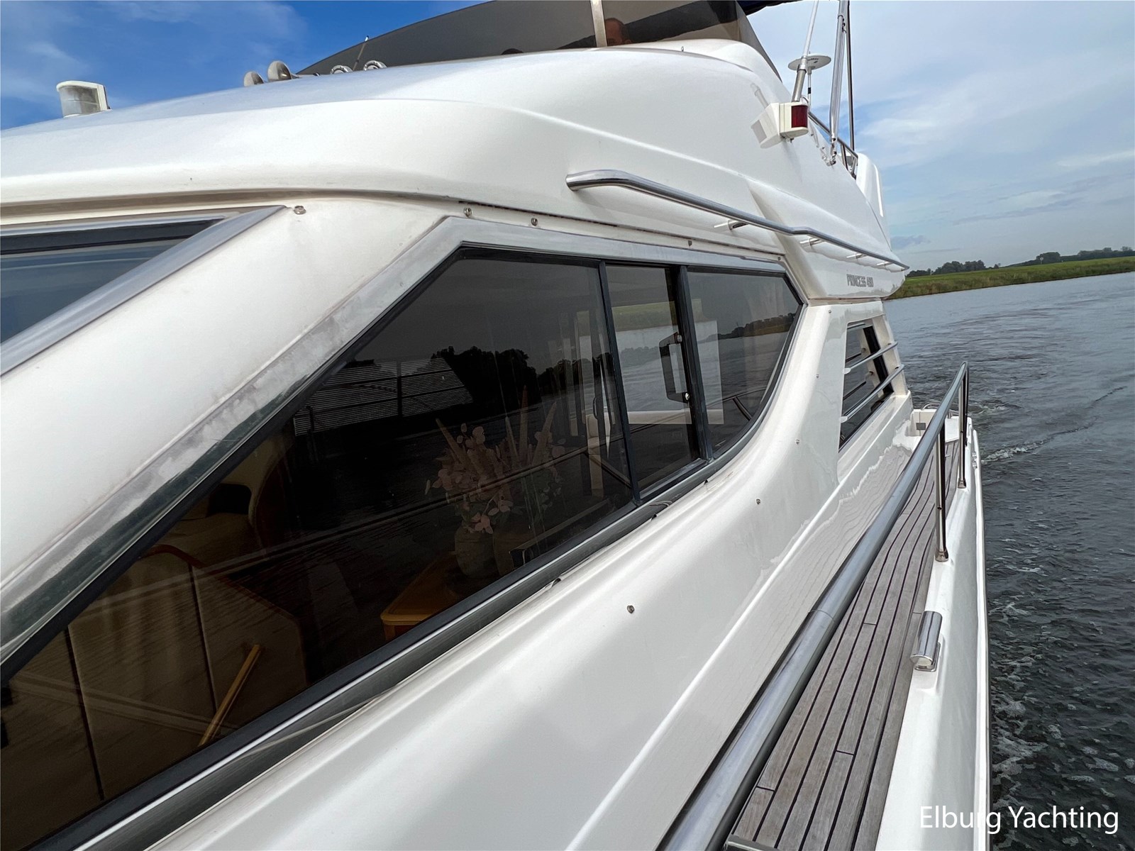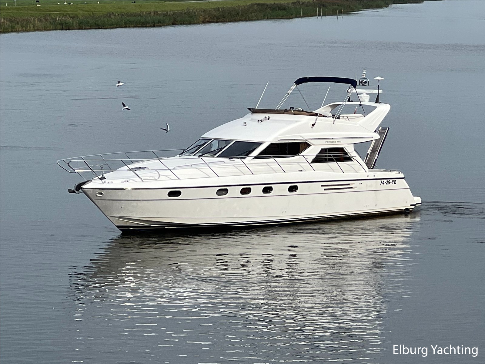 Prachtige Princess 480 Flybridge welke voorzien is van een zeer open en lichte salon / dinette indeling, twee comfortabele hutten en een ruime bering in het achterschip. Beide hutten hebben een 2-persoons bed met allebei toegang tot een eigen douche/toilet ruimte. Deze Princess 480 is uitgevoerd met: Vaste zitbank in open kuip met bijbehorende buitenkussens, de open kuip en salon gelijkvloers beloopbaar, r.v.s. schuifdeur naar salon, "luie" vaste trap naar flybridge, zonnebed op voordek, 2-persoons vaarbank op flybridge, trim tabs, volledige afsluitbare tent rondom kuip met uitristbare delen, r.v.s. buitenreling rondom, 2 x schuifraam in salon, biminitop op flybridge met afdekhoes 2024, buitendouche, ijsblokjesmachine, deur in spiegel naar zwemplatform, toegang machinekamer vanuit de open kuip en via salonvloer, zonneschermen rondom salonramen 2023, gordijnen in de salon vernieuwd in 2023. De verstuivers van de motoren zijn in 2024 gereviseerd, nieuwe antifouling + anode's 2024, nieuwe wasmachine 2024, nieuwe Eberspächer kachel 2024, nieuwe achtertent 2024, nieuwe biminihoes 2024 en zijn in 2023 beide dieseltanks gereinigd.