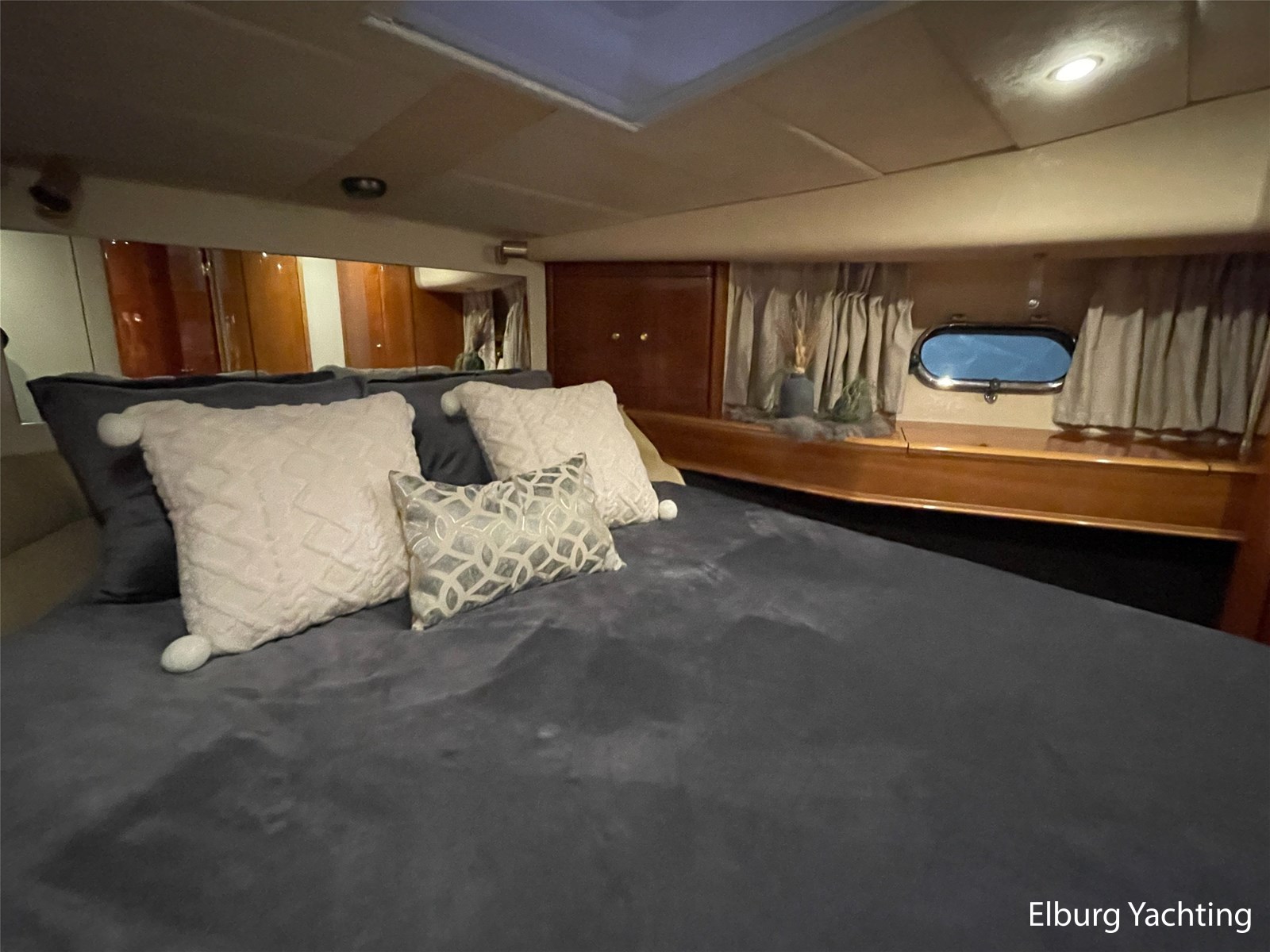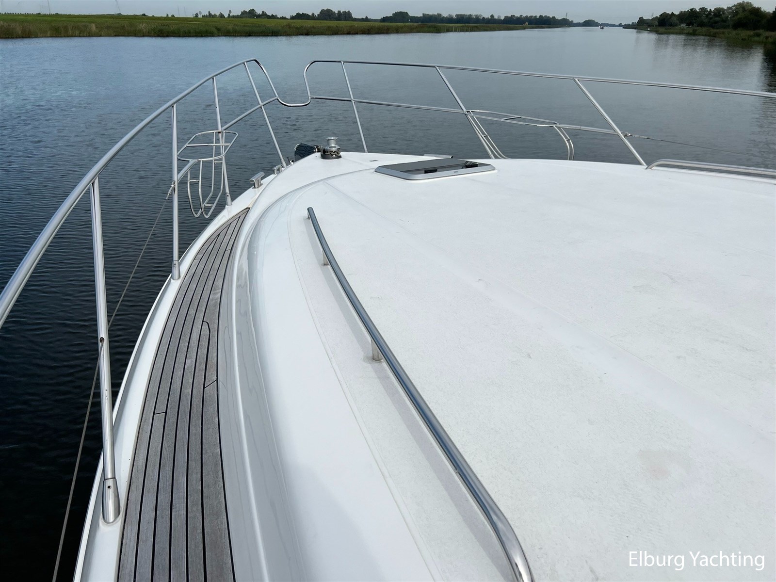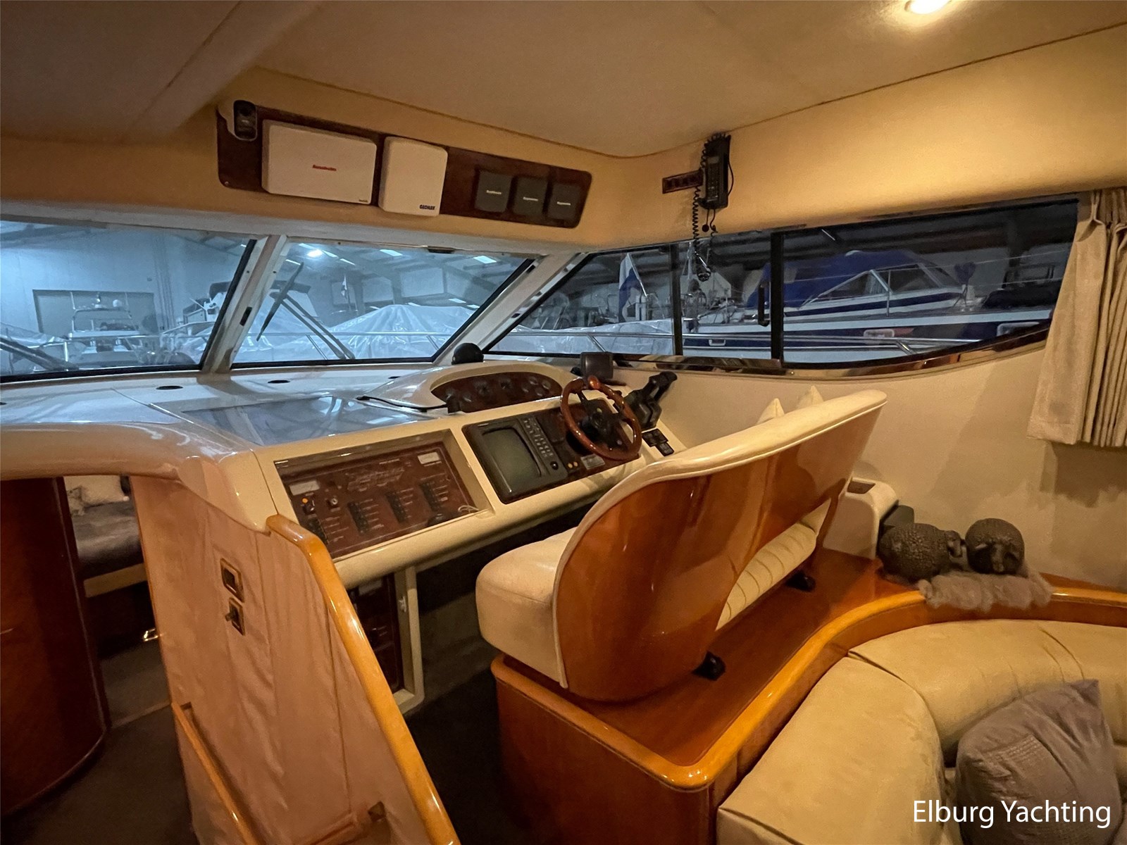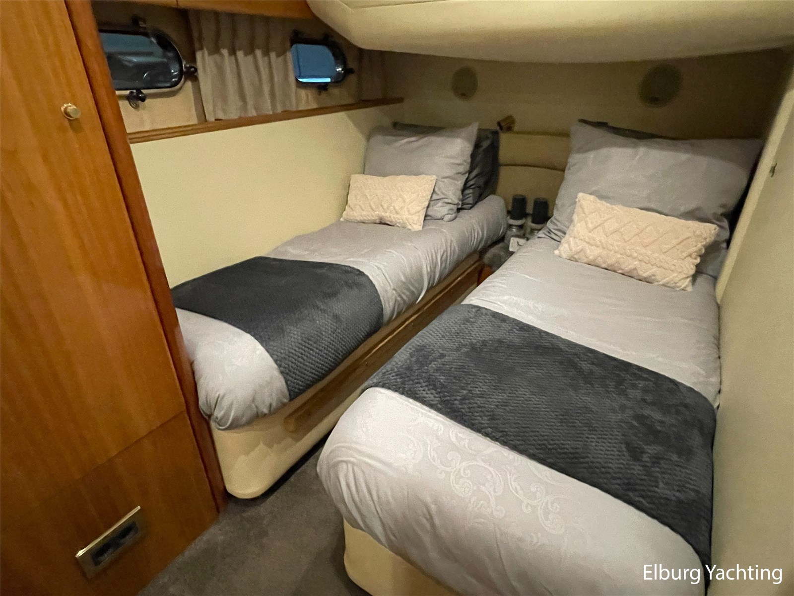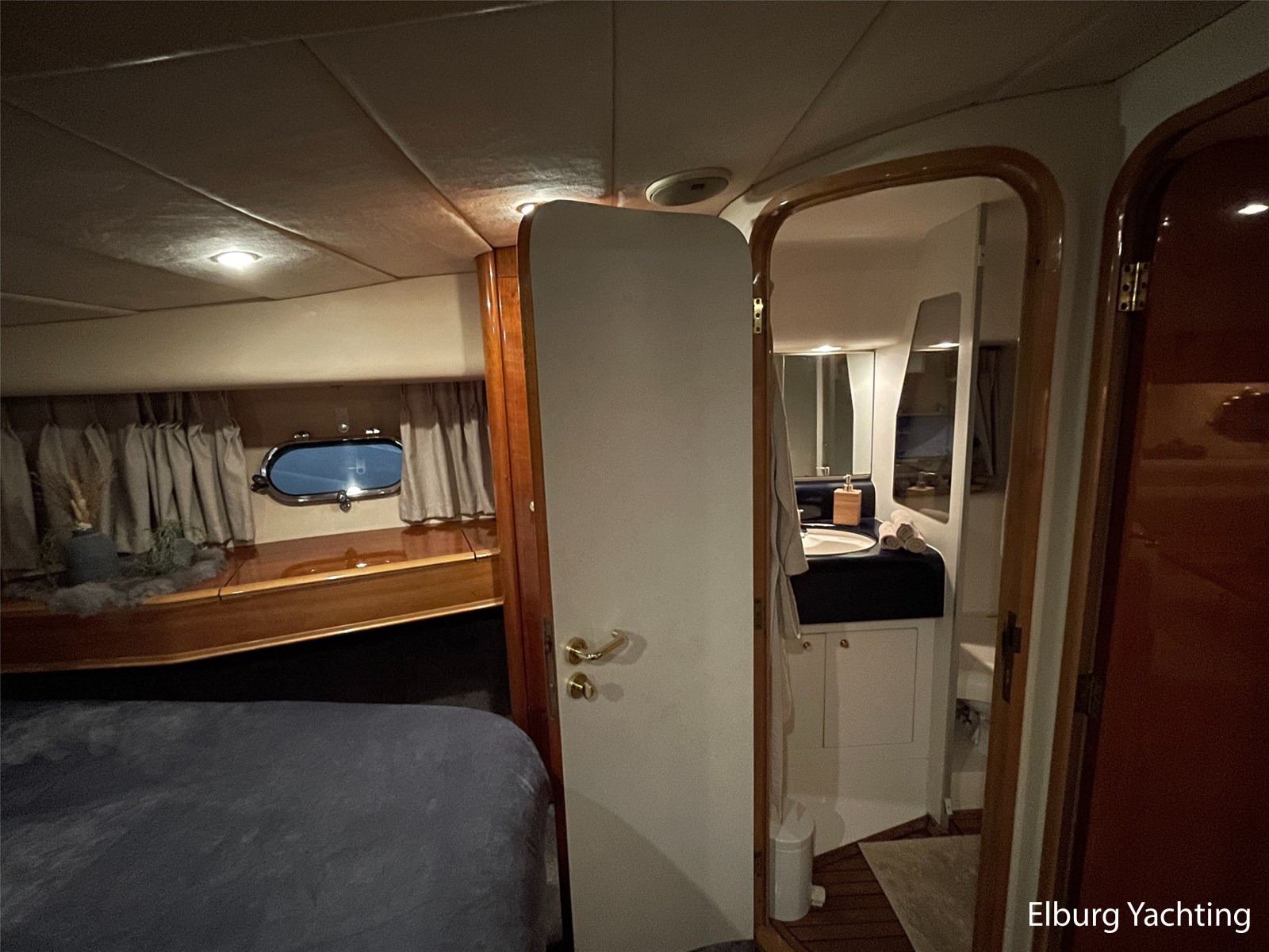 Prachtige Princess 480 Flybridge welke voorzien is van een zeer open en lichte salon / dinette indeling, twee comfortabele hutten en een ruime bering in het achterschip. Beide hutten hebben een 2-persoons bed met allebei toegang tot een eigen douche/toilet ruimte. Deze Princess 480 is uitgevoerd met: Vaste zitbank in open kuip met bijbehorende buitenkussens, de open kuip en salon gelijkvloers beloopbaar, r.v.s. schuifdeur naar salon, "luie" vaste trap naar flybridge, zonnebed op voordek, 2-persoons vaarbank op flybridge, trim tabs, volledige afsluitbare tent rondom kuip met uitristbare delen, r.v.s. buitenreling rondom, 2 x schuifraam in salon, biminitop op flybridge met afdekhoes 2024, buitendouche, ijsblokjesmachine, deur in spiegel naar zwemplatform, toegang machinekamer vanuit de open kuip en via salonvloer, zonneschermen rondom salonramen 2023, gordijnen in de salon vernieuwd in 2023. De verstuivers van de motoren zijn in 2024 gereviseerd, nieuwe antifouling + anode's 2024, nieuwe wasmachine 2024, nieuwe Eberspächer kachel 2024, nieuwe achtertent 2024, nieuwe biminihoes 2024 en zijn in 2023 beide dieseltanks gereinigd.
