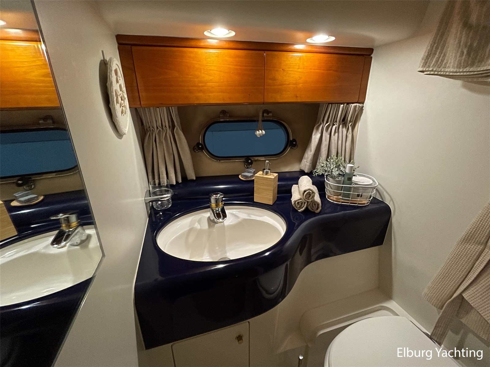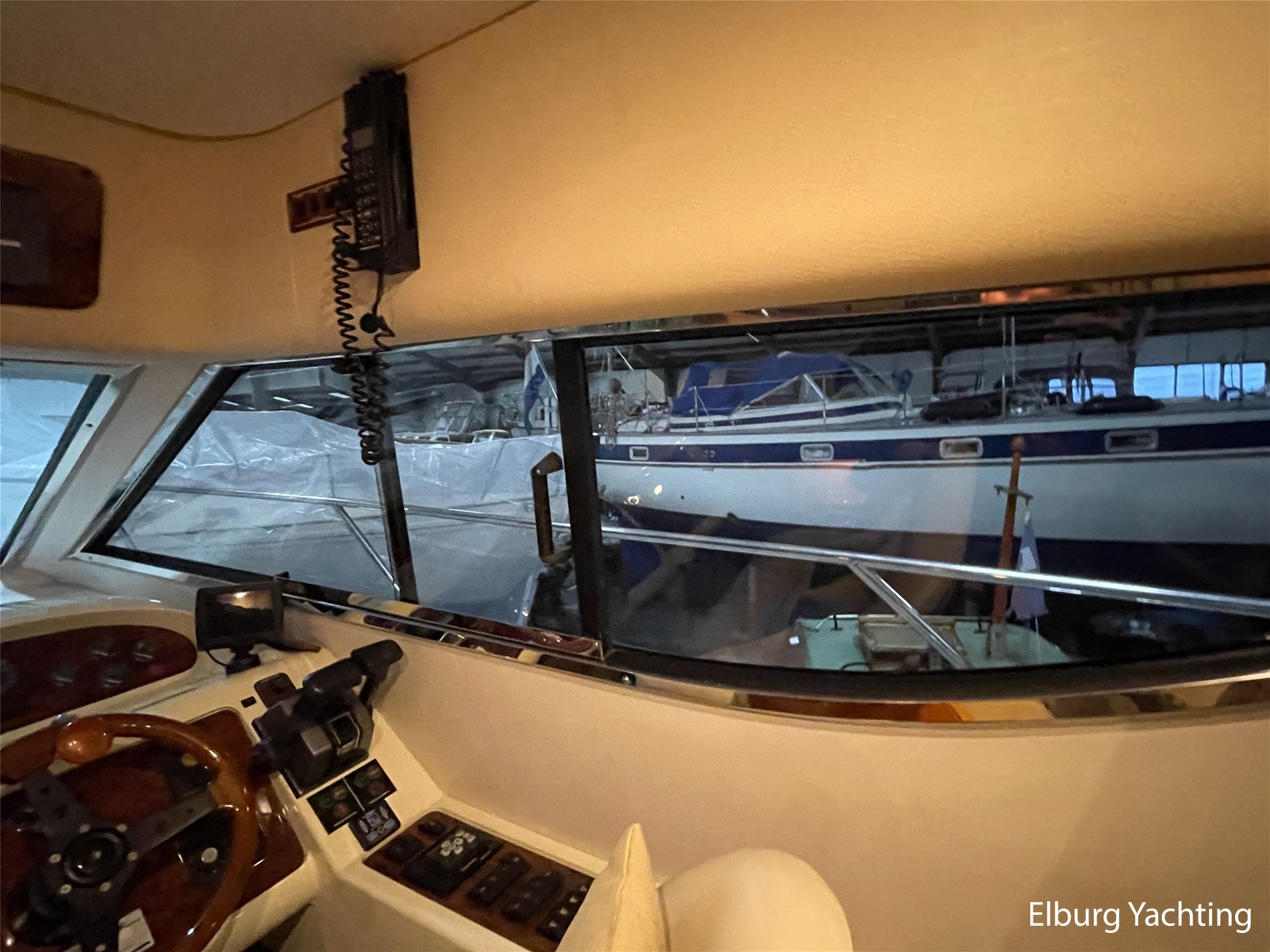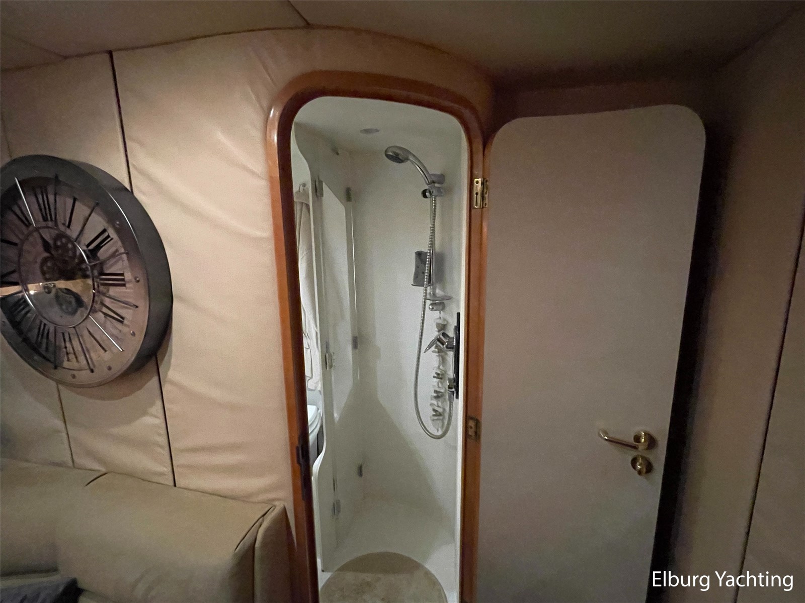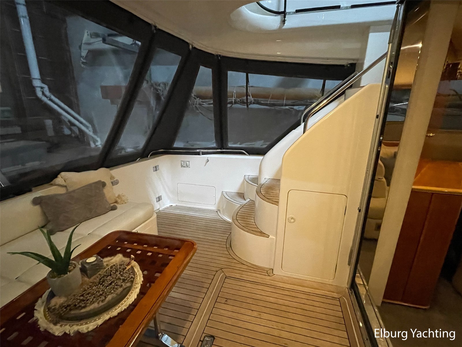 Prachtige Princess 480 Flybridge welke voorzien is van een zeer open en lichte salon / dinette indeling, twee comfortabele hutten en een ruime bering in het achterschip. Beide hutten hebben een 2-persoons bed met allebei toegang tot een eigen douche/toilet ruimte. Deze Princess 480 is uitgevoerd met: Vaste zitbank in open kuip met bijbehorende buitenkussens, de open kuip en salon gelijkvloers beloopbaar, r.v.s. schuifdeur naar salon, "luie" vaste trap naar flybridge, zonnebed op voordek, 2-persoons vaarbank op flybridge, trim tabs, volledige afsluitbare tent rondom kuip met uitristbare delen, r.v.s. buitenreling rondom, 2 x schuifraam in salon, biminitop op flybridge met afdekhoes 2024, buitendouche, ijsblokjesmachine, deur in spiegel naar zwemplatform, toegang machinekamer vanuit de open kuip en via salonvloer, zonneschermen rondom salonramen 2023, gordijnen in de salon vernieuwd in 2023. De verstuivers van de motoren zijn in 2024 gereviseerd, nieuwe antifouling + anode's 2024, nieuwe wasmachine 2024, nieuwe Eberspächer kachel 2024, nieuwe achtertent 2024, nieuwe biminihoes 2024 en zijn in 2023 beide dieseltanks gereinigd.