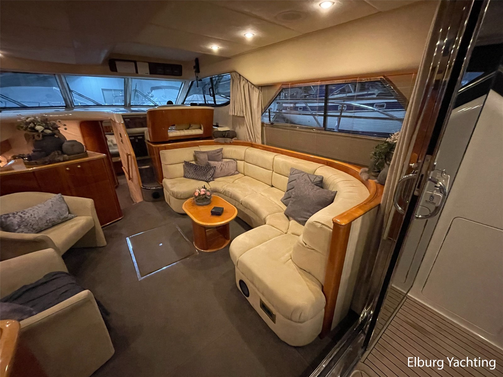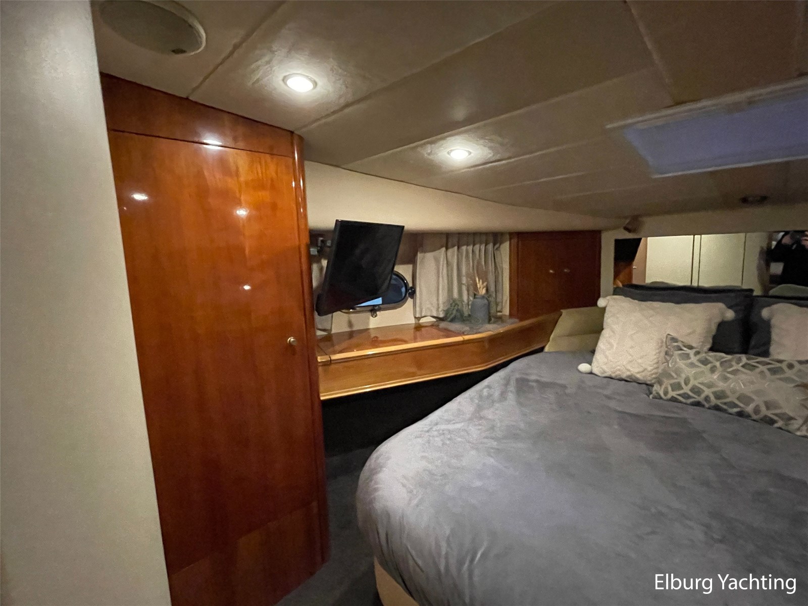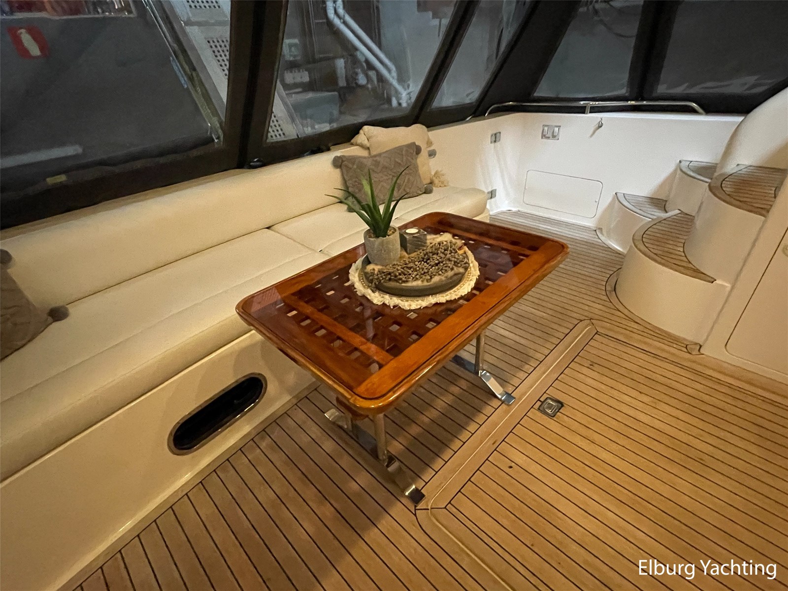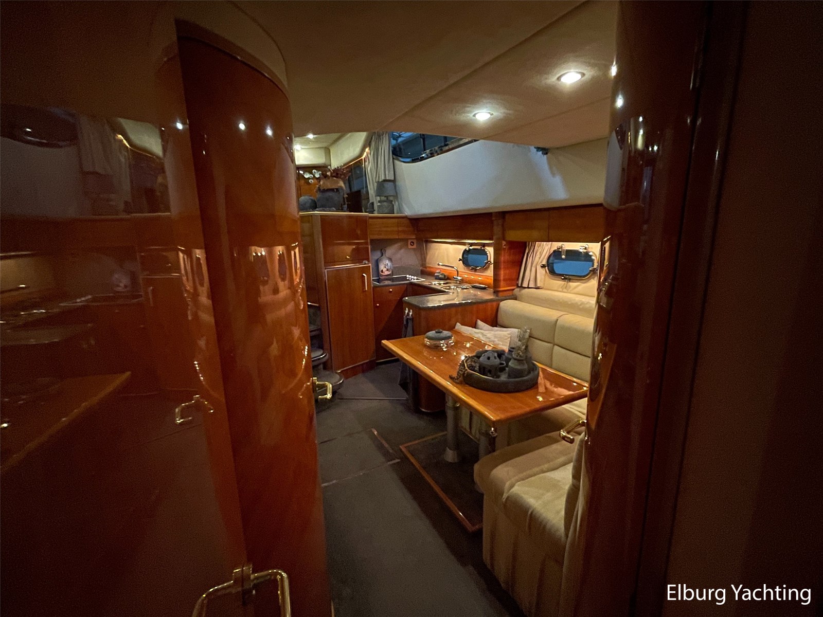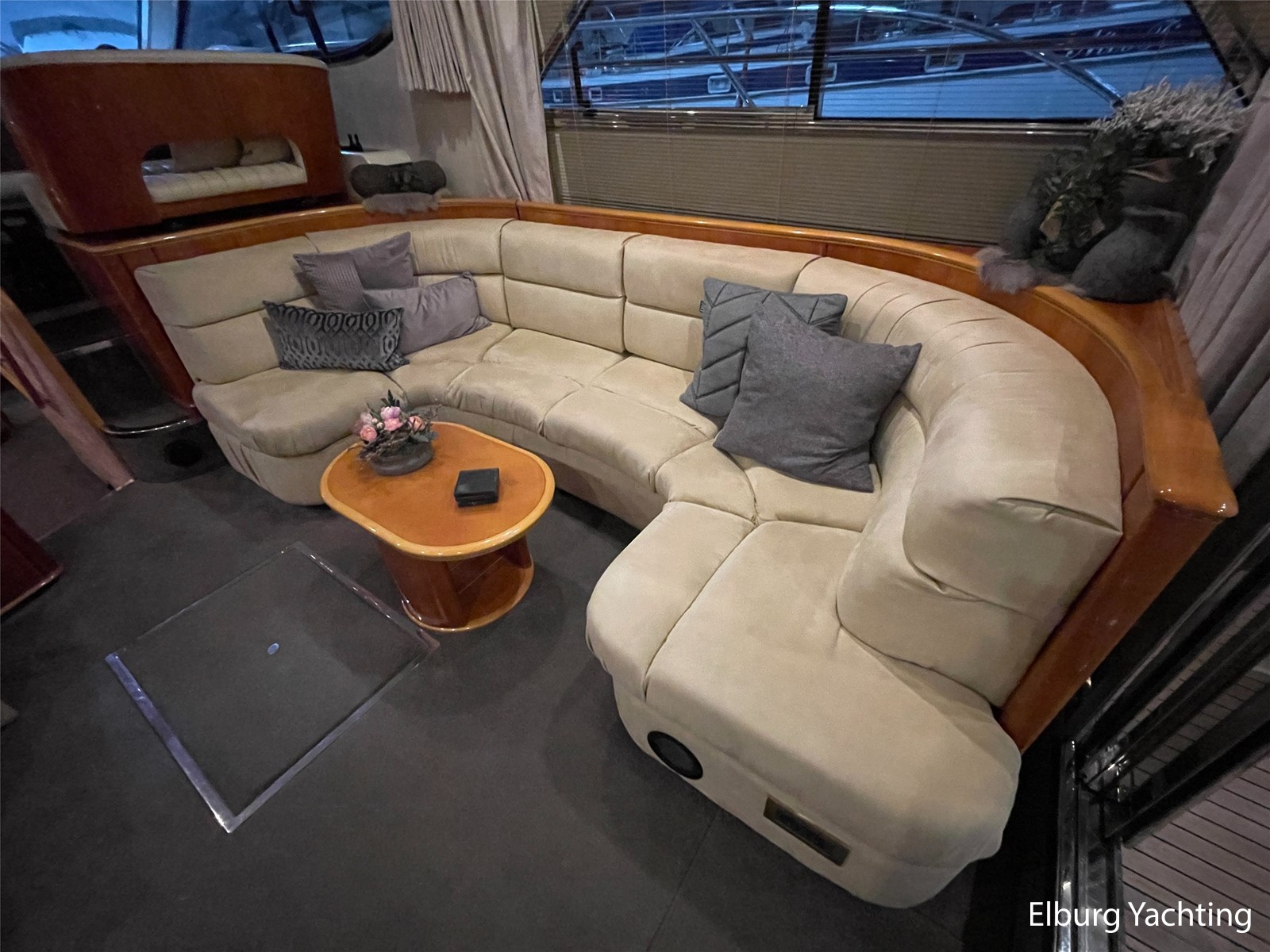 Prachtige Princess 480 Flybridge welke voorzien is van een zeer open en lichte salon / dinette indeling, twee comfortabele hutten en een ruime bering in het achterschip. Beide hutten hebben een 2-persoons bed met allebei toegang tot een eigen douche/toilet ruimte. Deze Princess 480 is uitgevoerd met: Vaste zitbank in open kuip met bijbehorende buitenkussens, de open kuip en salon gelijkvloers beloopbaar, r.v.s. schuifdeur naar salon, "luie" vaste trap naar flybridge, zonnebed op voordek, 2-persoons vaarbank op flybridge, trim tabs, volledige afsluitbare tent rondom kuip met uitristbare delen, r.v.s. buitenreling rondom, 2 x schuifraam in salon, biminitop op flybridge met afdekhoes 2024, buitendouche, ijsblokjesmachine, deur in spiegel naar zwemplatform, toegang machinekamer vanuit de open kuip en via salonvloer, zonneschermen rondom salonramen 2023, gordijnen in de salon vernieuwd in 2023. De verstuivers van de motoren zijn in 2024 gereviseerd, nieuwe antifouling + anode's 2024, nieuwe wasmachine 2024, nieuwe Eberspächer kachel 2024, nieuwe achtertent 2024, nieuwe biminihoes 2024 en zijn in 2023 beide dieseltanks gereinigd.