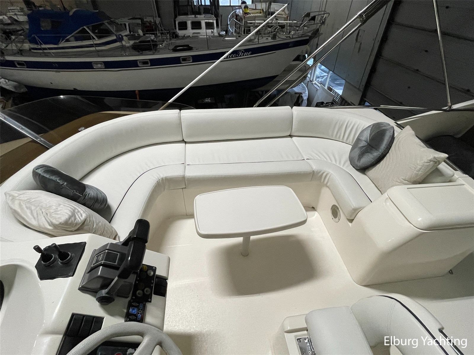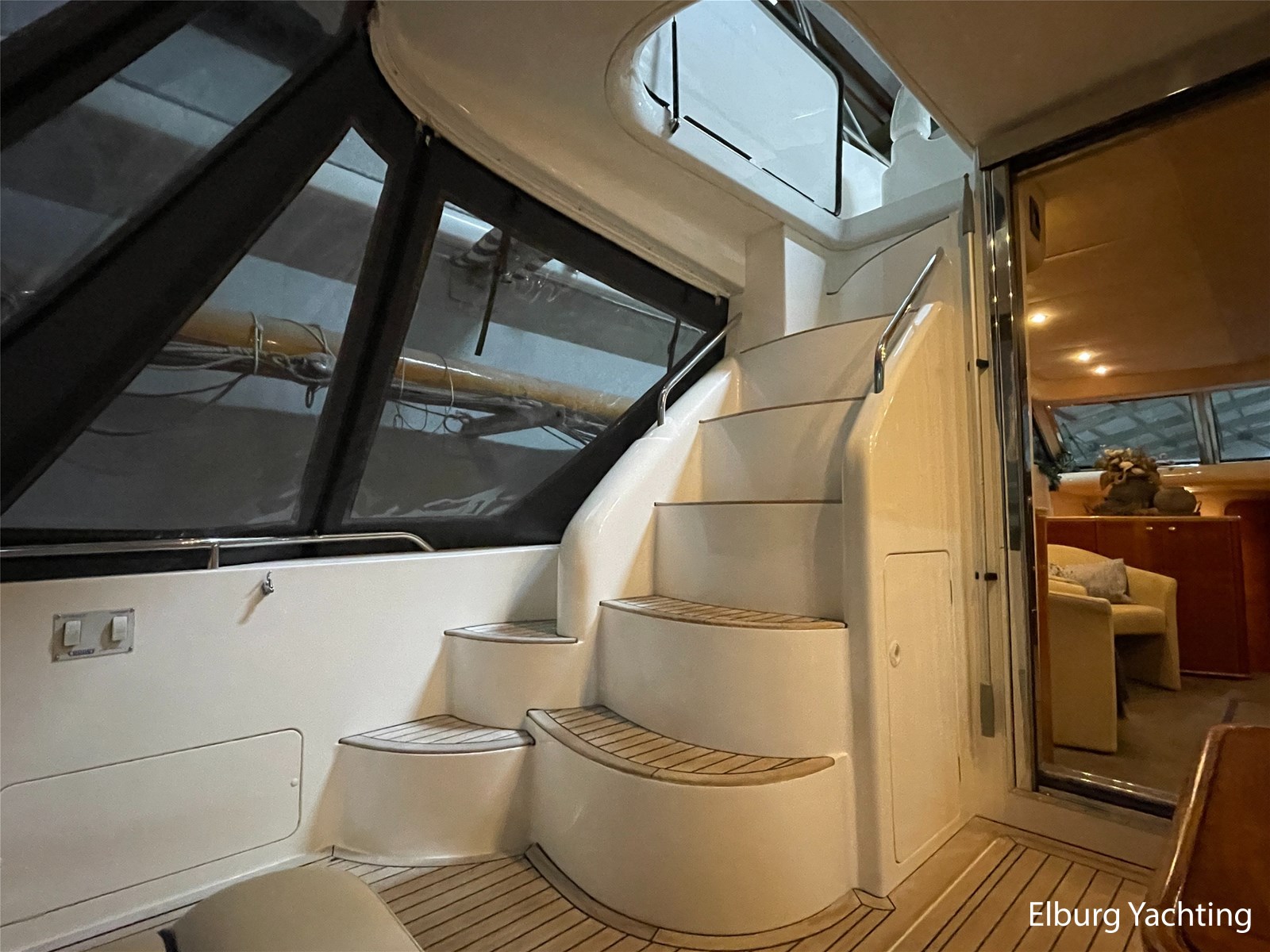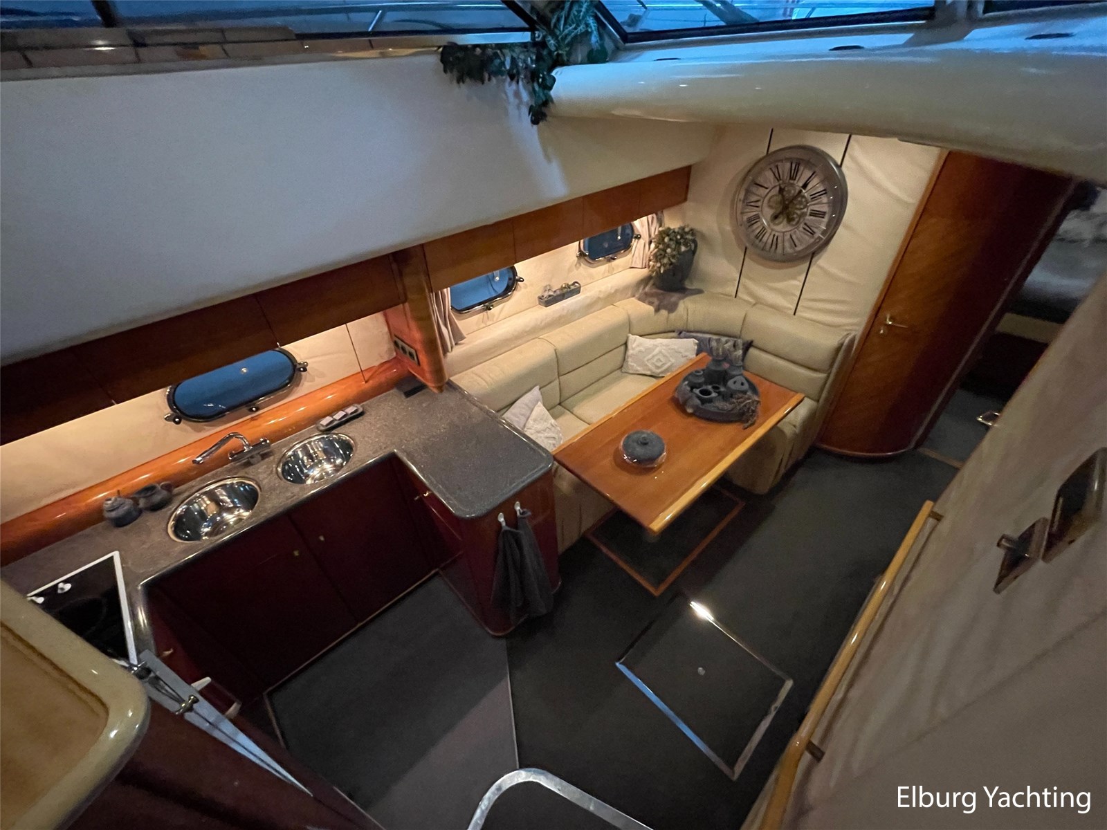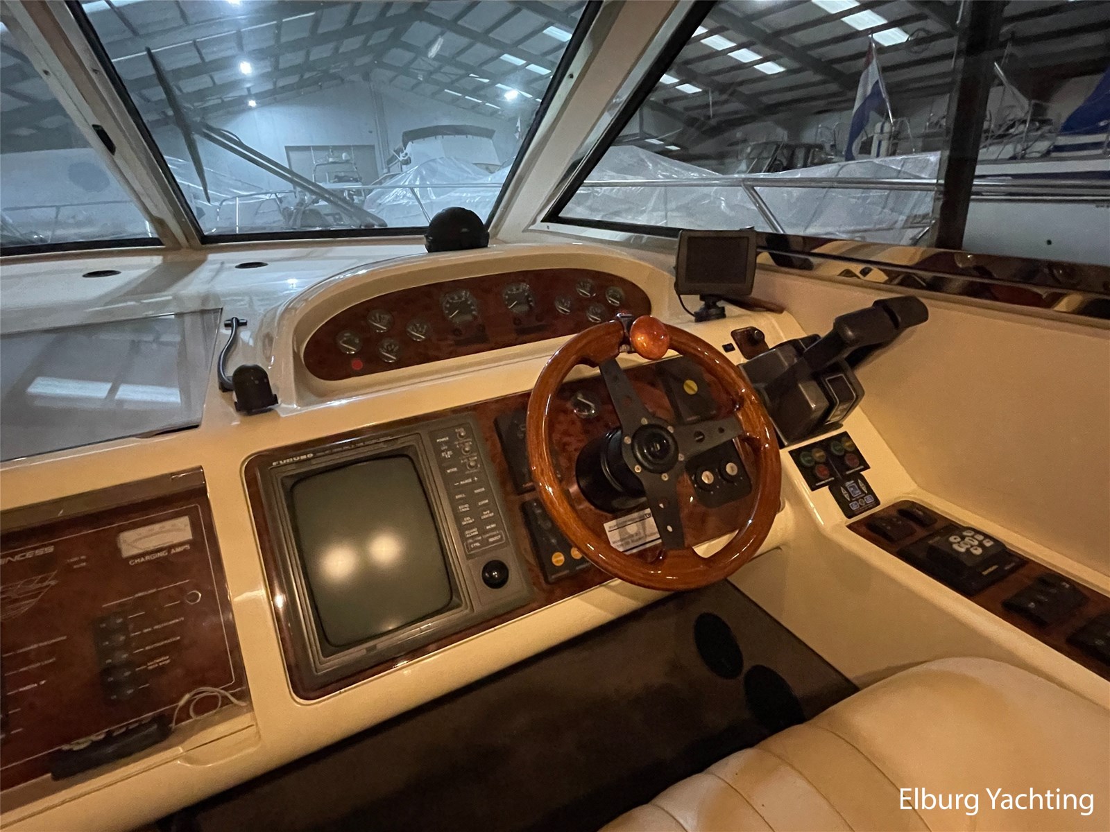 Prachtige Princess 480 Flybridge welke voorzien is van een zeer open en lichte salon / dinette indeling, twee comfortabele hutten en een ruime bering in het achterschip. Beide hutten hebben een 2-persoons bed met allebei toegang tot een eigen douche/toilet ruimte. Deze Princess 480 is uitgevoerd met: Vaste zitbank in open kuip met bijbehorende buitenkussens, de open kuip en salon gelijkvloers beloopbaar, r.v.s. schuifdeur naar salon, "luie" vaste trap naar flybridge, zonnebed op voordek, 2-persoons vaarbank op flybridge, trim tabs, volledige afsluitbare tent rondom kuip met uitristbare delen, r.v.s. buitenreling rondom, 2 x schuifraam in salon, biminitop op flybridge met afdekhoes 2024, buitendouche, ijsblokjesmachine, deur in spiegel naar zwemplatform, toegang machinekamer vanuit de open kuip en via salonvloer, zonneschermen rondom salonramen 2023, gordijnen in de salon vernieuwd in 2023. De verstuivers van de motoren zijn in 2024 gereviseerd, nieuwe antifouling + anode's 2024, nieuwe wasmachine 2024, nieuwe Eberspächer kachel 2024, nieuwe achtertent 2024, nieuwe biminihoes 2024 en zijn in 2023 beide dieseltanks gereinigd.
