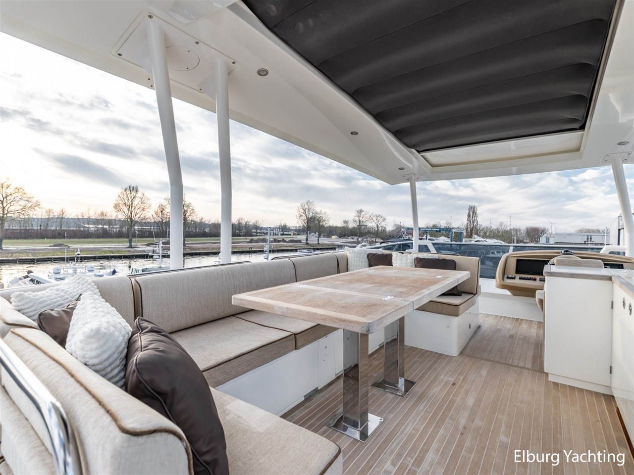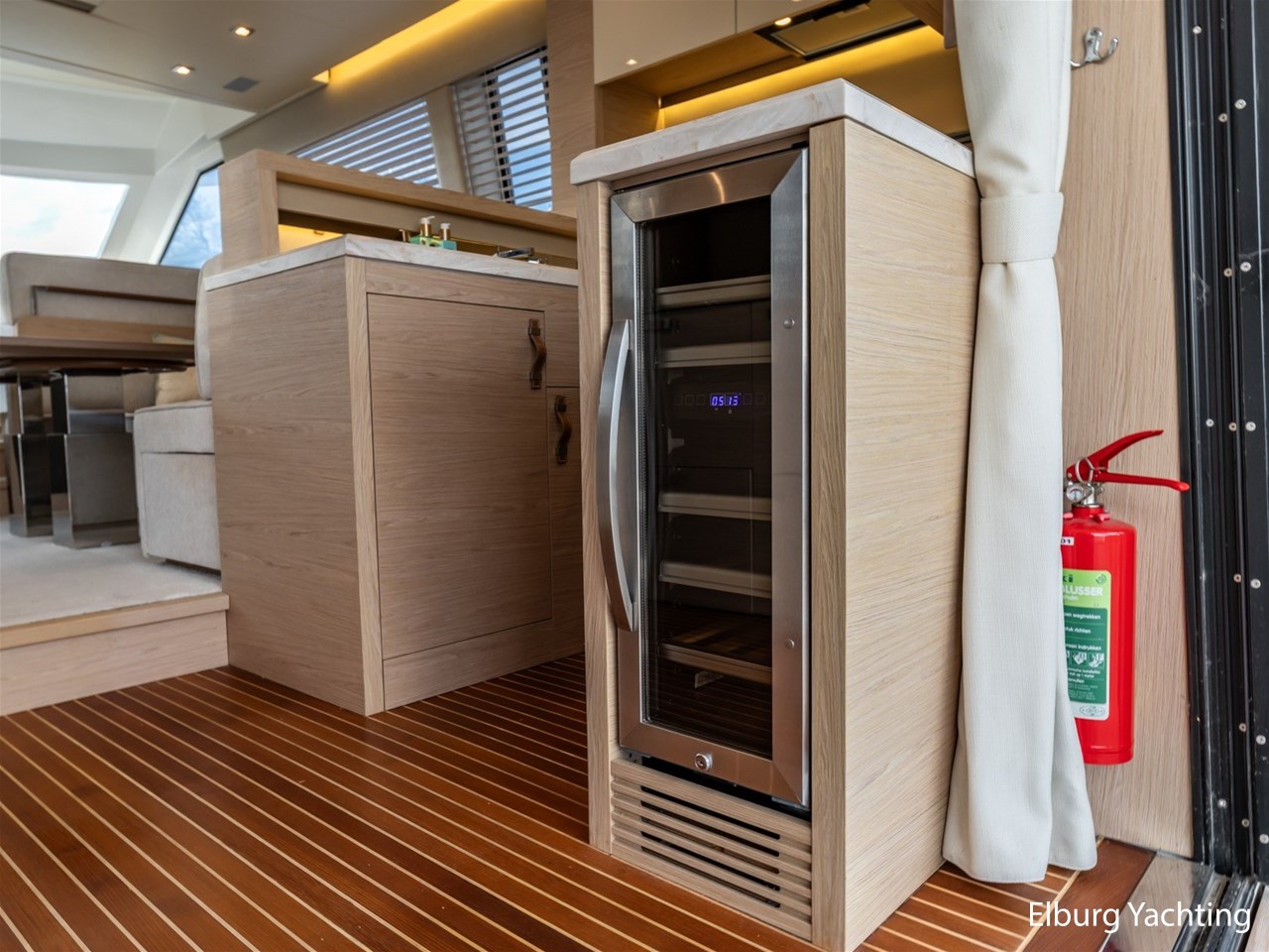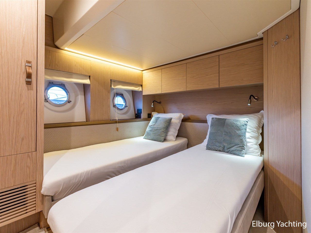 Deze fraaie Beneteau Monte Carlo 6 is een elegant, luxe, comfortabel en vooral sportief jacht en gekozen tot boot van het jaar in de categorie 'Flybridge tot 60ft' bij de 'Motor Boat Awards'. Het jacht is gebouwd in 2018 en is geleverd voor Boat Düsseldorf 2019. Het jacht wordt aangeboden door haar eerste Nederlandse eigenaar sinds haar aankoop in 2021 en is bij ons in Elburg te bezichtigen. In het ontwerp van deze Beneteau Monte Carlo 6 is goed nagedacht over de leefruimte. Het jacht is uitgerust met 3 volwaardige hutten met elk een natte cel, ook beschikt dit jacht over een volwaardige 'Crew-cabin' met eigen natte cel. Het moderne lichte interieur in combinatie met de beige bekleding geeft een ruimtelijk gevoel aan boord. Het jacht wordt voortgestuwd door 2 x 600 pk sterke Cummins Dieselmotoren in combinatie met het Cummins Zeus pod aandrijvingssysteem (middels joystickbediening) met drie stuurstanden door het jacht (1 x stuurstand in de salon + 1 x stuurstand op de Flybridge + 1 x stuurstand in de kuip). Het jacht is voorzien van een royale Flybridge met een T-top welke voorzien is van een schuifdak. Verder wordt dit jacht geleverd met onder andere: geïntegreerde hydraulische gangway, geüpgraded 17,5 KVA generator, onderwaterverlichting, koelkast op de Flybridge, grill op de Flybridge, wijnkoeler, wasmachine/droger, watergekoelde airconditioning 66KBTU door het jacht + watergekoelde airconditioning in de Crew-cabin 4000BTU en is het onderwaterschip in 2025 opnieuw opgebouwd. Voor vragen en/of het maken van een afspraak bent u 7 dagen per week van harte welkom bij Elburg Yachting.