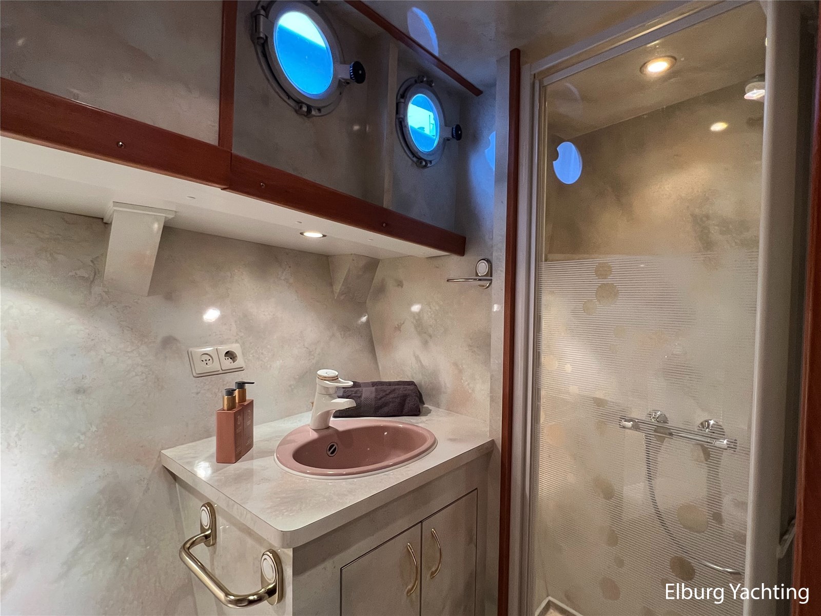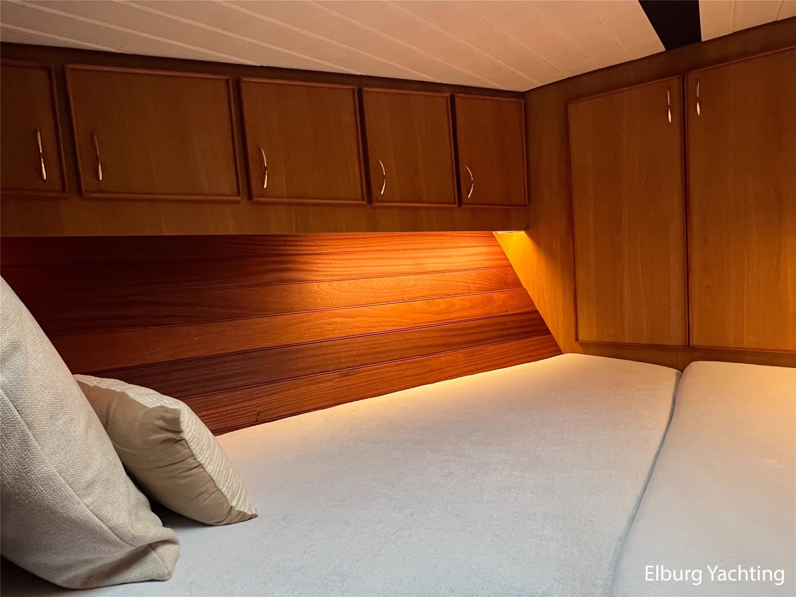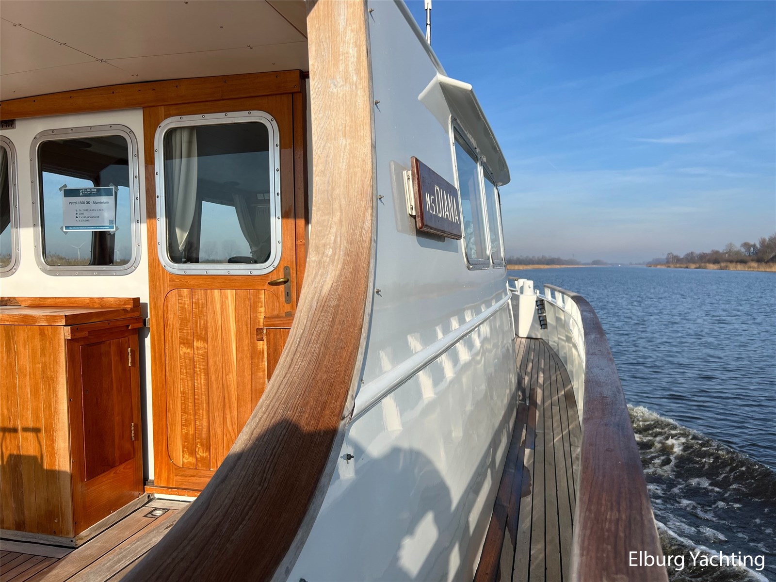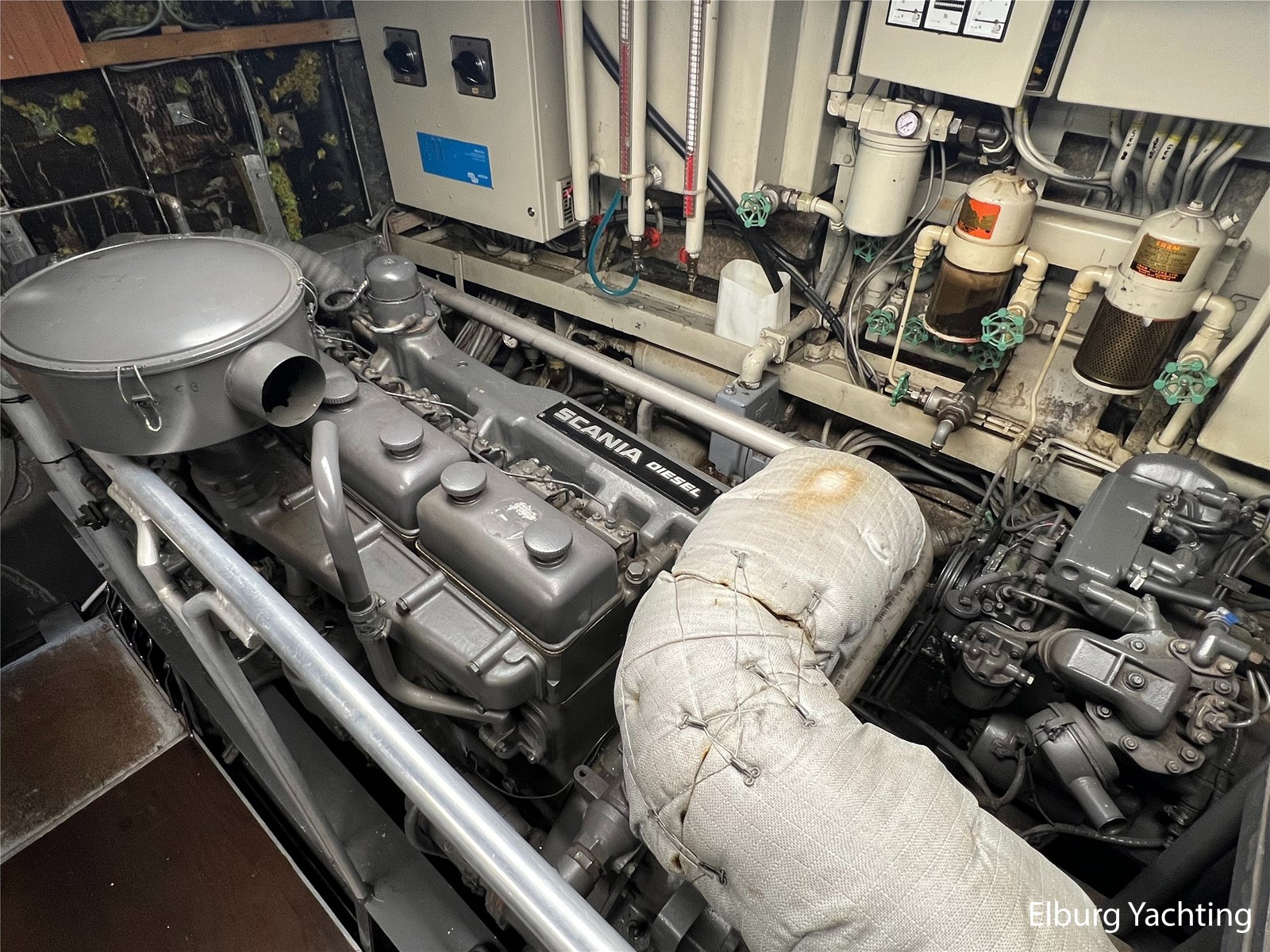 Origineel gebouwd als multi-purpose vessel (MPV) door de Katwijkse Scheepswerf PeGebo. Dit robuuste motorjacht heeft de kenmerken van een werkboot, maar is afgebouwd als luxe pleziervaartuig. De romp en opbouw zijn volledig vervaardigd van aluminium waardoor het schip zich economisch door het water verplaatst. Met de twee krachtige 140pk Scania dieselmotoren en de hydraulische boegschroef, laat het schip zich makkelijk manoeuvreren. De kuip, het gangboord en de salon/stuurhuis zijn op één niveau voor een prettige loop in en rondom het schip. Benedendeks bevindt zich de kombuis, natte cel en voorhut met een 2 persoons V-bed. De stahoogte in de salon is ca. 190cm en de kombuis is ca. 185cm. De toegang tot een 'echte' machinekamer is binnendoor via een waterdichte deur. Via de machinekamer, met stahoogte, bereik je in het achterschip meer opslagruimte en toegang tot de techniek. In de afgelopen twee jaren is er veel in het schip geïnvesteerd. Hier volgt een opsomming van de uitgevoerde werkzaamheden: Victron Quattro omvormer/acculader vernieuwd, Victron scheidingstransformator geplaatst, 3 x zonnepanelen (175Wp) gemonteerd met Victron omvormer, Victron Cerbo display, 8 x Varta accu's 12V 180Ah geplaatst, elektrisch toilet vernieuwd, matrassen in voorhut vernieuwd, Kabola HR400 combi ketel geplaatst, koelkast in salon. Deze Patrol 1500 OK is verder voorzien van: slingerruit, klapbare voorruit, bakskisten in open kuip, kuipbanken met afneembare kussens, houten buitenreling rondom, elektrisch kaapstaander op het achterdek, 2 x hydraulisch bedienbare kraan op achterdek, professioneel ingericht dashboard bij stuurstand, separate joystick t.b.v. roerbediening, afsluitbare ankerkluis in voorpiek, hydraulisch klapbare mast, doorvaarthoogte met staande mast ca. 8,50 m en met geklapte mast ca. 4,50 m. Antifouling vernieuwd in 2025.