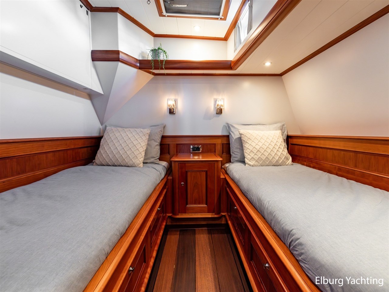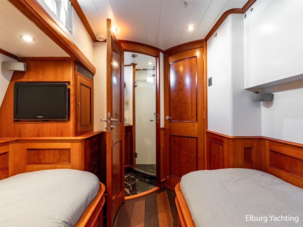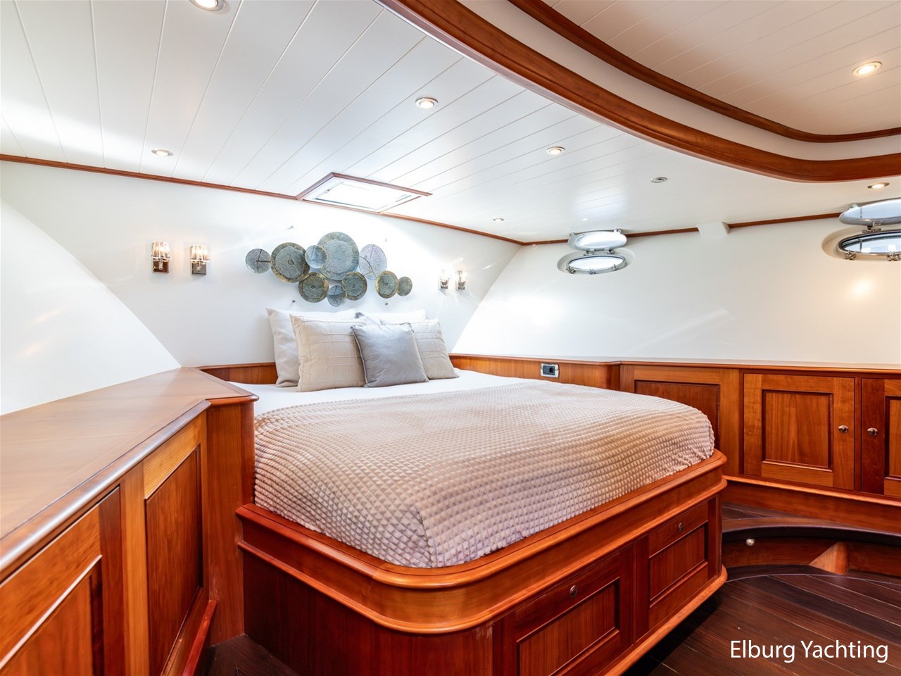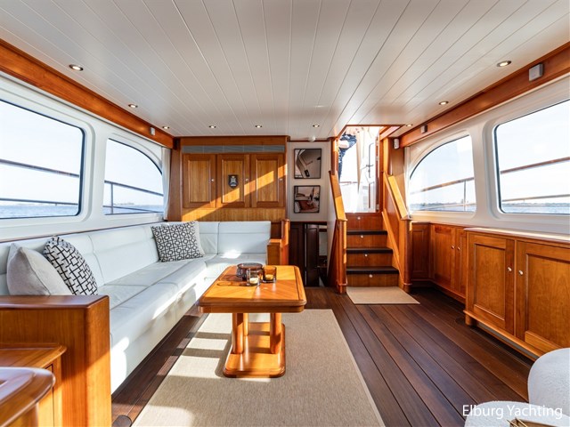 Het jacht beschikt over een ruime keuken en een zeer ruime U-vormige dinette tegenover de keuken. De eigenaarshut is ontworpen met oog voor detail en comfort. Het is een ruime hut met ensuite een badkamer, en biedt een royale inloopruimte incl. een bureau met veel kastruimte voordat de slaapruimte wordt betreedt Het interieur heeft prachtig gebogen deuropeningen en deuren, die de traditionele en klassieke charme benadrukken, terwijl de moderne accenten in het jacht haar veelzijdigheid onderstrepen.