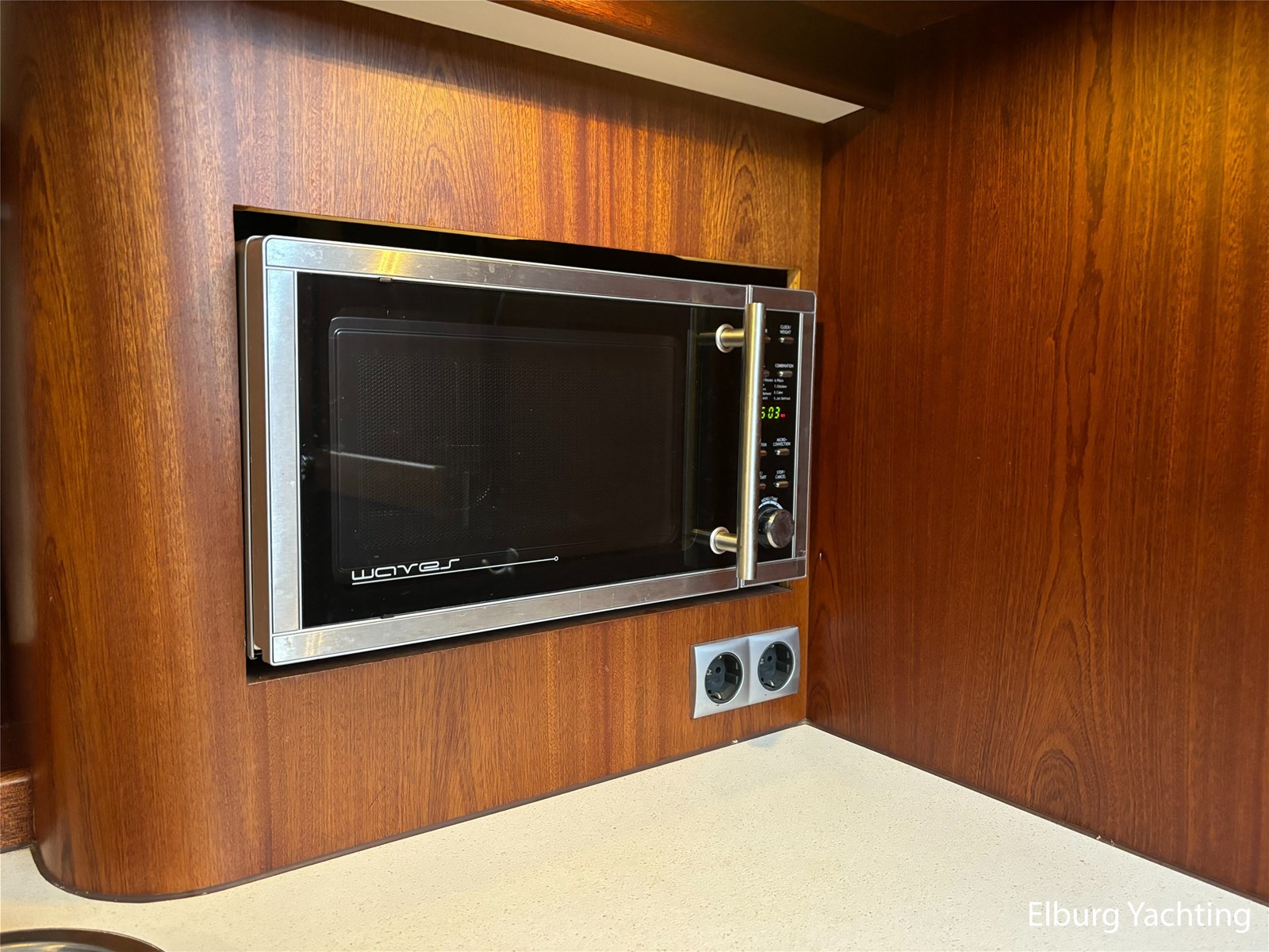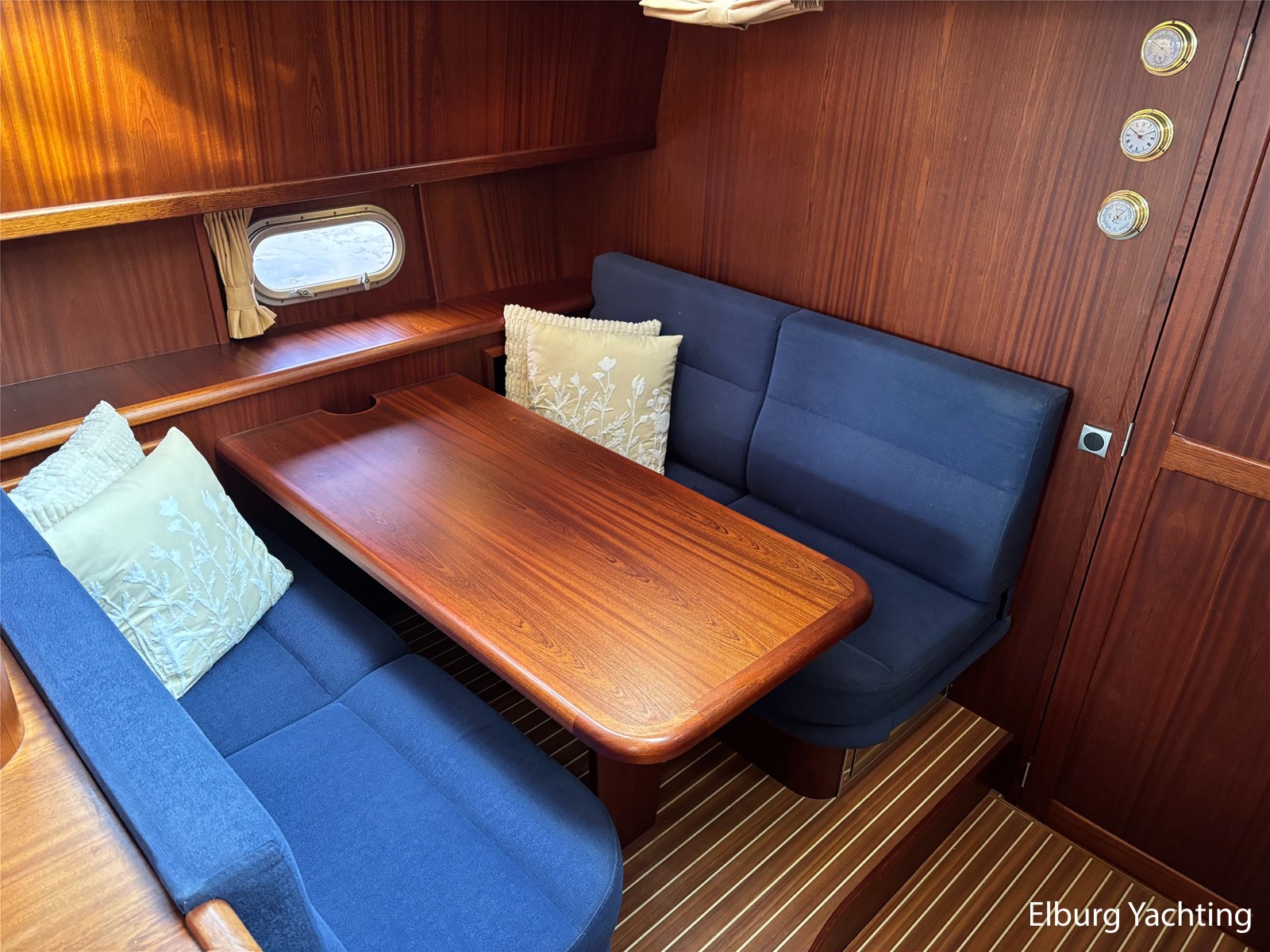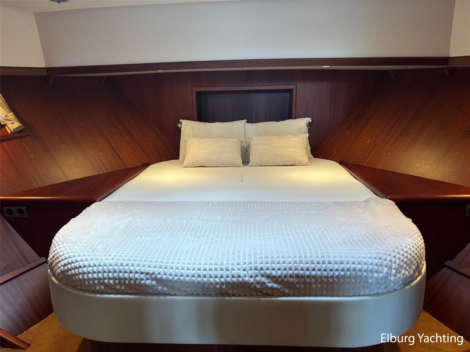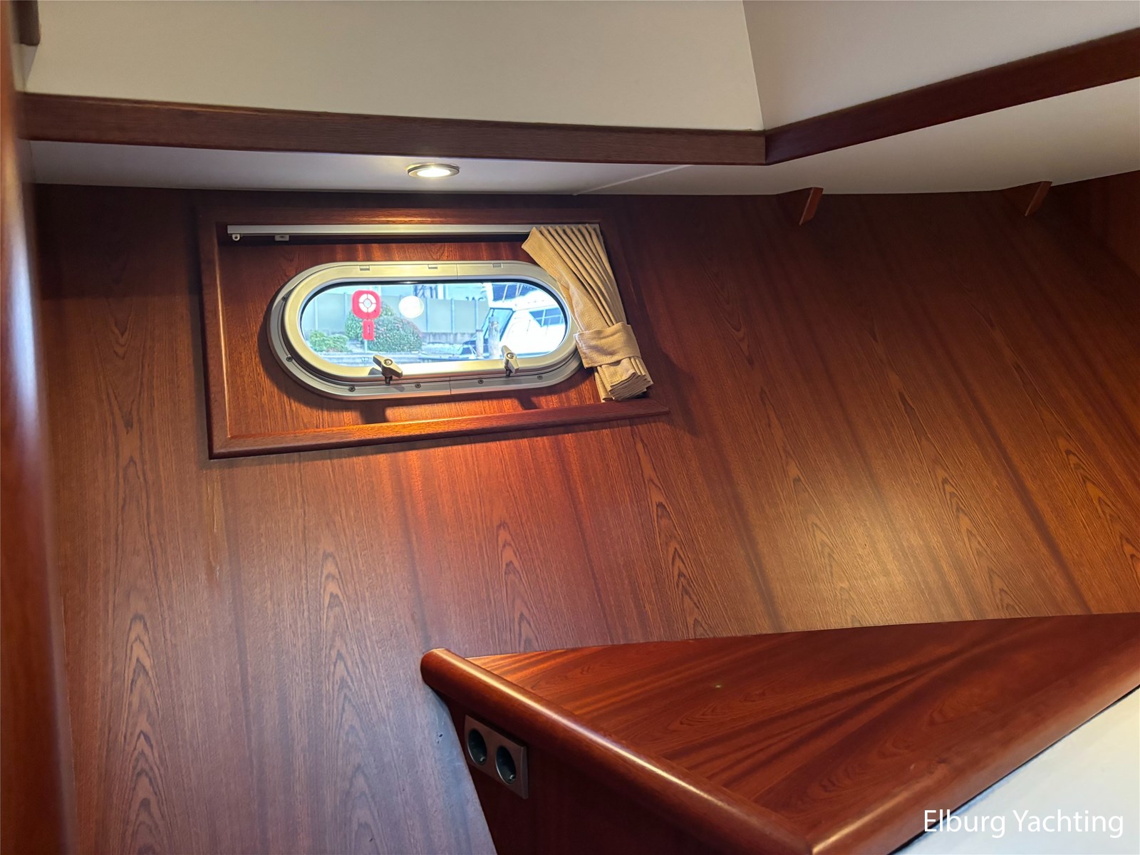Bij de stuurstand heeft u goed overzicht door de raampartij, Het jacht is voorzien van een Sidepower afstandsbediening waardoor het jacht goed te manoeuvreren is. Vanaf de salon loopt u door middel van een trap naar beneden waar u aan de bakboord kant een ruime dinette vindt, en daar tegenover de kombuis. Als u rechtdoor loopt vindt u de eigenaars hut die voorzien is van een tweepersoons frans bed. Aangrenzend vindt u een douche in eigen cabine en een elektrisch toilet in eigen cabine. Vanuit de kombuis vindt u de gasten hut die is voorzien van een tweepersoons bed.
