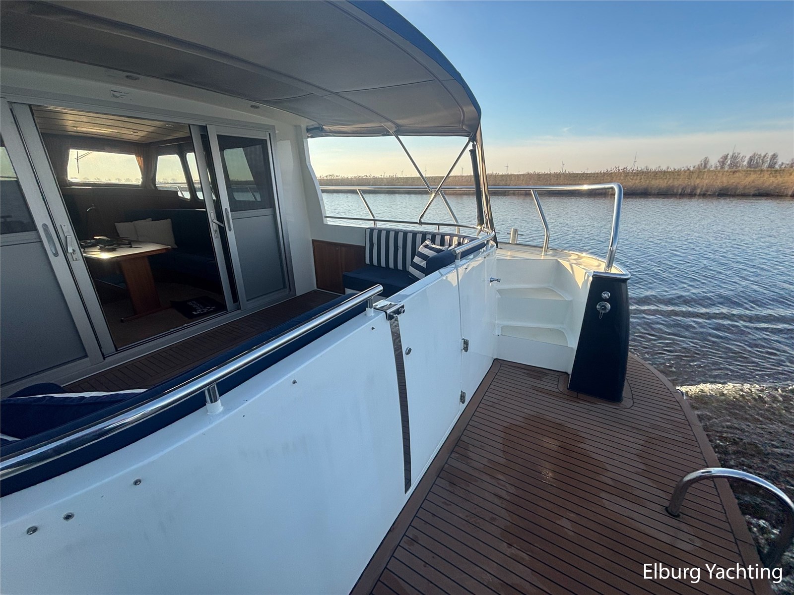 - Geïntegreerd met kunst teak + 2 x half ronde trap vanaf dek + R.V.S. zwemtrap