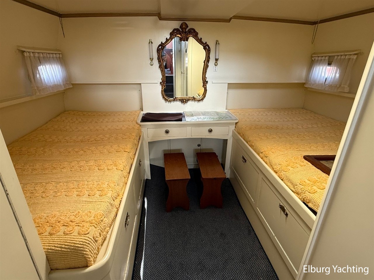 Prachtige klassieke Super van Craft 14.70 Cabrio aangeboden door haar Nederlandse eigenaar. Het jacht is gebouwd in 1968 door Klaassen te Voorschoten en in de periode rondom 2004 professioneel onder handen genomen en daarna nauwelijks nog heeft gevaren en slechts droog heeft binnen gestaan. Er zijn in 2004 2 nieuwe 120 pk sterke Volvo Penta dieselmotoren ingekomen. Het betreft een prachtige klassieke Super van Craft die klaar is voor een nieuwe eigenaar. Het jacht beschikt over een fijne rondspant romp met voorbereiding voor stabilisatoren en is rondom voorzien van Teak (gangboorden / voordek / voorroef / achterdek / zwemplateau). Onder verschillende weersomstandigheden is het jacht te varen middels de 2 stuurstanden (binnen en buiten). Het jacht beschikt verder over een ruime salon, fijne kombuis met naastgelegen dinette, voorhut met drie bedden en nabijgelegen natte cel met toilet en wastafel. De achterhut met twee bedden en nabijgelegen natte cel met toilet, wastafel en douche. Inspectierapport uit 2025 van het casco op verzoek beschikbaar. Voor vragen en/of het maken van een afspraak bent u 7 dagen per week van harte welkom bij Elburg Yachting.