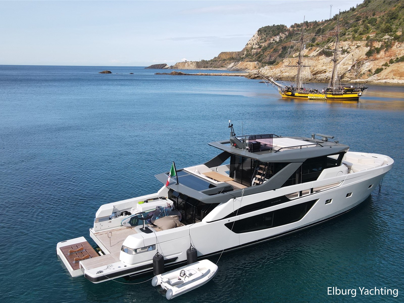 Het jacht is o.a. voorzien van: elektrisch systeem, cablemaster CM 7 kabelhaspel , led spot met afstandsbediening, DPS voor Volvo Penta IPS, 2 onderwaterlampen, rechter pantograafdeur, boegbar-unit onder voorruit, verbeterd ventilatiesysteem voor