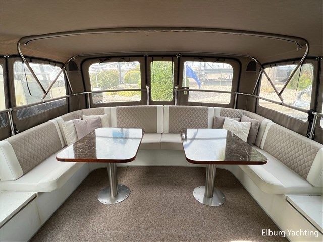 Deze Barkas 13.50 heeft een grondige refit ondergaan in 2022-2023 waarbij er onder andere de volledige interieur betimmering is vernieuwd, groot vrijstaand bed met het formaat van 180 x 200cm in de voorhut, nieuwe bekleding voor U-vormige dinette en buiten zit in kuip, badkamer met WC in geheel polyester afgedicht, beneden verdieping met 2 x 1 persoons bedden á 90 x 200cm, nieuwe geplaatste combi magnetron, 75 liter boiler, watertank, koelkast, 5 nieuwe scheepsramen, alle elektra vernieuwd, volledig LED verlichting, 10 stopcontacten. In 2024 is de volledige romp opnieuw geschilderd in donkerblauwe kleur met de kenmerkende rode Barkas bies. Ook de antifouling en anodes zijn vernieuwd in 2024. De 120 pk VW diesel is in 2014 geplaatst ter vervanging van een 62 pk Mitsubishi. Verder is het schip uitgevoerd met: Volledig afsluitbare tent rondom open kuip met uitritsbare delen, bakskisten, toegang hoofdmotor via open kuip, r.v.s. reling rondom, geïntegreerd zwemplateau met flexiteak (2022), 2 x gelakte teakhouten openslaande deuren naar salon, groot vlak salondak voor het eventueel plaatsen van zonnepanelen, doorvaarthoogte ca. 2,70m. Onderhoud aan de VW hoofdmotor uitgevoerd in 2024 inclusief het vervangen van de distributieriem.