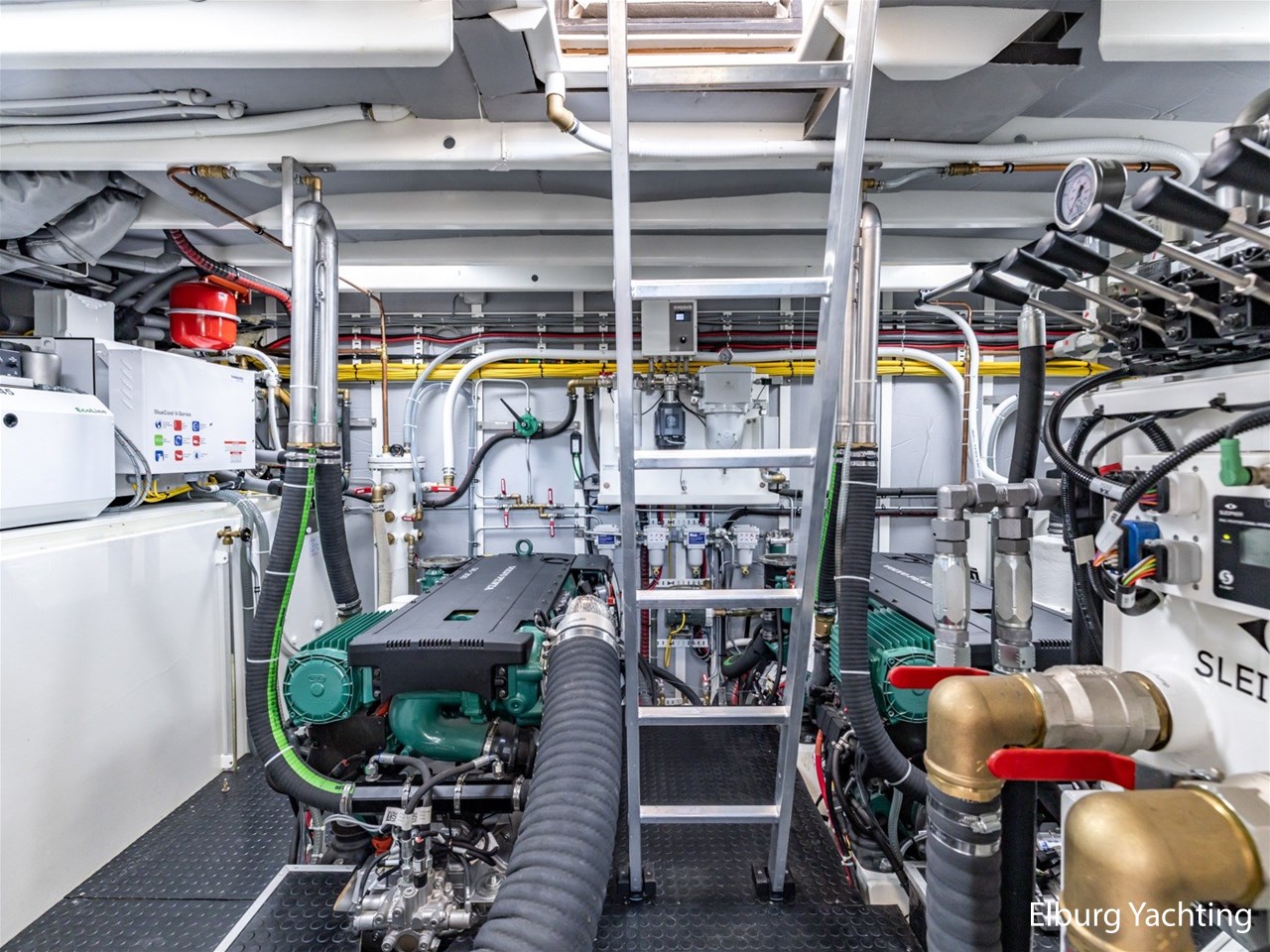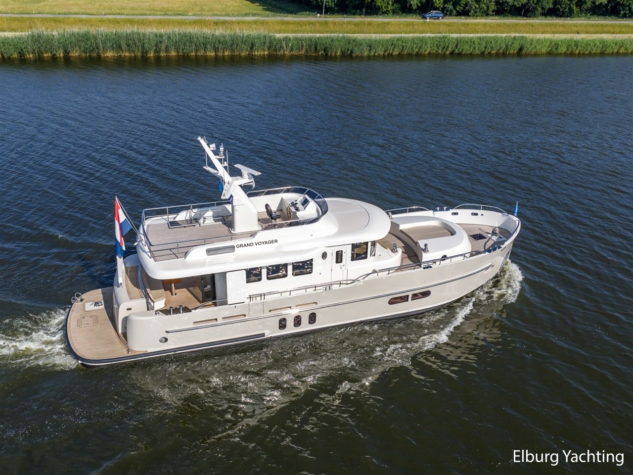 Deze prachtige nieuwe De Alm Grand Voyager 65 is gebouwd door Jachtwerf De Alm uit Waalwijk en ontworpen door Werner Yacht Design in combinatie met Azza Yachting. Dit jacht is zeer exclusief gebouwd in Grade A-steel dat is afgewerkt met een zeer hoogwaardig VANDENENDEN 2023 Awl Grip superyacht verfsysteem. Het jacht is gebouwd met een multiknikspant romp in combinatie met hydraulische stabilisatoren, twee hydraulische spudpalen en hydraulische boeg- en hekschroef. Via de dubbele stuurstand (1 x in het stuurhuis + 1 x op de flybridge) is het jacht tevens via de Hydronautica afstandsbediening eenvoudig te besturen.