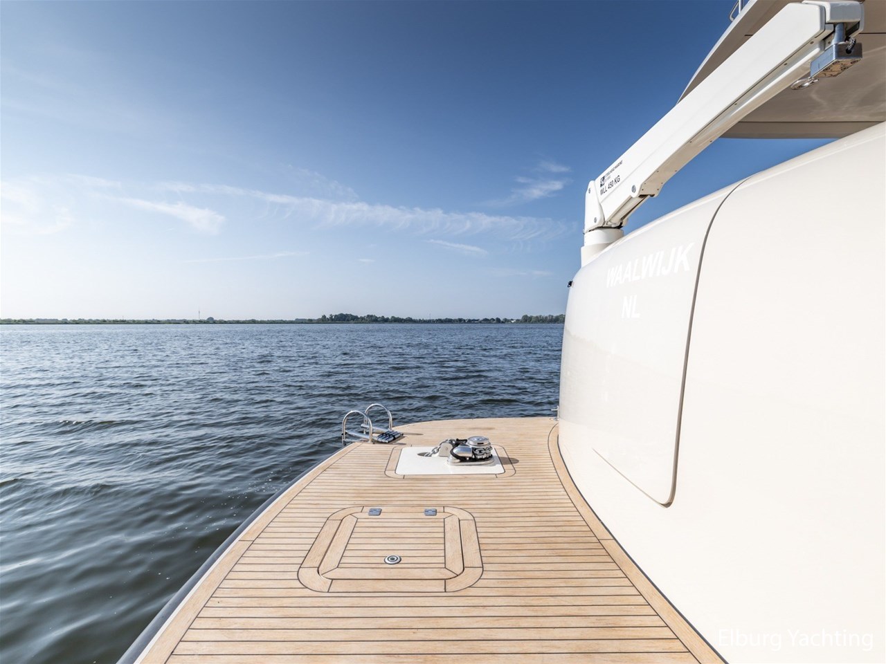 - Geïntegreerd zwemplateau voorzien van hoogwaardig kunst Teak + zwemtrap en hekanker