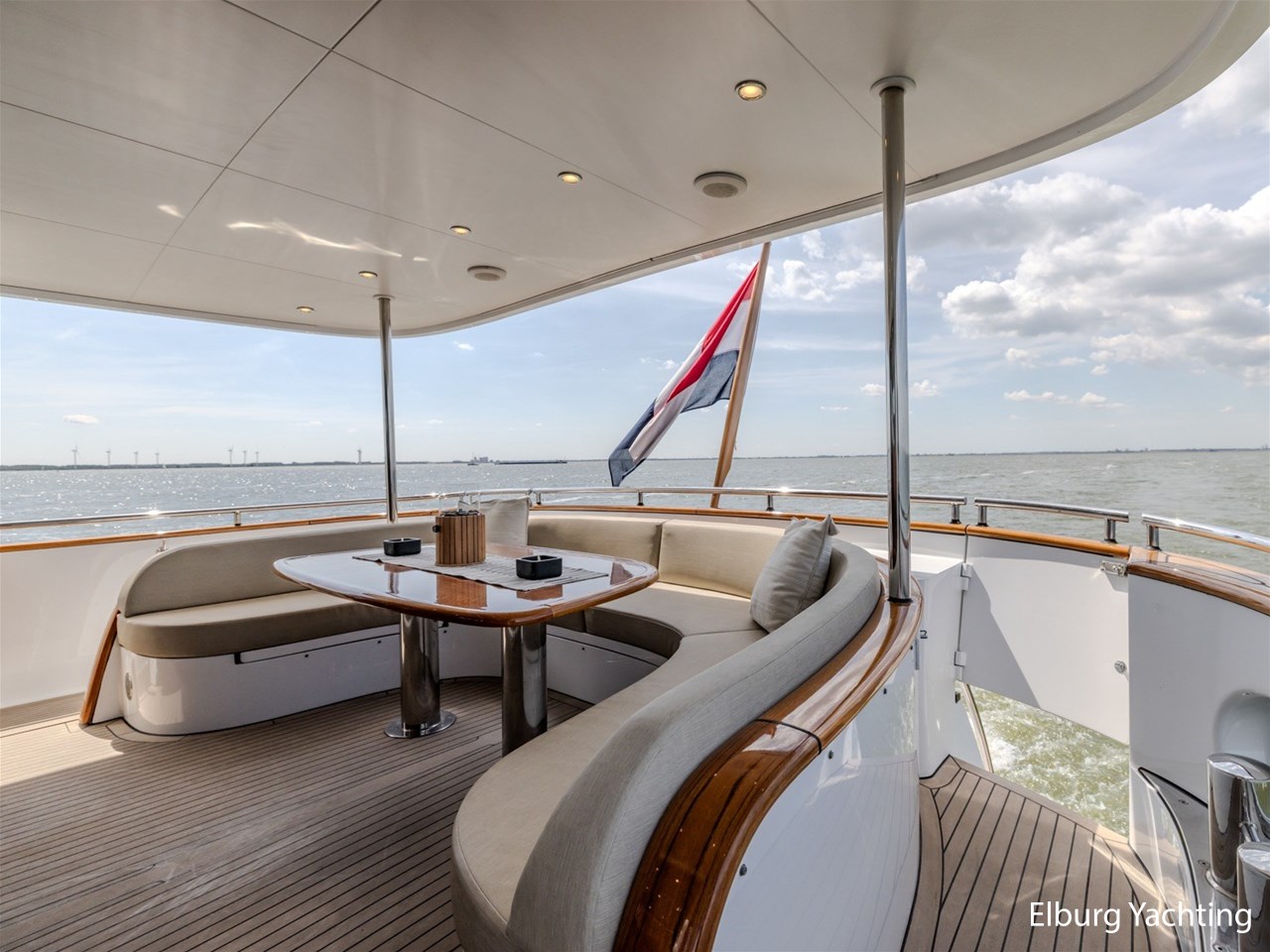 De Mulder 73 Wheelhouse - Alu Fast Going beschikt over o.a.: Groot overdekt en verlicht achterdek met ruime U-dinette, dinette op voorroef, hoogglans gelakte potdeksel, r.v.s dekbeslag, gangway, 2 x Carlisle & Finch searchlight, navigatie computer met Maxsea software, Furuno windsensor, tracphone KVH F55, satelliet tv KVH G6, Mastervolt main manager, Bose audio systeem, elektrisch bedienbare jaloezieën, houten vloeren in gehele boot, thermostaatregeling per vertrek, camerasysteem, wijnkoelkast, tender garage, kaapstanders, Miele vaatwasser, Miele wasmachine, Miele droger, Tecnicomar watermaker, 2025 laatste servicebeurt hoofdmotoren.