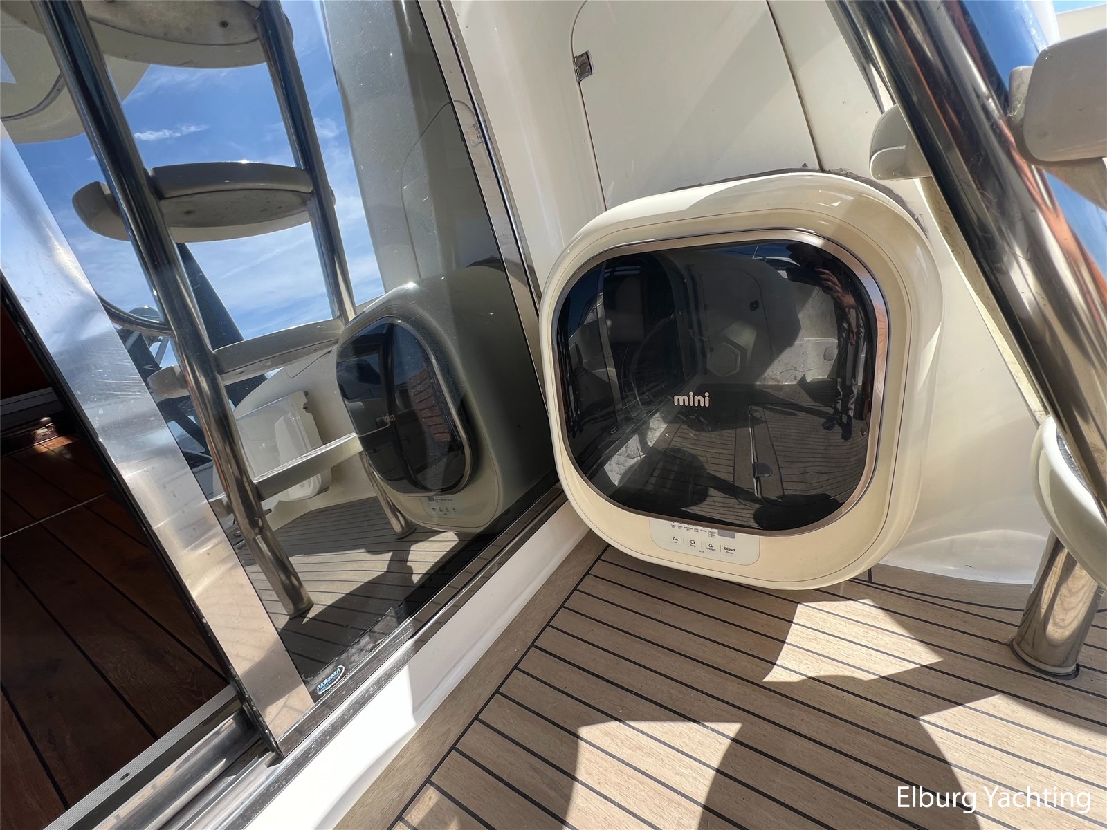- Geintegreerd met kunststof dek en inklapbare bijboot steunen