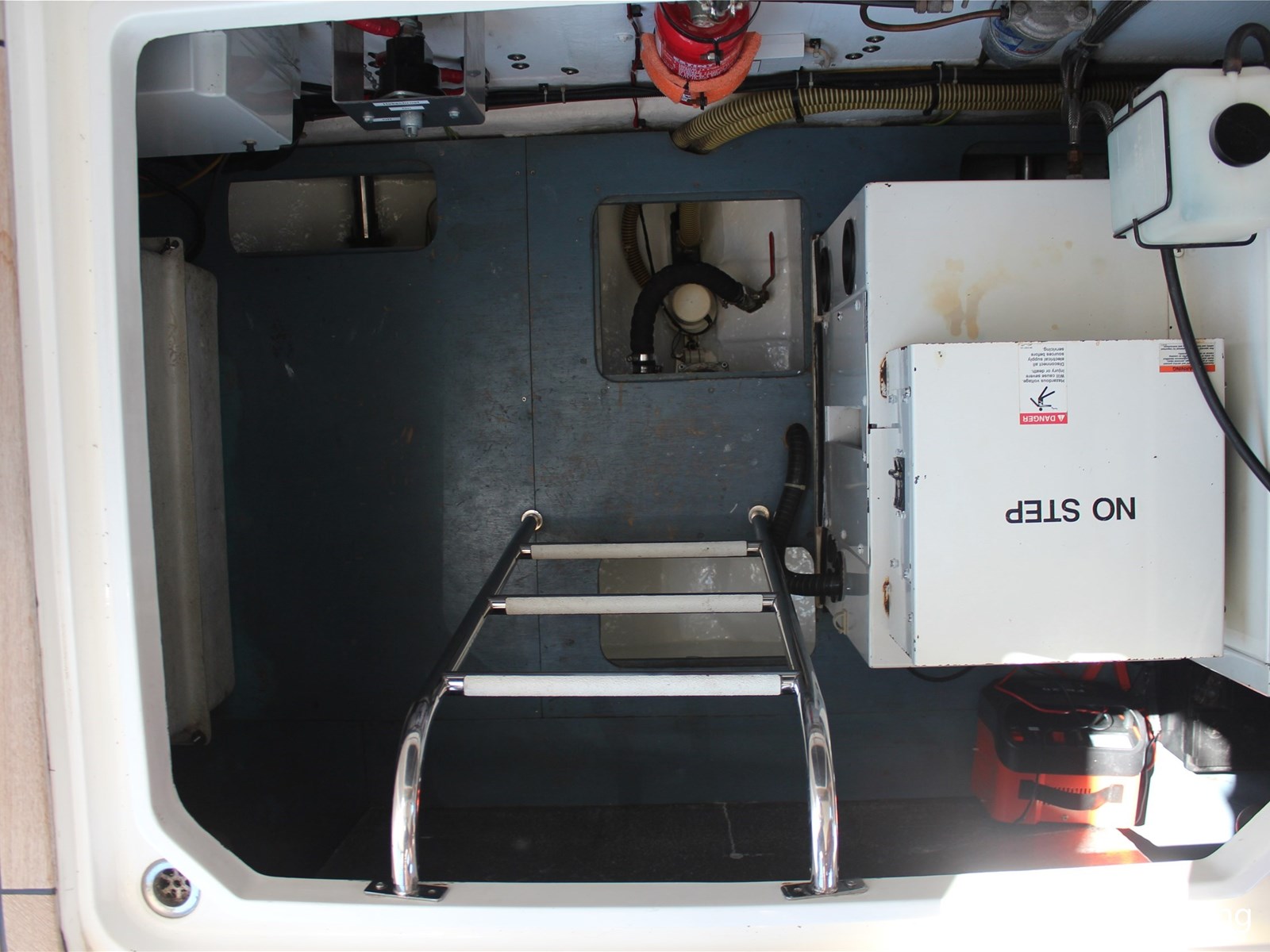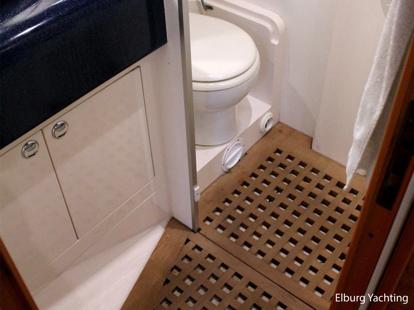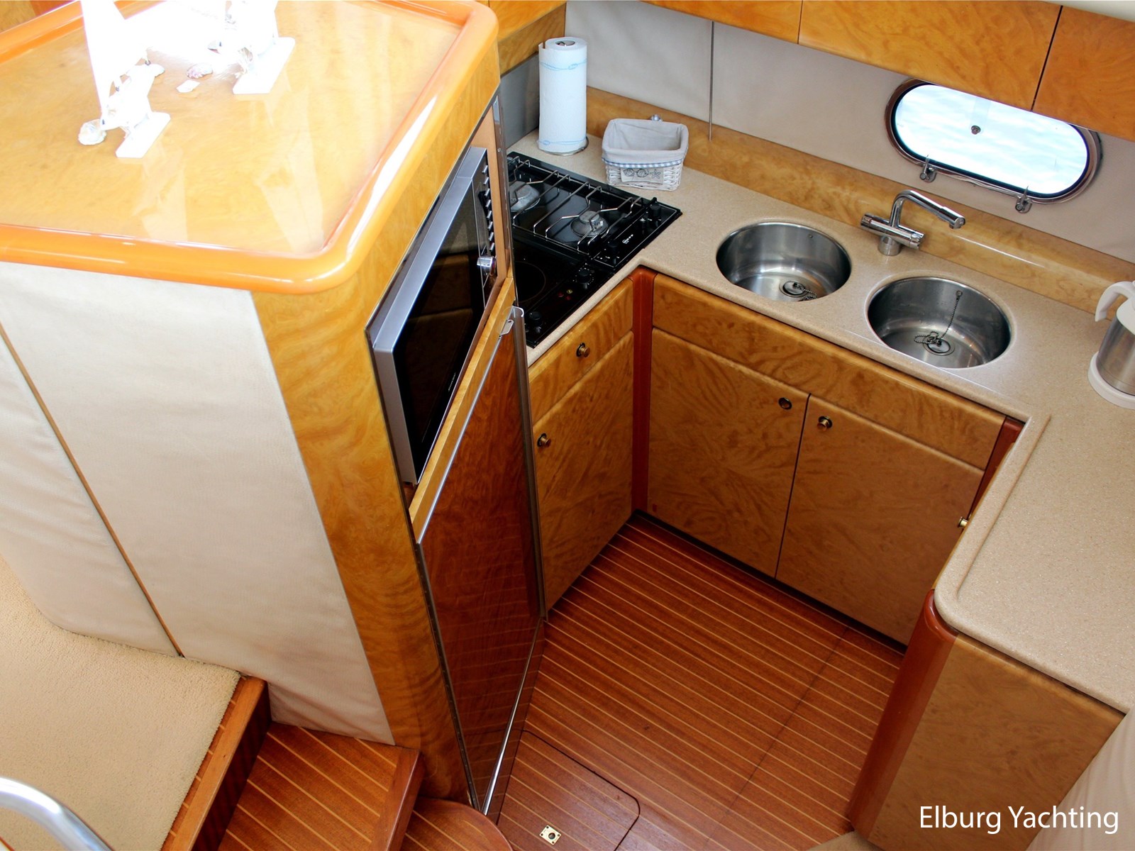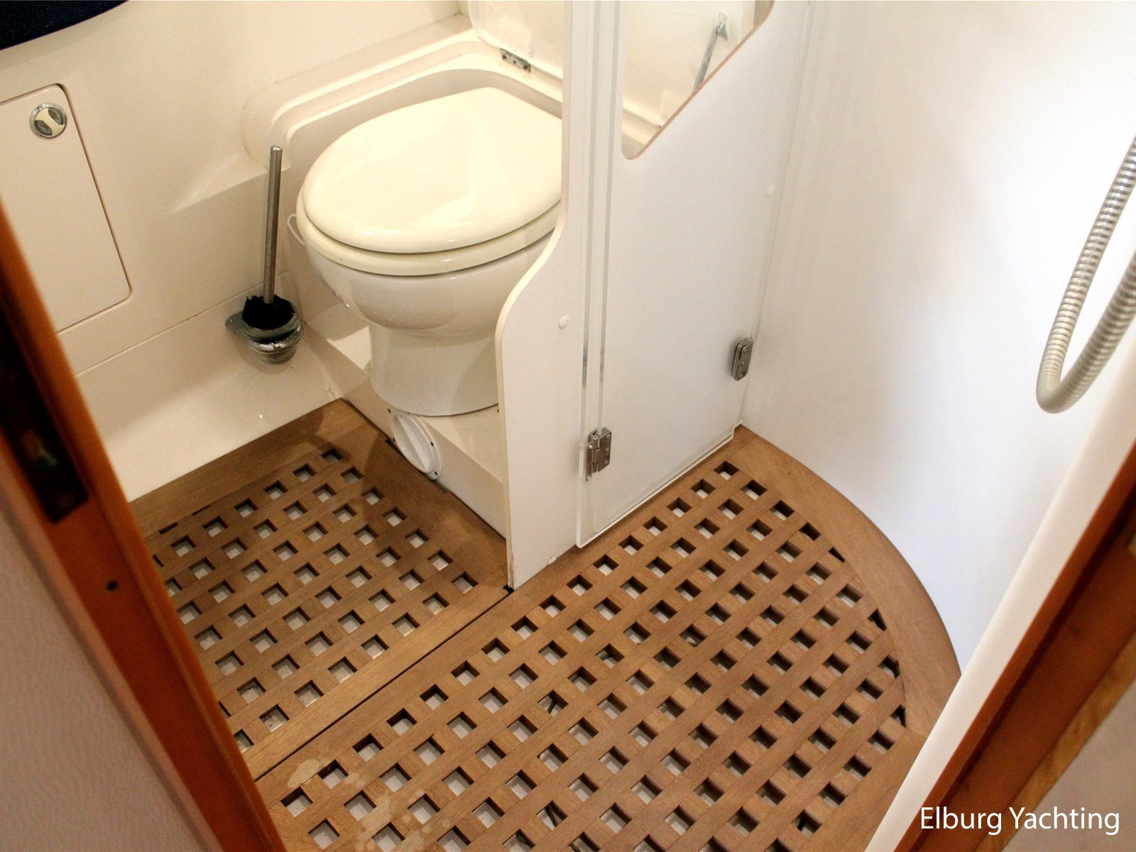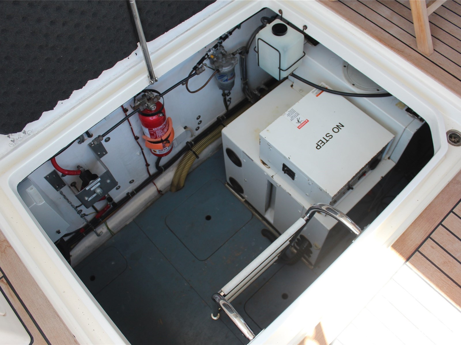 - Geïntegreerd met teak dek (vernieuwd in 2017) + r.v.s. zwemtrap