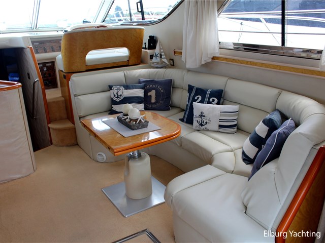 Deze Princess 480 Flybridge verkeert in zeer goede staat van onderhoud. Het schip biedt veel comfort en ruimte met 3 x volwaardige 2-persoons hutten. Het schip is o.a. uitgevoerd met: Vaste zitbank in open kuip met buitenkussens, open kuip en salon gelijkvloers, r.v.s. schuifdeur naar salon, "luie" vaste trap naar flybridge, ruime dinette op flybridge, zonnebed, vaarbank op flybridge, trim tabs, volledige afsluitbare tent rondom open kuip met afneembare verduisteringen, r.v.s. buitenreling rondom, 2 x schuifraam in salon, biminitop op flybridge, veel kastruimte, buitendouche, deur in spiegel naar zwemplatform, toegang machinekamer vanuit de open kuip, minimale doorvaarthoogte ca. 3,90 meter. Laatste complete motoronderhoud uitgevoerd in 2025, antifouling vernieuwd in 2024.