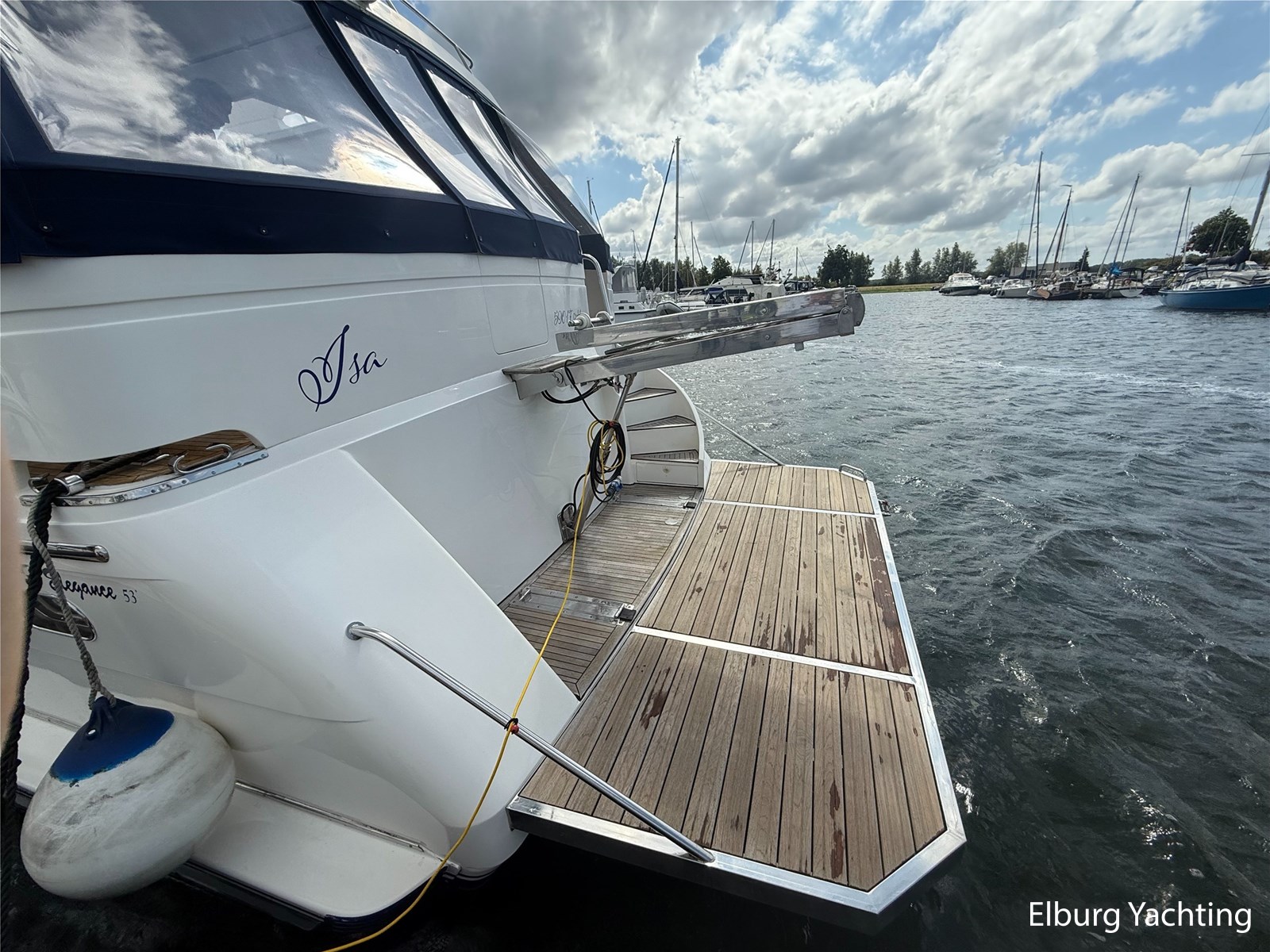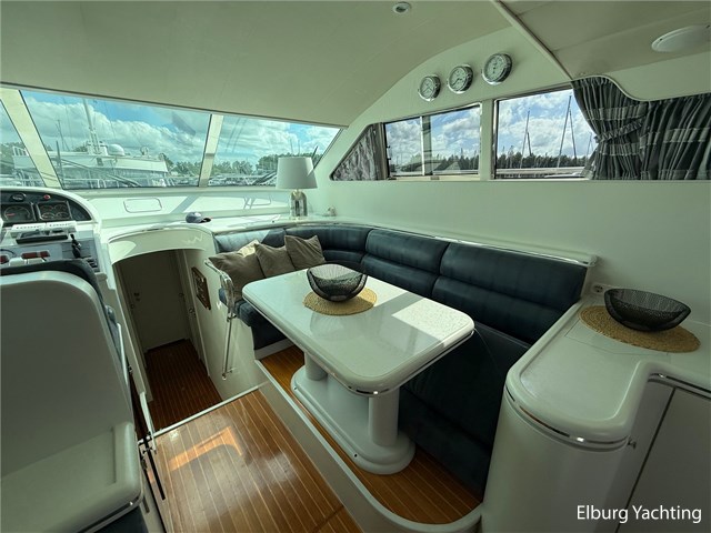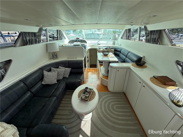 Deze Elegance 53 is een veelzijdig schip met veel ruimte zowel boven als benedendeks. Door haar layout met een achterdek en flybridge biedt het schip veel bruikbare buitenruimte. Verder is er voor de afwerking gebruik gemaakt van hoogwaardige materialen. Deze Elegance wordt verder geleverd met o.a: groot zwemplatform, r.v.s. gangway, luie trap naar zwemplatform, dubbele r.v.s. reling, overdekt achterdek, flybridge, eigenaarshut met aparte ingang achterin salon, schuifraam in salon, volledige tent rondom achterdek (2023), anti fouling (2025), romp gepoetst (2025), boegschroef vernieuwd 2020, bimini op flybridge, vaatwasser.