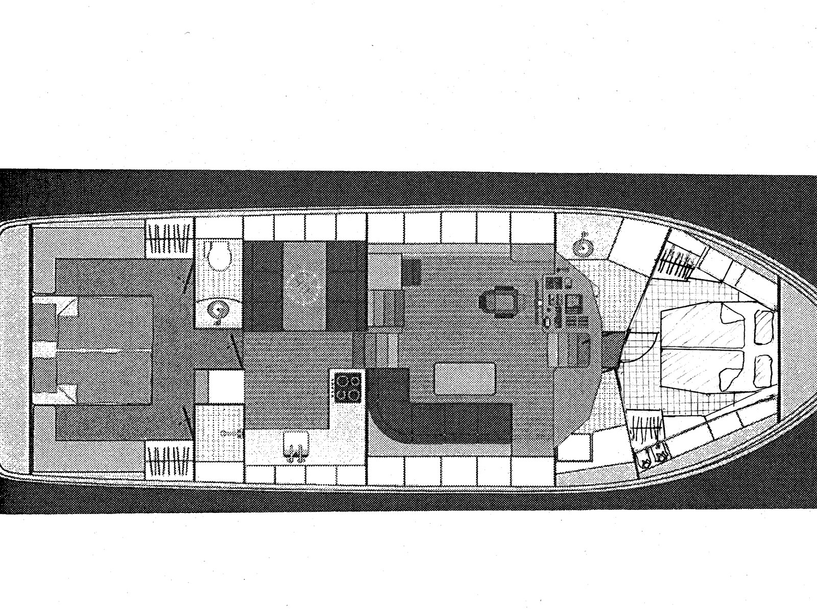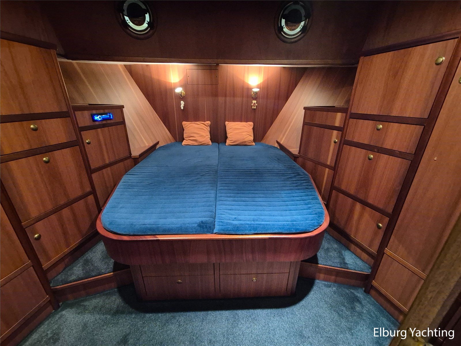 De tafel in de dinette kan zakken en met op maat gemaakte kussens omgebouwd worden naar een dubbel bed, af te schermen met een gordijn. Vrij uitzicht vanuit de dinette en kombuis naar buiten, geisoleerde vloeren, dubbele stootranden (en daardoor schuren er geen fenders tegen de scheepshuid) dubbel filtersysteem voor diesel en koelwater, koelwater aanzuig omschakelbaar.